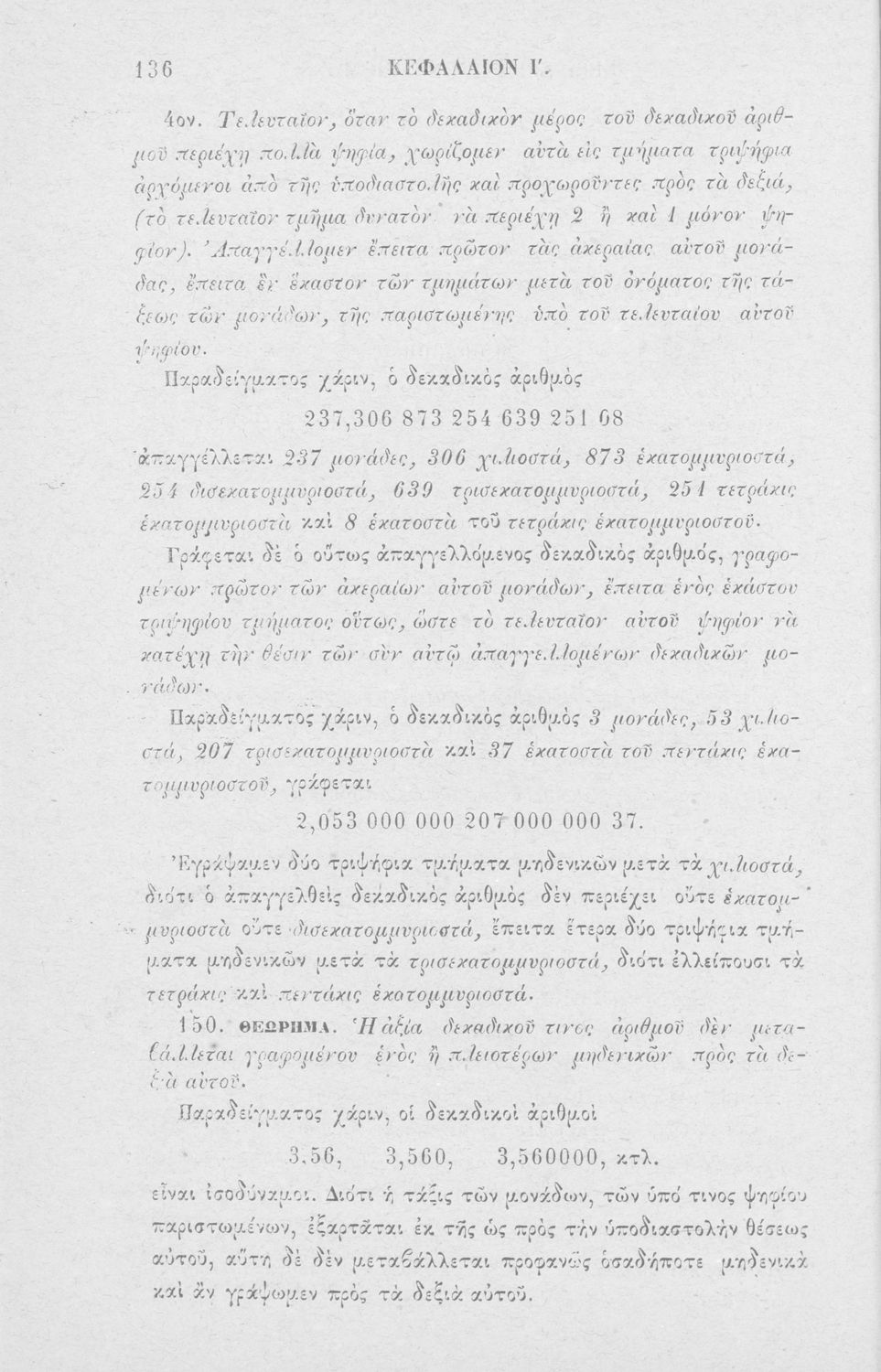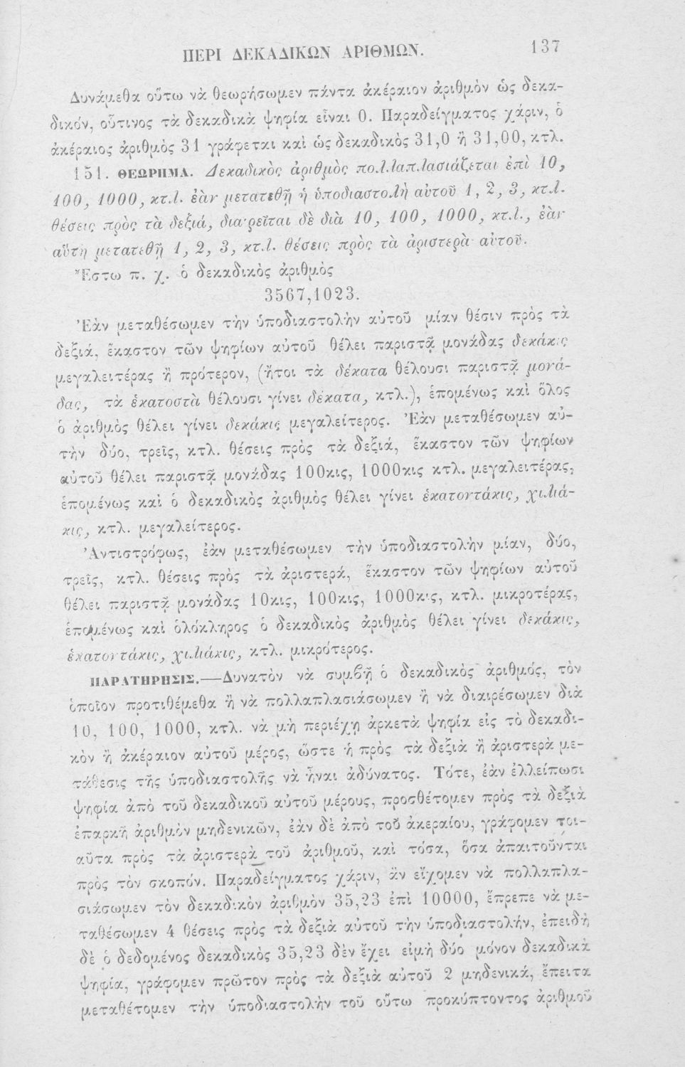 Σχολικό εγχειρίδιο Αριθμητικής χωρισμένο σε θεωρήματα και ασκήσεις.