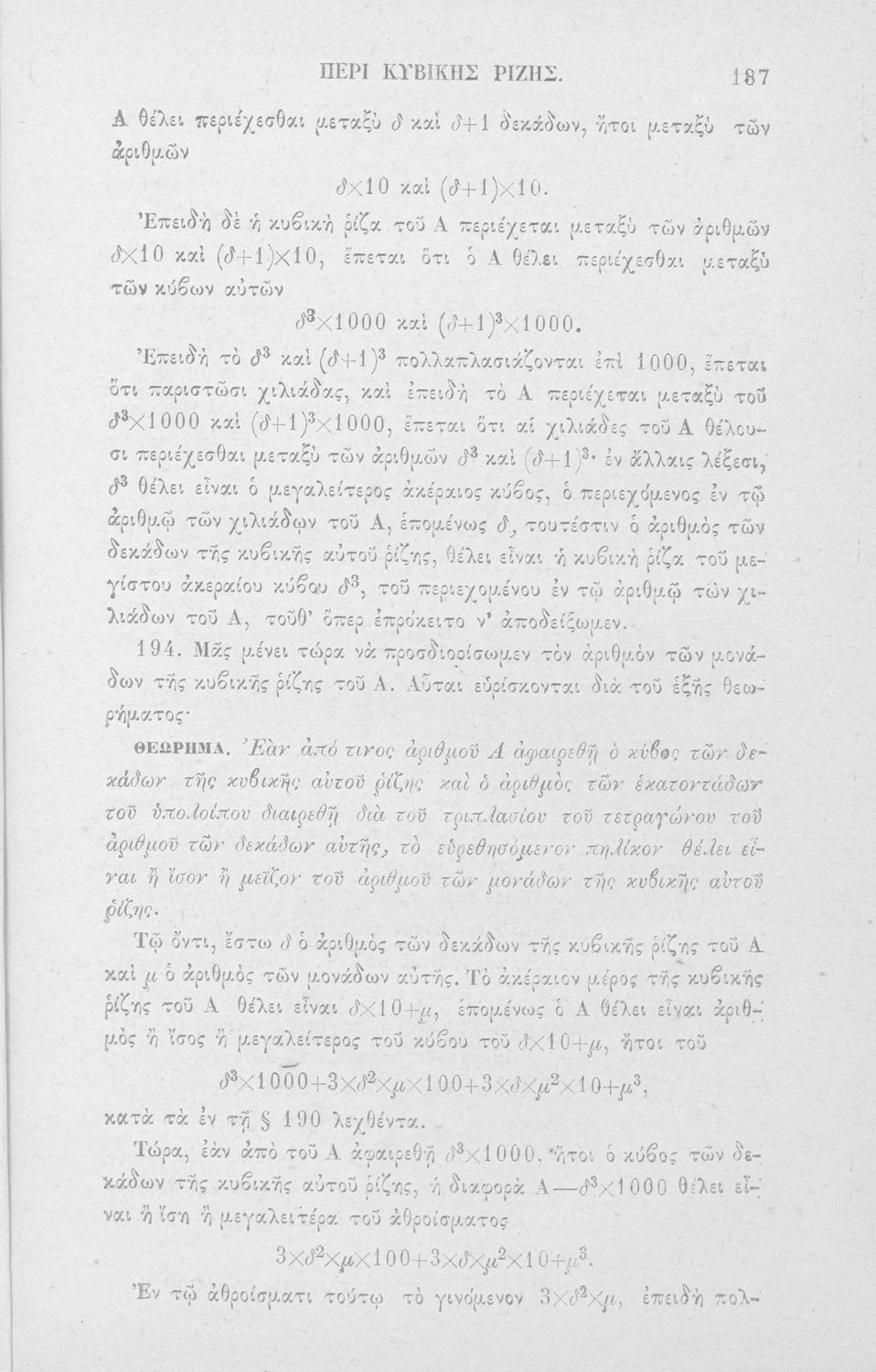 Σχολικό εγχειρίδιο Αριθμητικής χωρισμένο σε θεωρήματα και ασκήσεις.