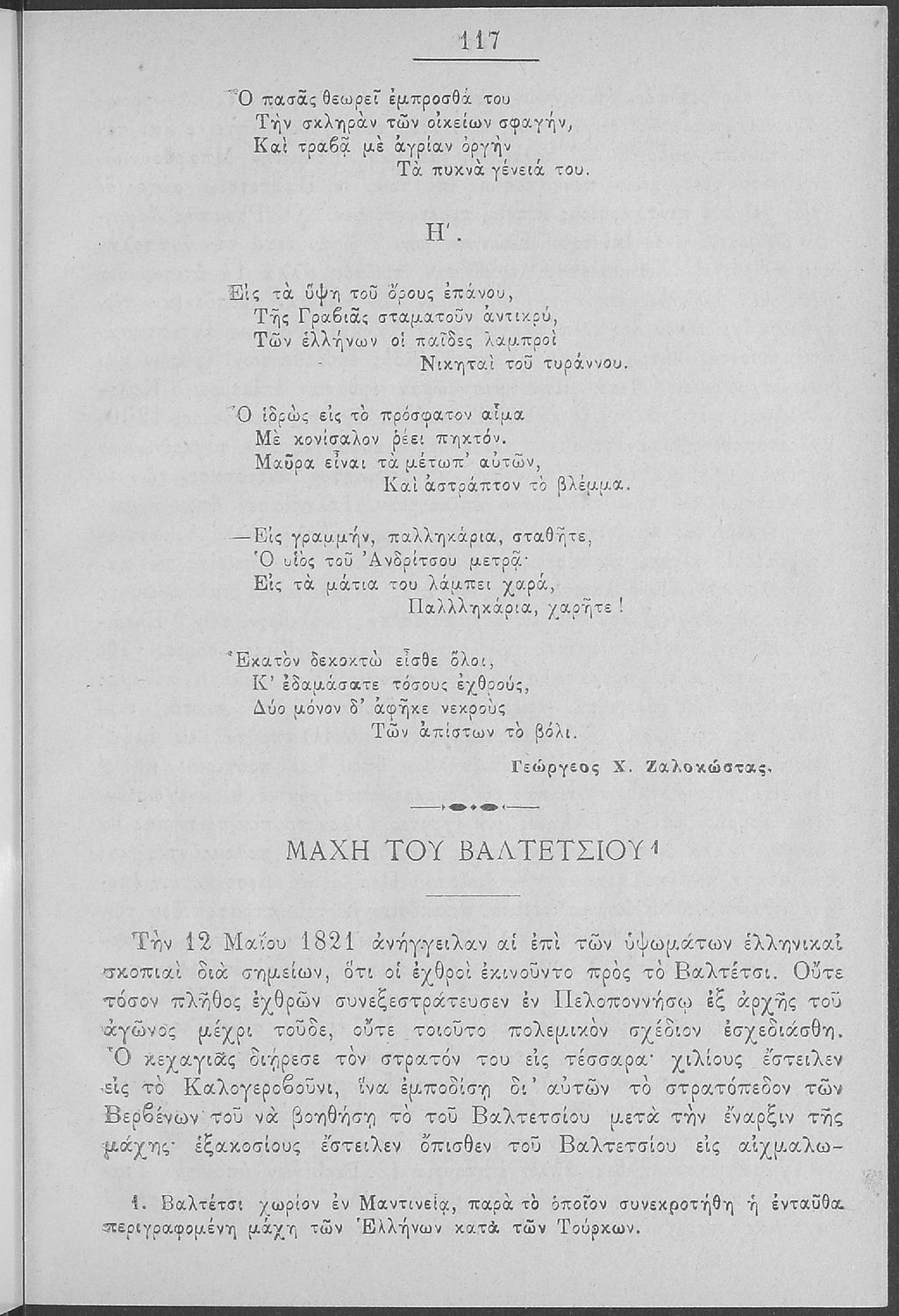 Σχολικό εγχειρίδιο Νέων Ελληνικών του 1889. Περιέχει πεζά και ποιήματα Ελλήνων λογοτεχνών εμπνευσμένα από την καθημερινή και ιστορική ζωή του τόπου. Έχει την έγκριση του Υπουργείου Δημόσιας Εκπαίδευσης.
