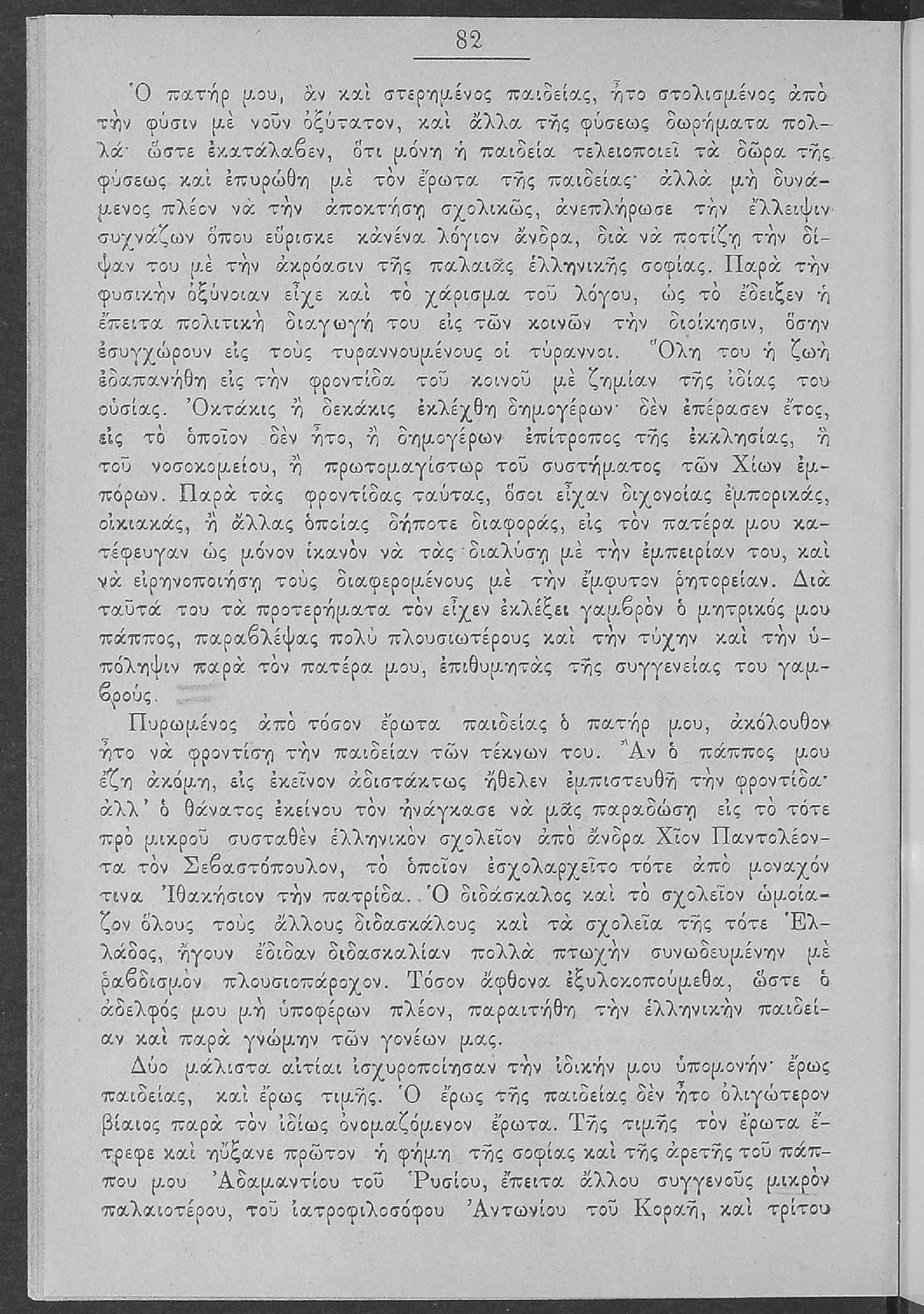 Σχολικό εγχειρίδιο Νέων Ελληνικών του 1889. Περιέχει πεζά και ποιήματα Ελλήνων λογοτεχνών εμπνευσμένα από την καθημερινή και ιστορική ζωή του τόπου. Έχει την έγκριση του Υπουργείου Δημόσιας Εκπαίδευσης.