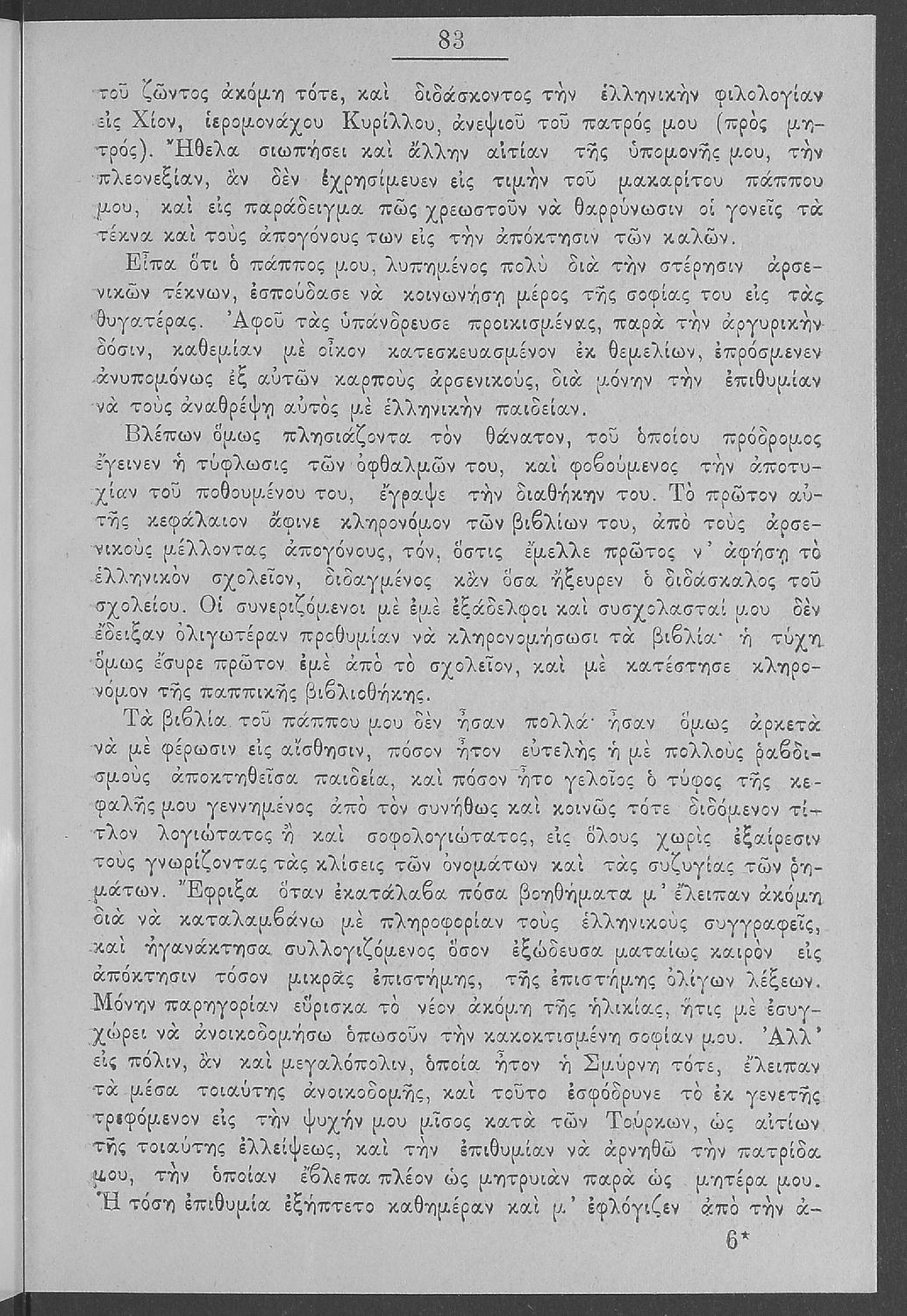 Σχολικό εγχειρίδιο Αρχαίων Ελληνικών για τα Ιερατικά Σχολεία. Ο τόμος περιέχει: «Γραμματικάς γυμνάσεις, Μύθους του Αισώπου και Φιλοσόφων ανέκδοτα, εκ των λόγων του θείου Χρυσόστομου τους περί προσευχής και τον