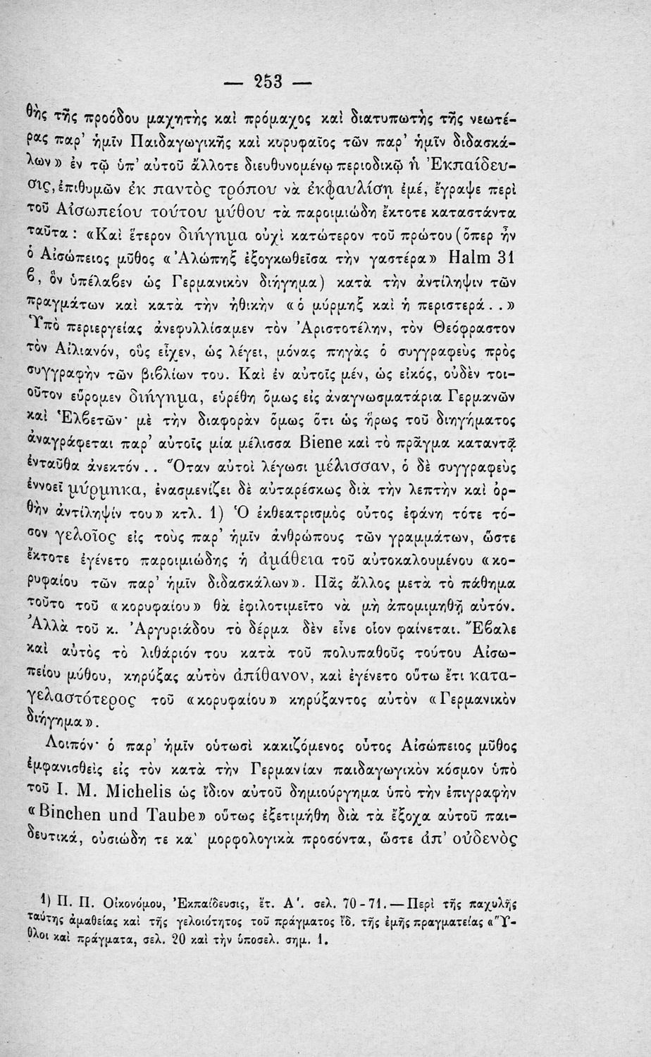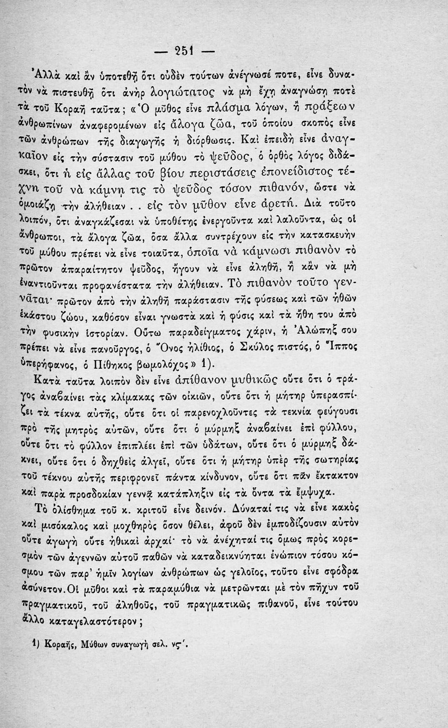Έκδοση που περιλαμβάνει κριτική, από πραγματολογική και διδακτική άποψη, της Ελληνικής Χρηστομάθειας του Ιωάννη Γεράνη. Ο συγγραφέας αποφαίνεται ότι το εν λόγω σχολικό εγχειρίδιο είναι όχι μόνο ακατάλληλο αλλά