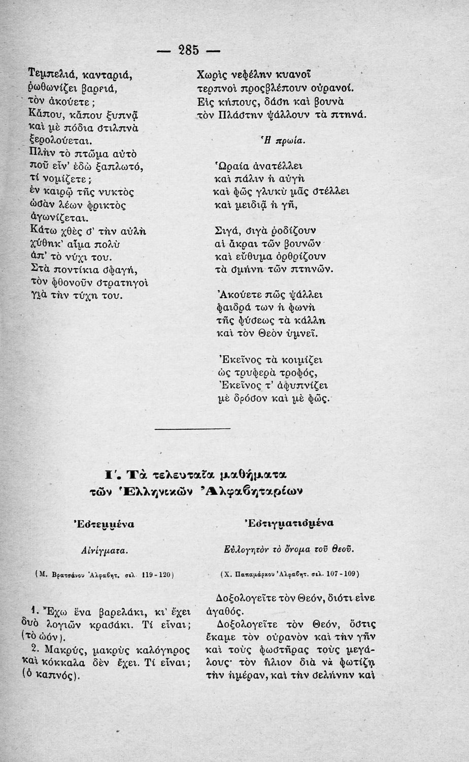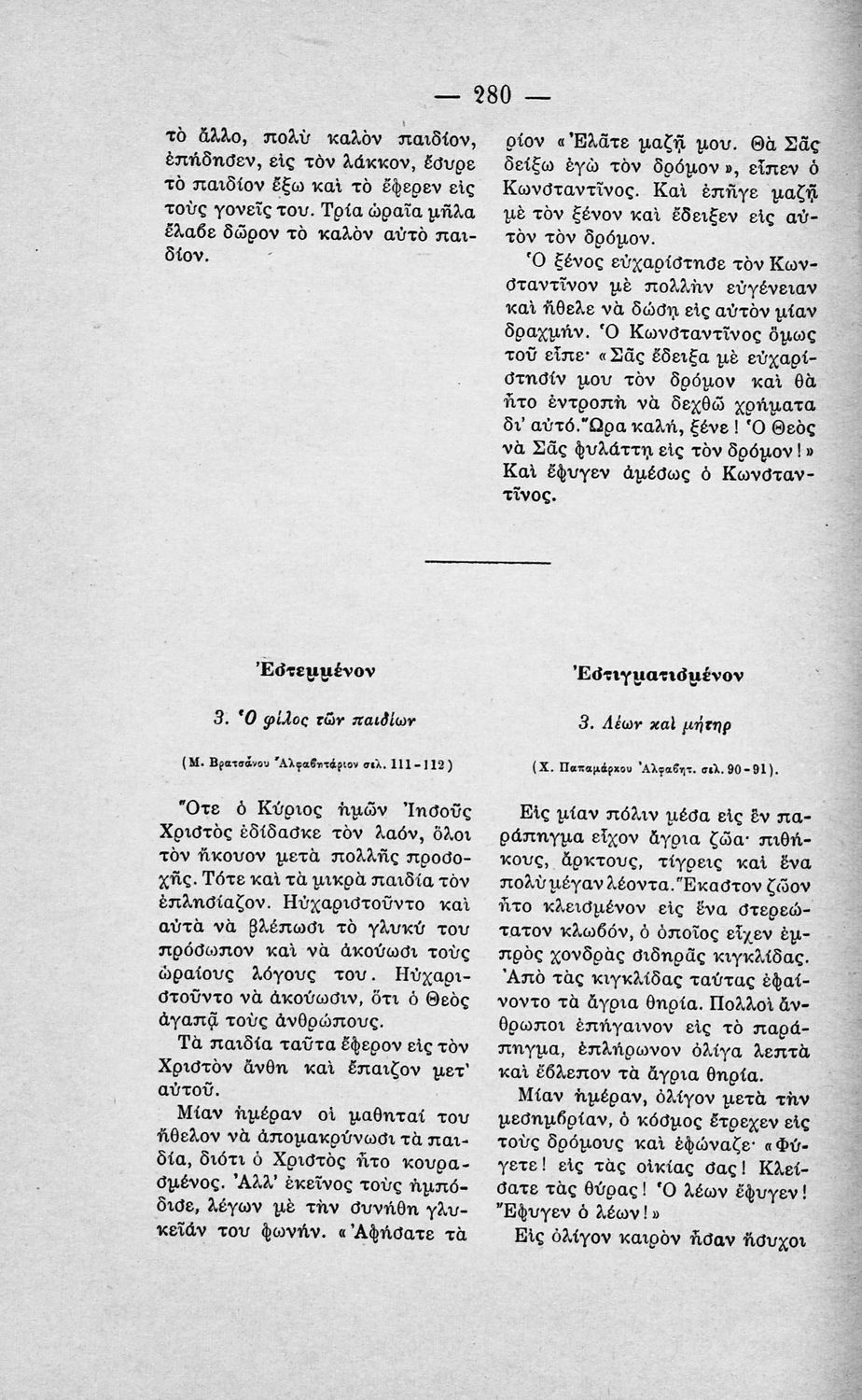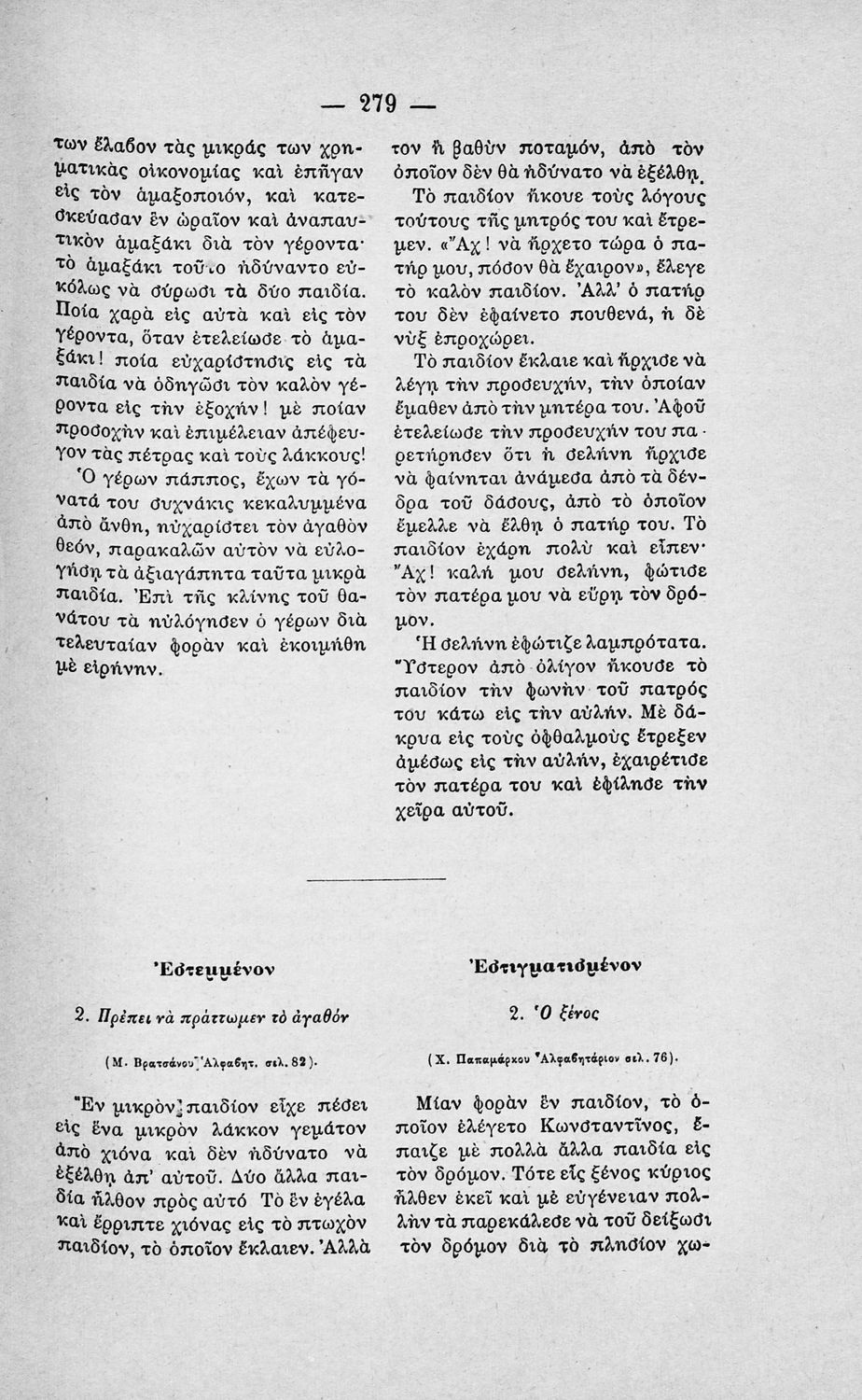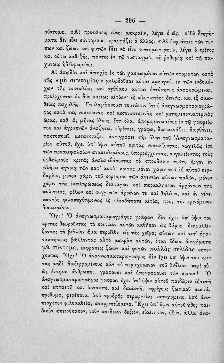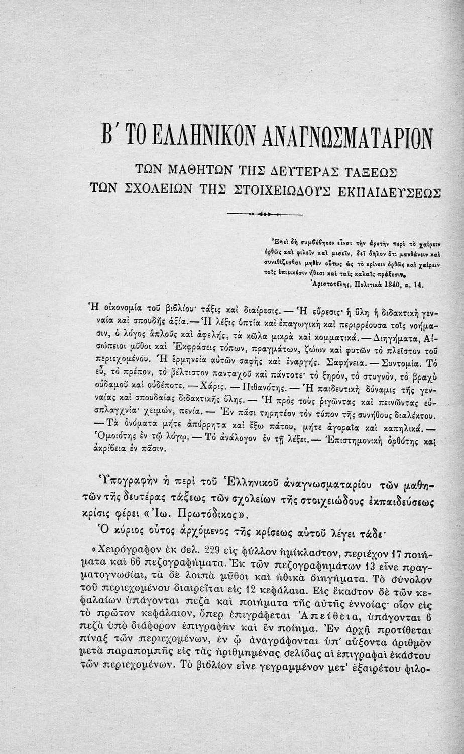 Γλώσσα: Καθαρεύουσα Παρουσίαση περιεχομένου: Βιβλίο που περιέχει απόψεις, σκέψεις και κριτική των αναγνωστικών των μικρών Ελληνοπαίδων από τον συγγραφέα. |