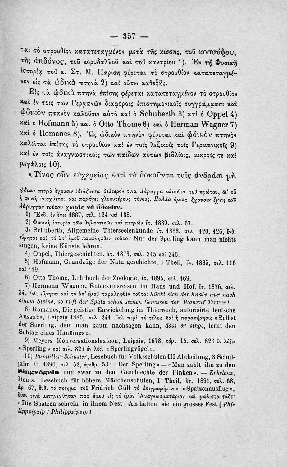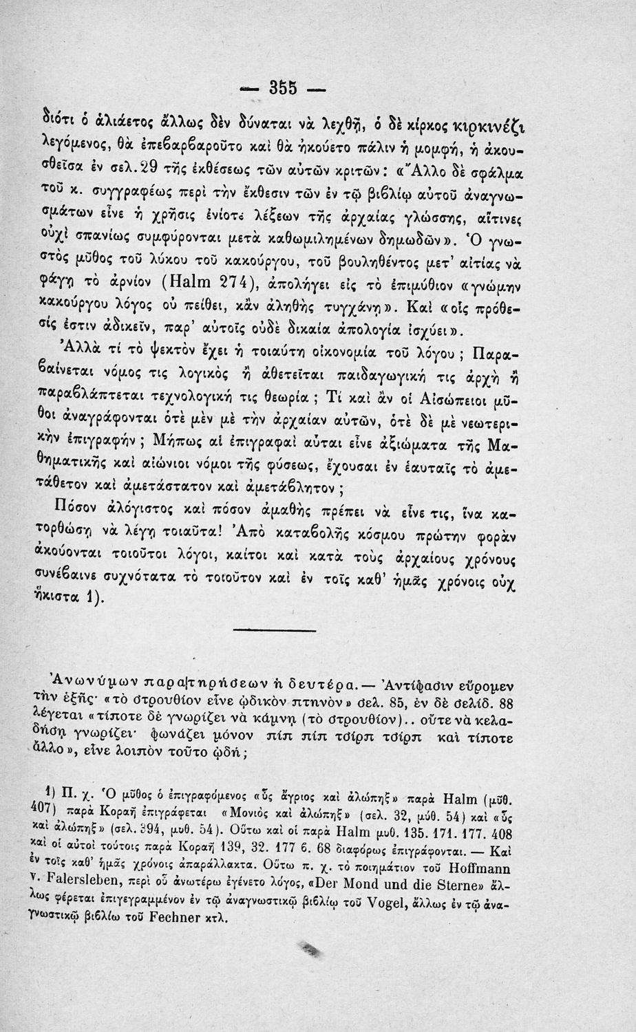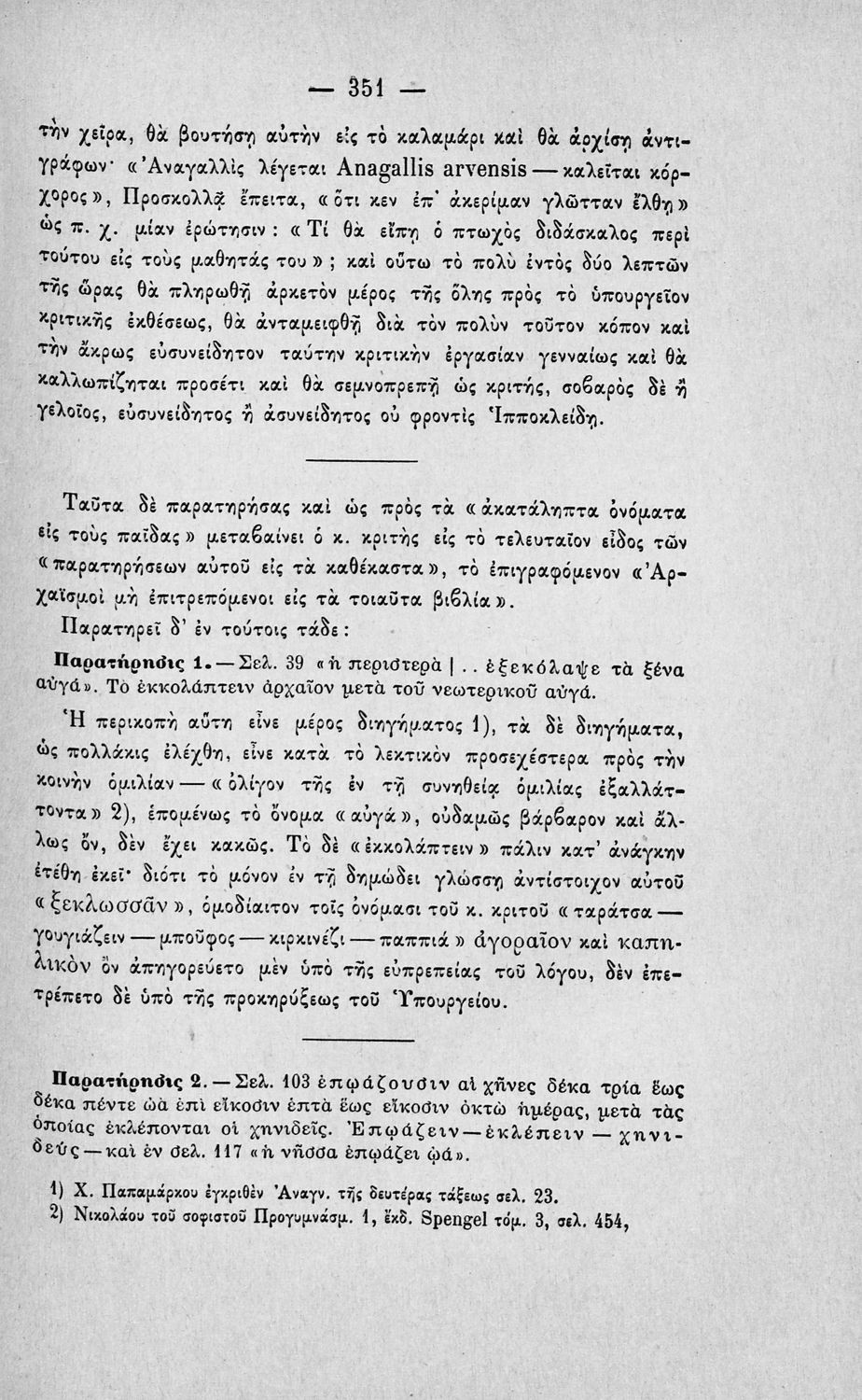 Έκδοση που περιλαμβάνει κριτική, από πραγματολογική και διδακτική άποψη, της Ελληνικής Χρηστομάθειας του Ιωάννη Γεράνη. Ο συγγραφέας αποφαίνεται ότι το εν λόγω σχολικό εγχειρίδιο είναι όχι μόνο ακατάλληλο αλλά