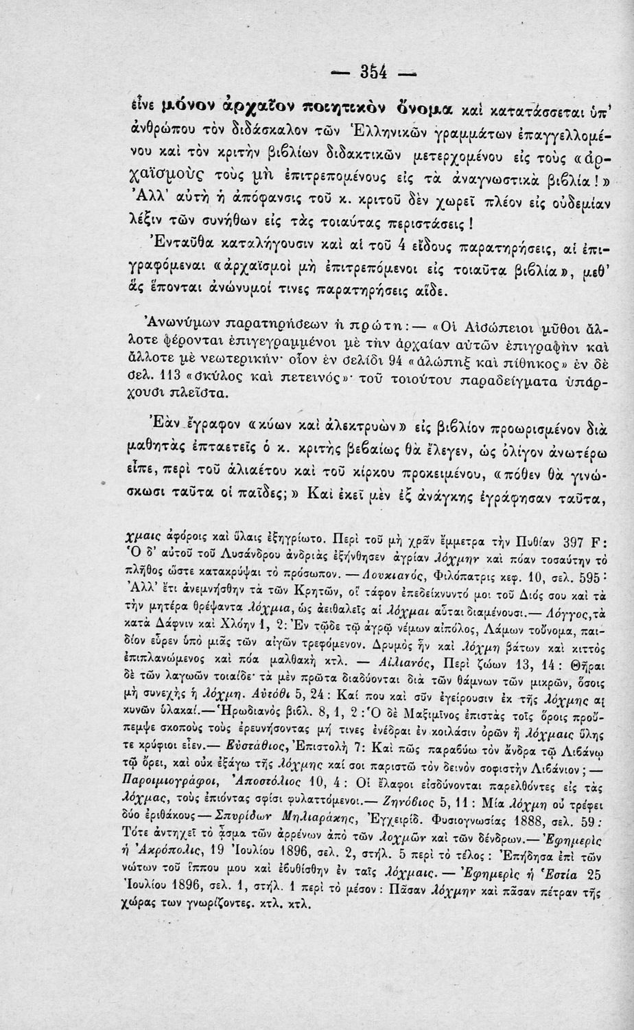 Σχολικό εγχειρίδιο Νέων Ελληνικών του 1889. Περιέχει πεζά και ποιήματα Ελλήνων λογοτεχνών εμπνευσμένα από την καθημερινή και ιστορική ζωή του τόπου. Έχει την έγκριση του Υπουργείου Δημόσιας Εκπαίδευσης.