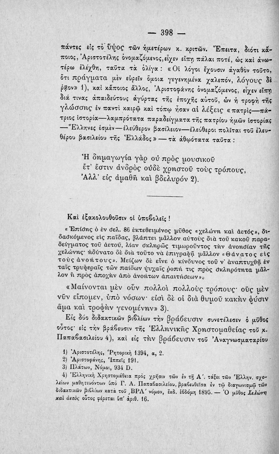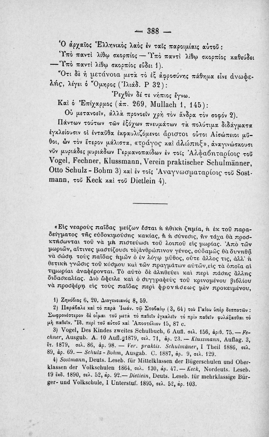 Σχολικό εγχειρίδιο Νέων Ελληνικών του 1889. Περιέχει πεζά και ποιήματα Ελλήνων λογοτεχνών εμπνευσμένα από την καθημερινή και ιστορική ζωή του τόπου. Έχει την έγκριση του Υπουργείου Δημόσιας Εκπαίδευσης.