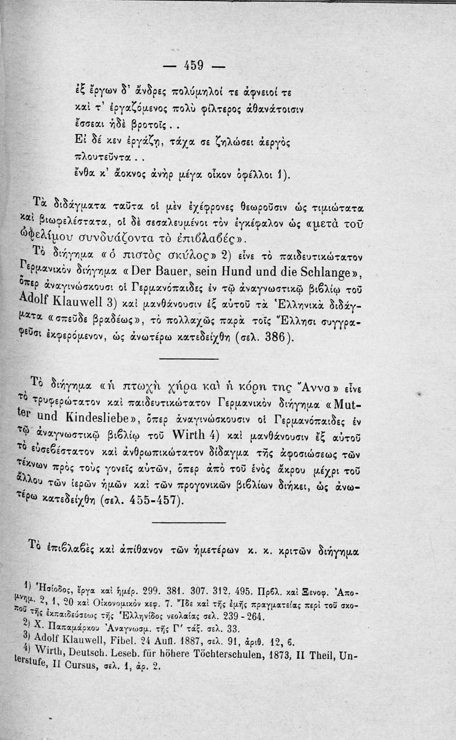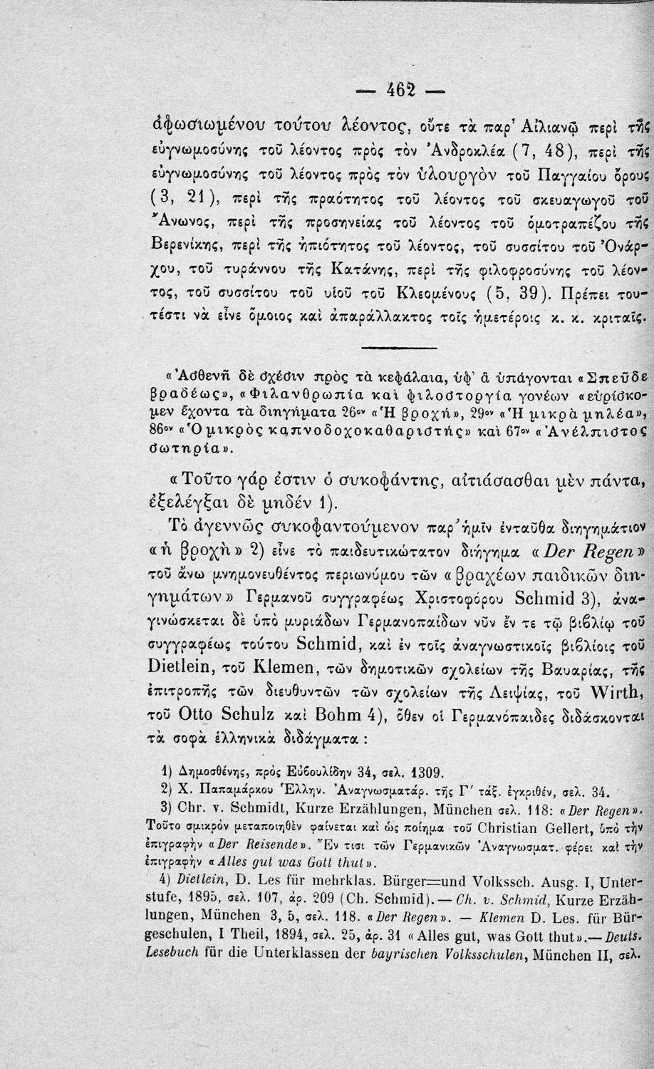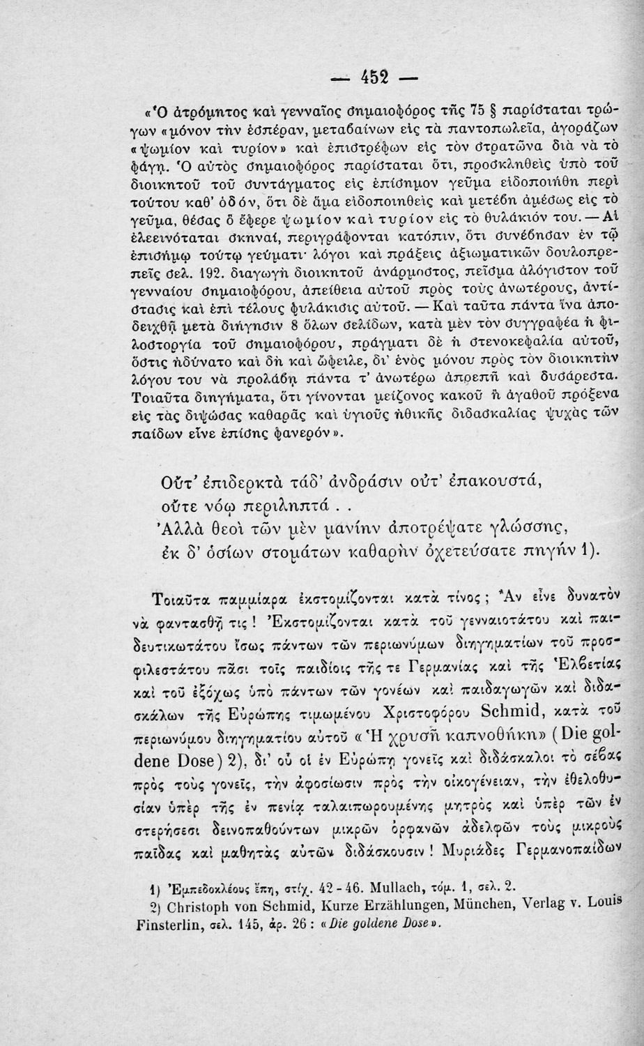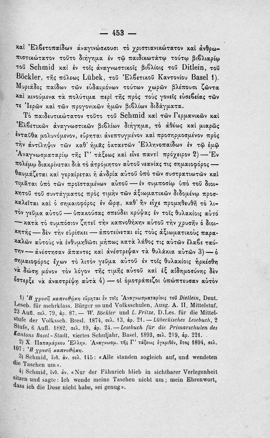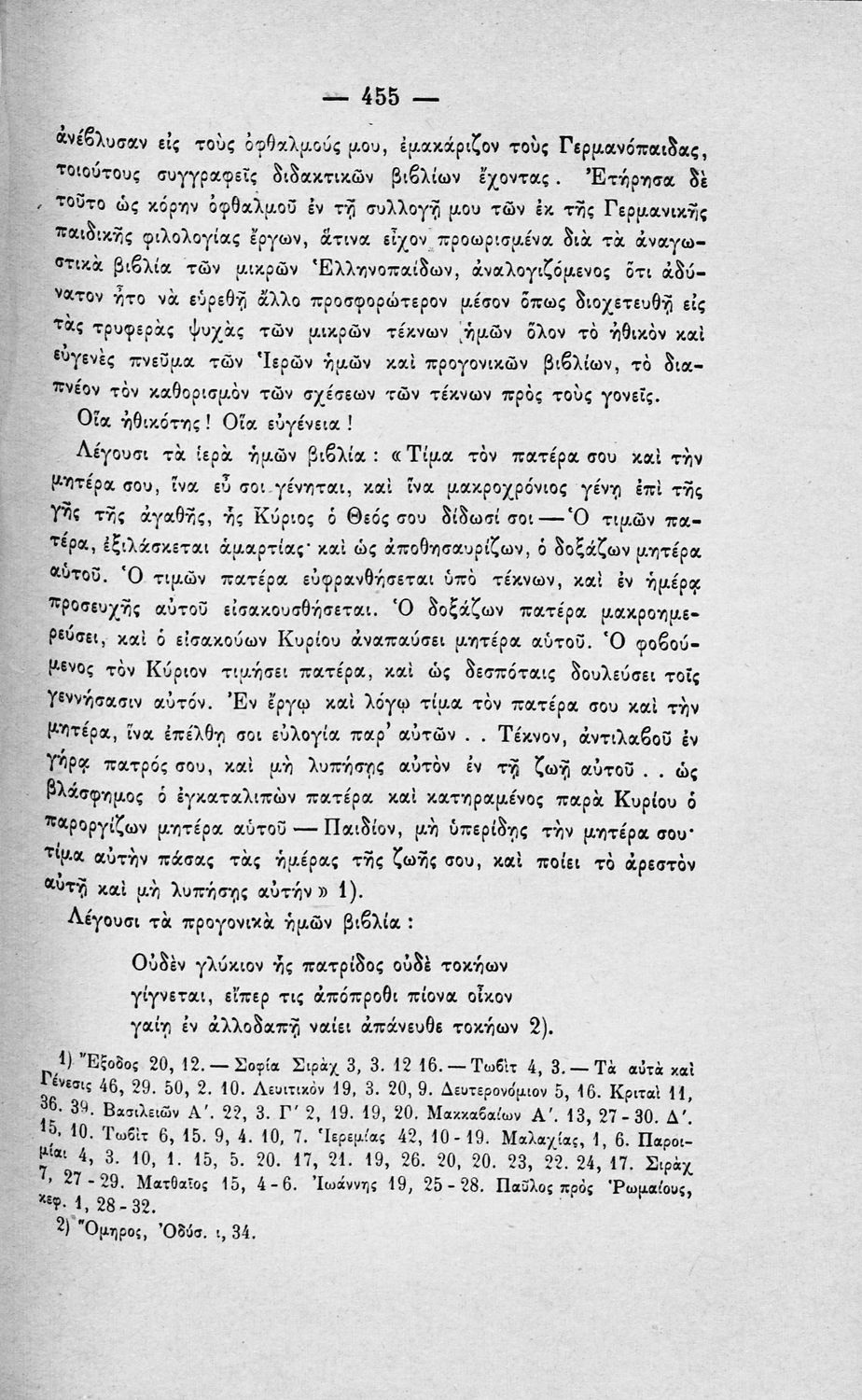 Γλώσσα: Καθαρεύουσα Παρουσίαση περιεχομένου: Βιβλίο που περιέχει απόψεις, σκέψεις και κριτική των αναγνωστικών των μικρών Ελληνοπαίδων από τον συγγραφέα. |