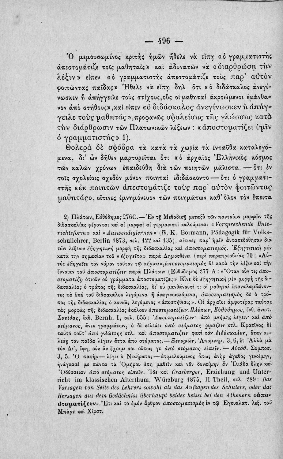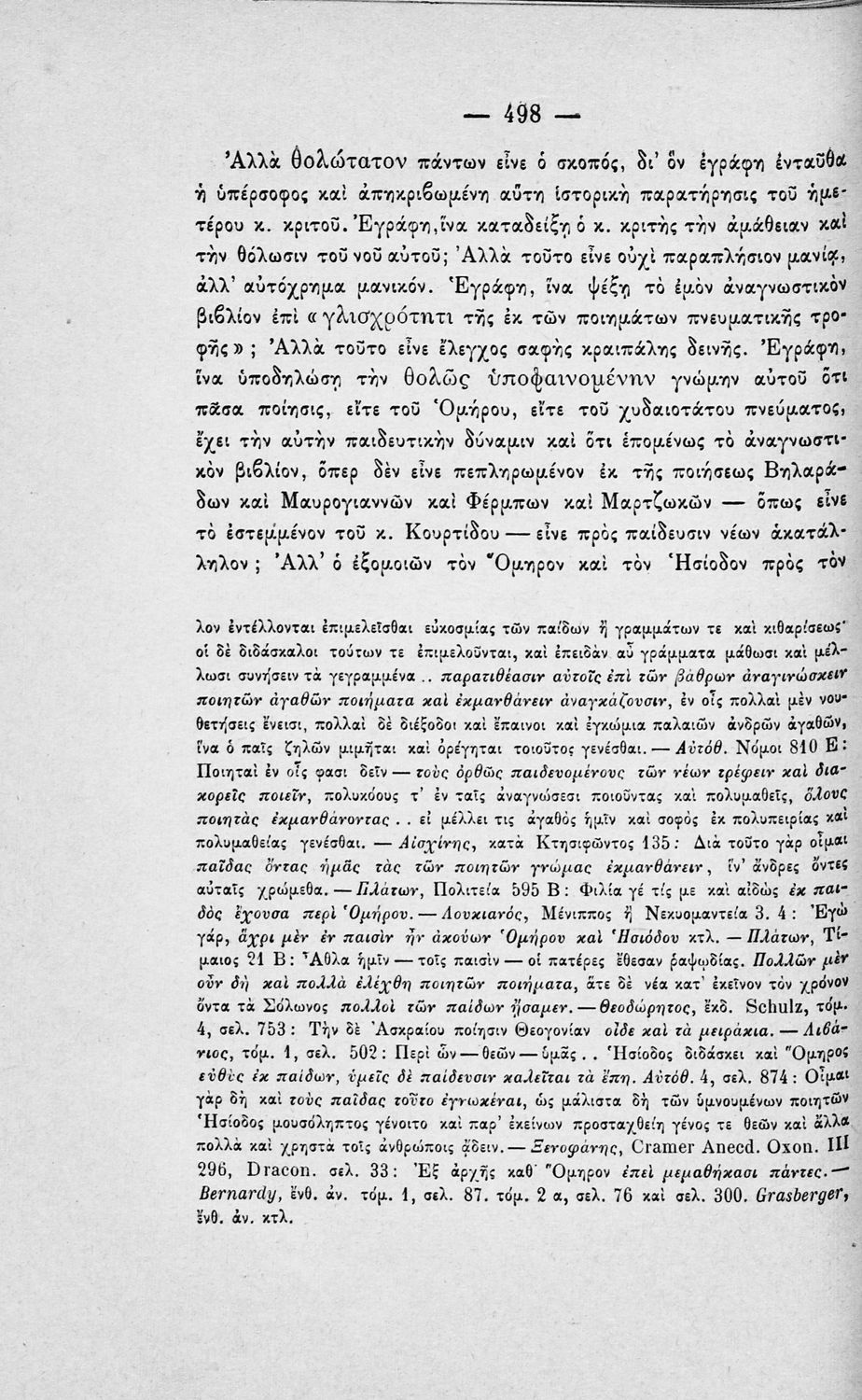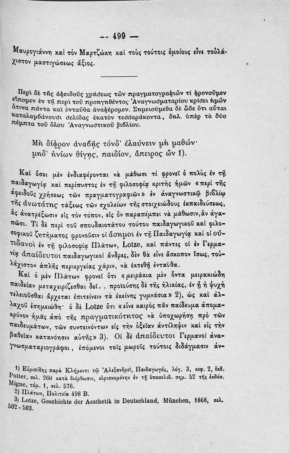 Έκδοση που περιλαμβάνει κριτική, από πραγματολογική και διδακτική άποψη, της Ελληνικής Χρηστομάθειας του Ιωάννη Γεράνη. Ο συγγραφέας αποφαίνεται ότι το εν λόγω σχολικό εγχειρίδιο είναι όχι μόνο ακατάλληλο αλλά