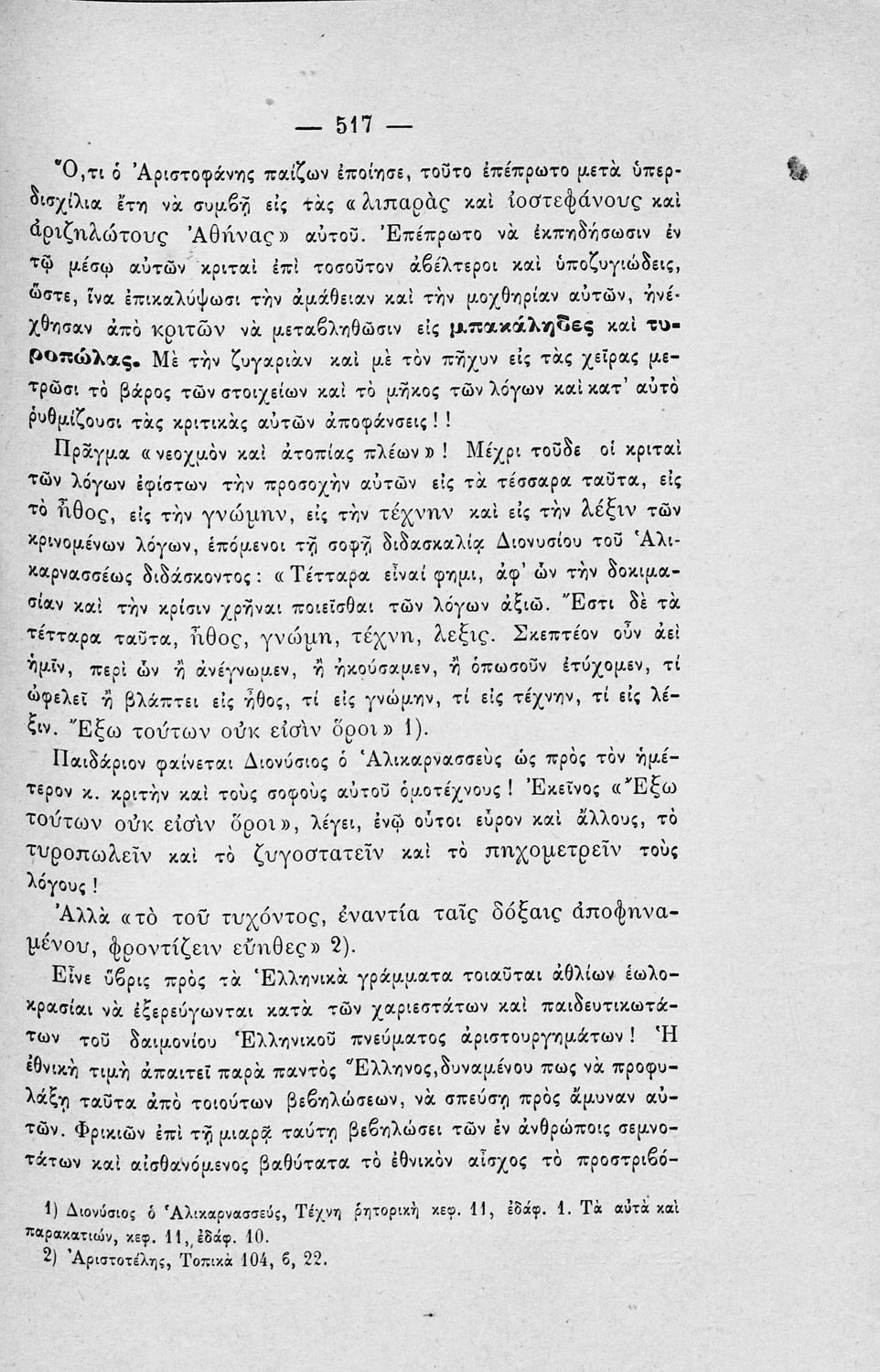 Έκδοση που περιλαμβάνει κριτική, από πραγματολογική και διδακτική άποψη, της Ελληνικής Χρηστομάθειας του Ιωάννη Γεράνη. Ο συγγραφέας αποφαίνεται ότι το εν λόγω σχολικό εγχειρίδιο είναι όχι μόνο ακατάλληλο αλλά
