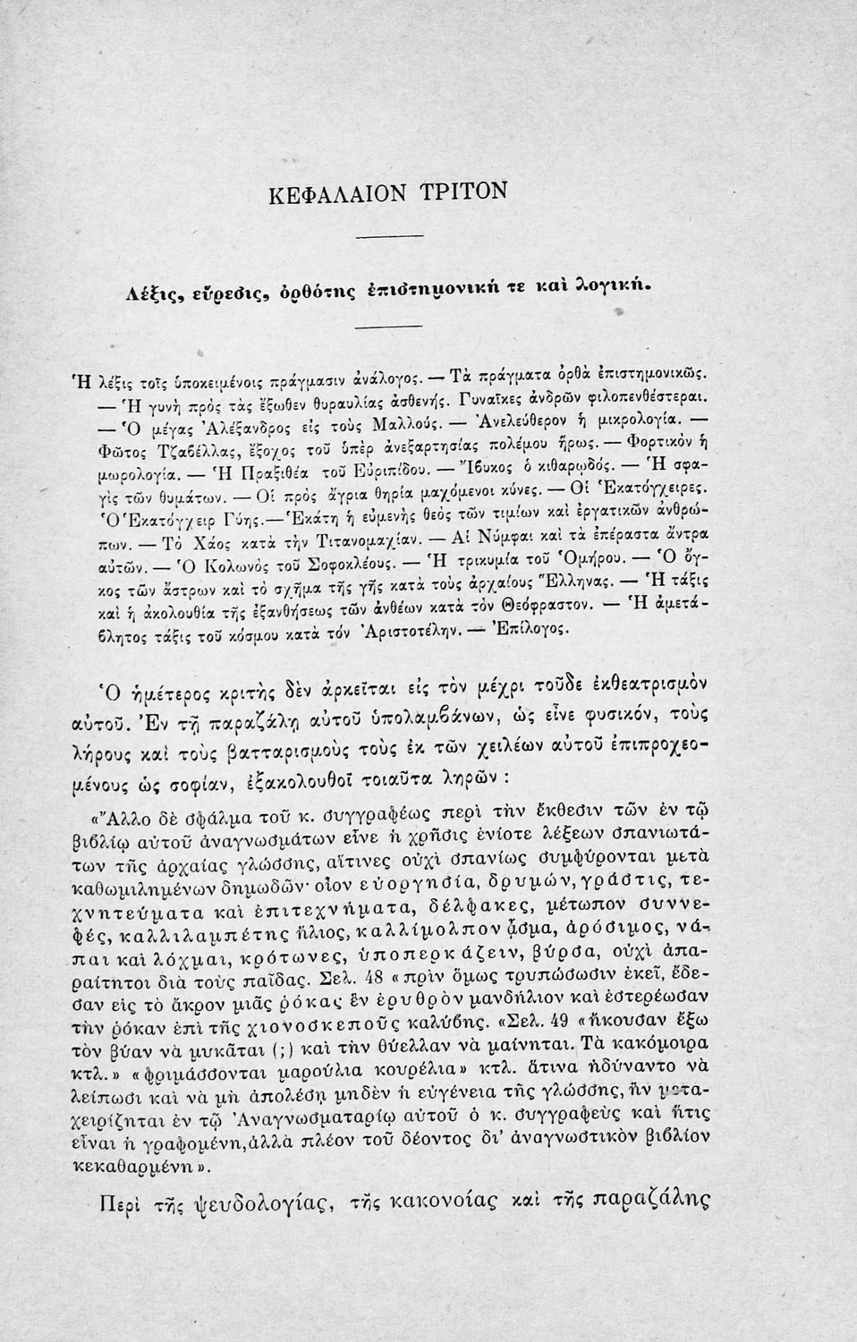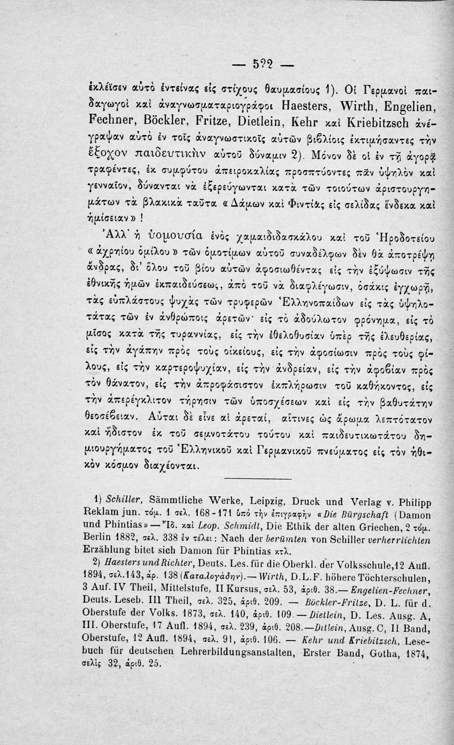 Έκδοση που περιλαμβάνει κριτική, από πραγματολογική και διδακτική άποψη, της Ελληνικής Χρηστομάθειας του Ιωάννη Γεράνη. Ο συγγραφέας αποφαίνεται ότι το εν λόγω σχολικό εγχειρίδιο είναι όχι μόνο ακατάλληλο αλλά