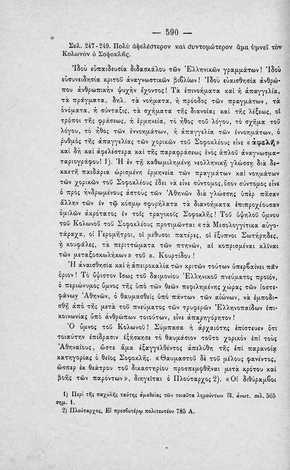 Έκδοση που περιλαμβάνει κριτική, από πραγματολογική και διδακτική άποψη, της Ελληνικής Χρηστομάθειας του Ιωάννη Γεράνη. Ο συγγραφέας αποφαίνεται ότι το εν λόγω σχολικό εγχειρίδιο είναι όχι μόνο ακατάλληλο αλλά