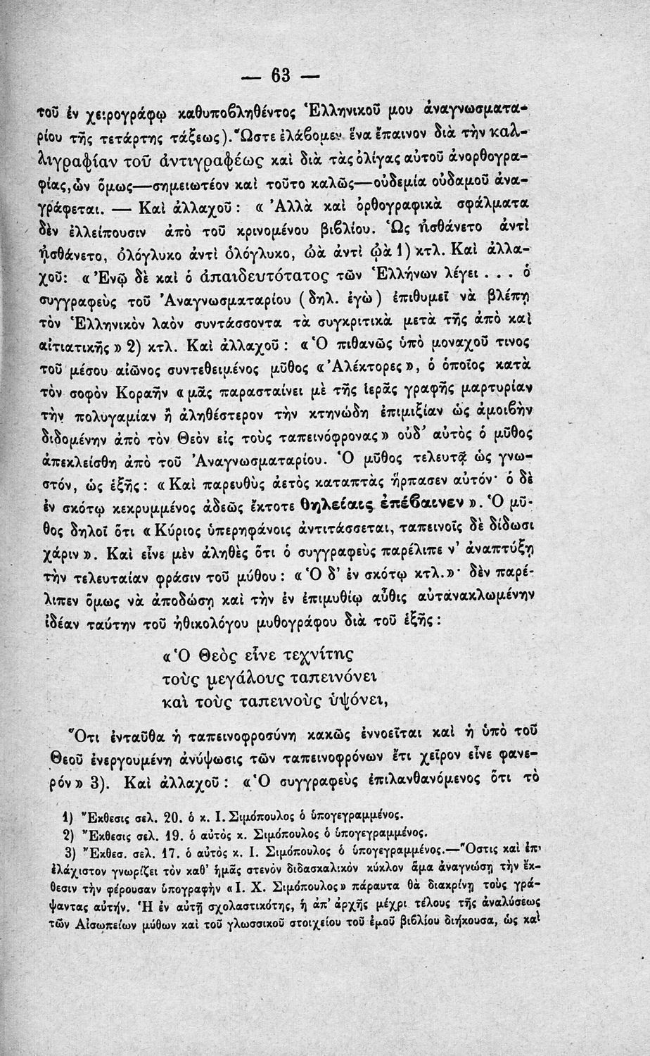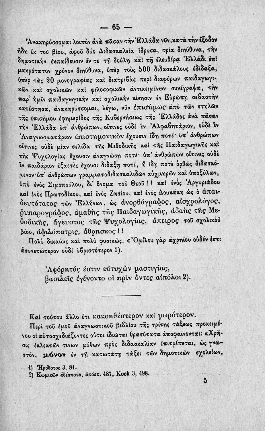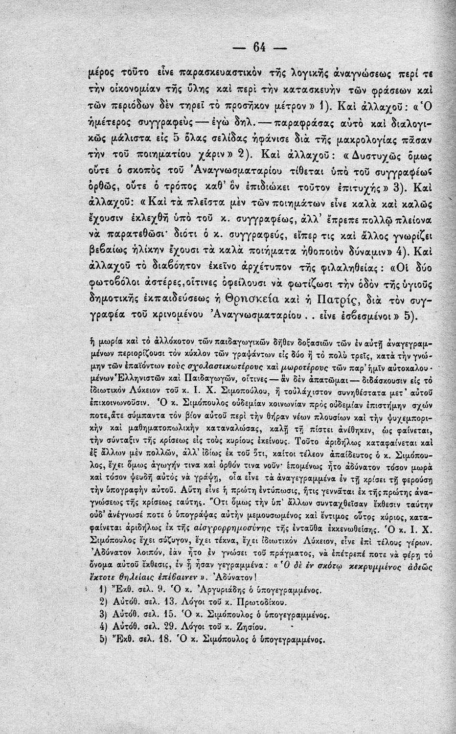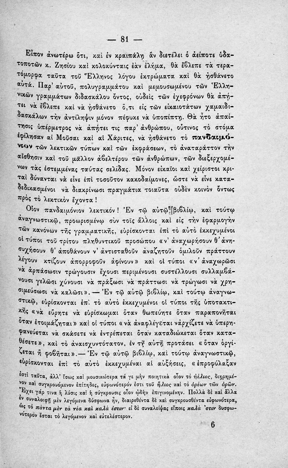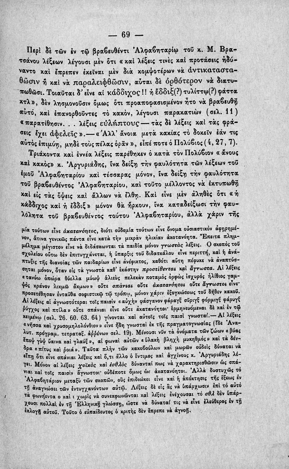Γλώσσα: Καθαρεύουσα Παρουσίαση περιεχομένου: Βιβλίο που περιέχει απόψεις, σκέψεις και κριτική των αναγνωστικών των μικρών Ελληνοπαίδων από τον συγγραφέα. |