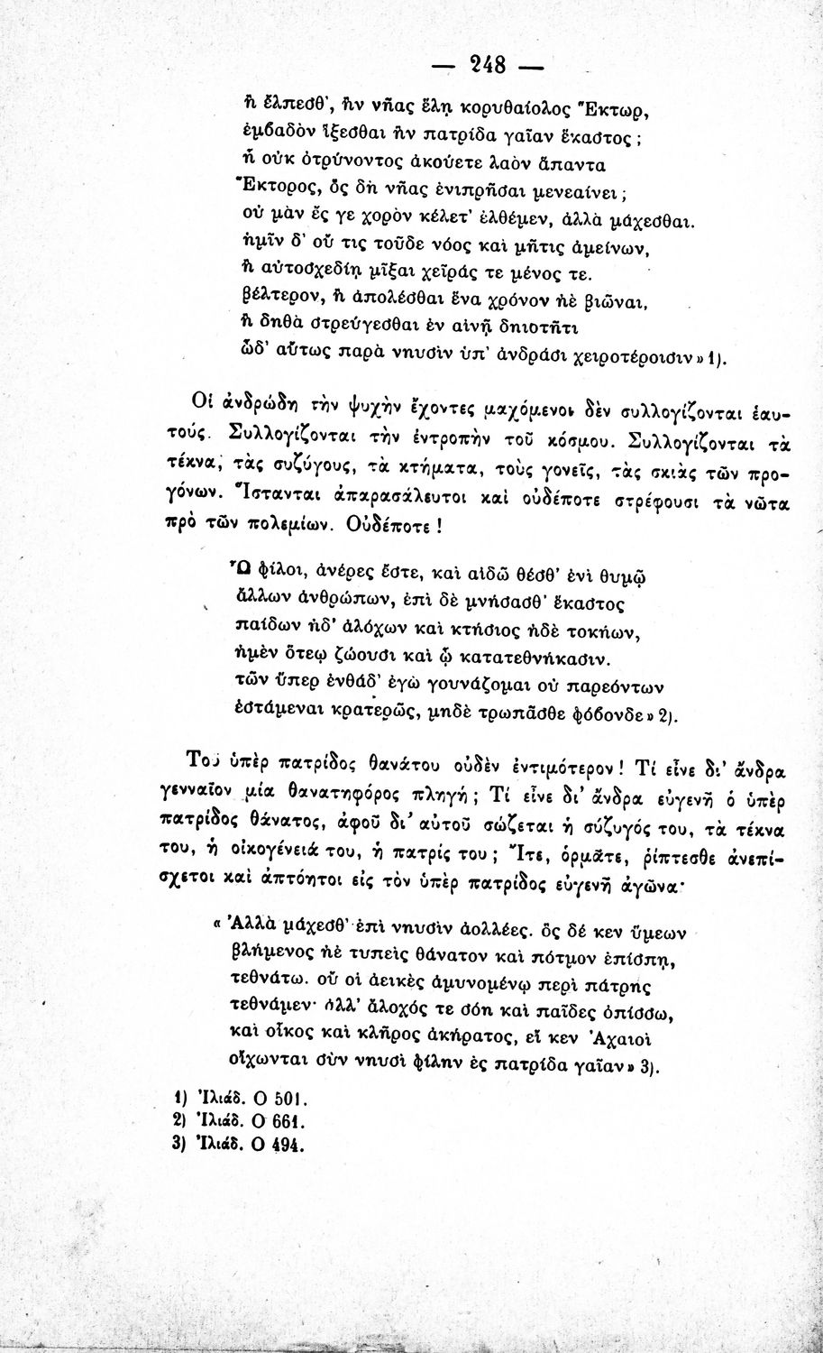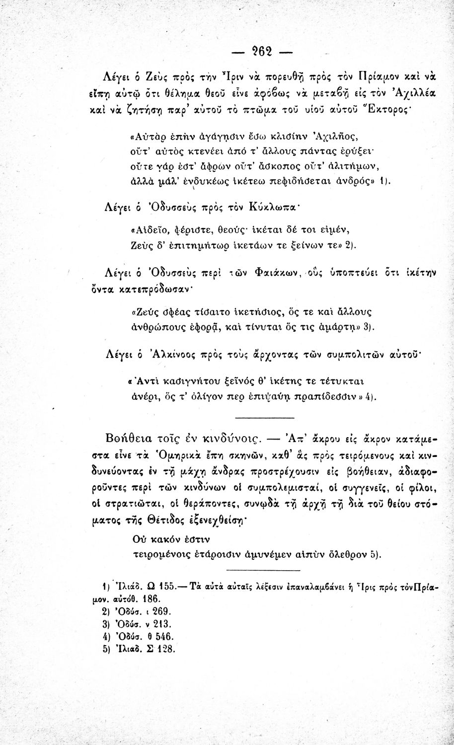 Μαθητικό βοήθημα του Ελληνικού Σχολείου, των Παρθεναγωγείων και του Γυμνασίου για το μάθημα των Αρχαίων Ελληνικών. Περιέχει τις ραψωδίες Ο, Π, Ρ, Σ, Τ, Χ, ψ, Ω από το πρωτότυπο με σχόλια και ερμηνευτικές ...