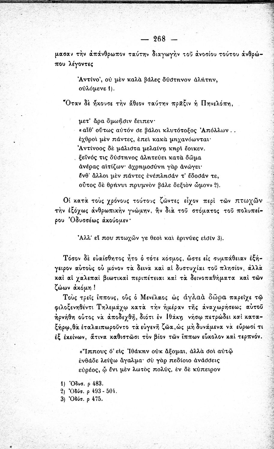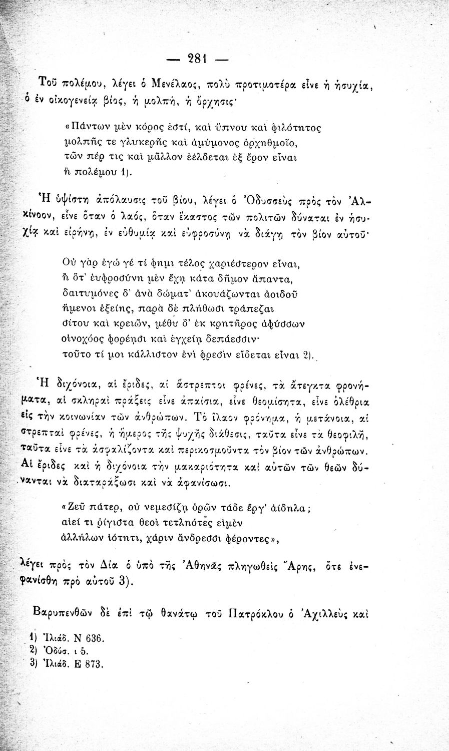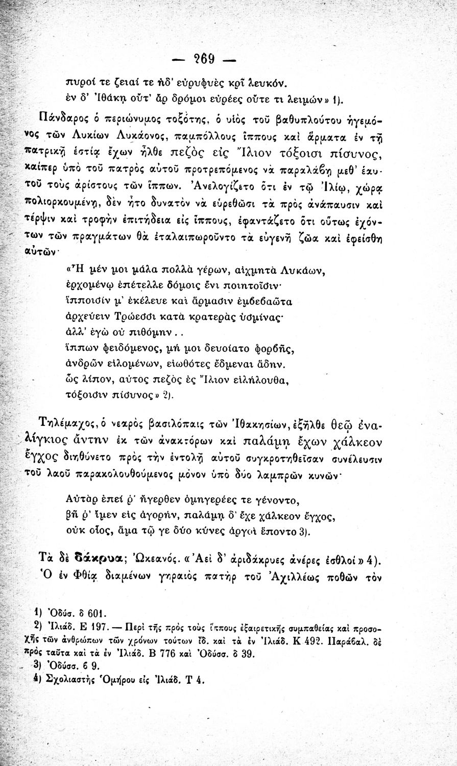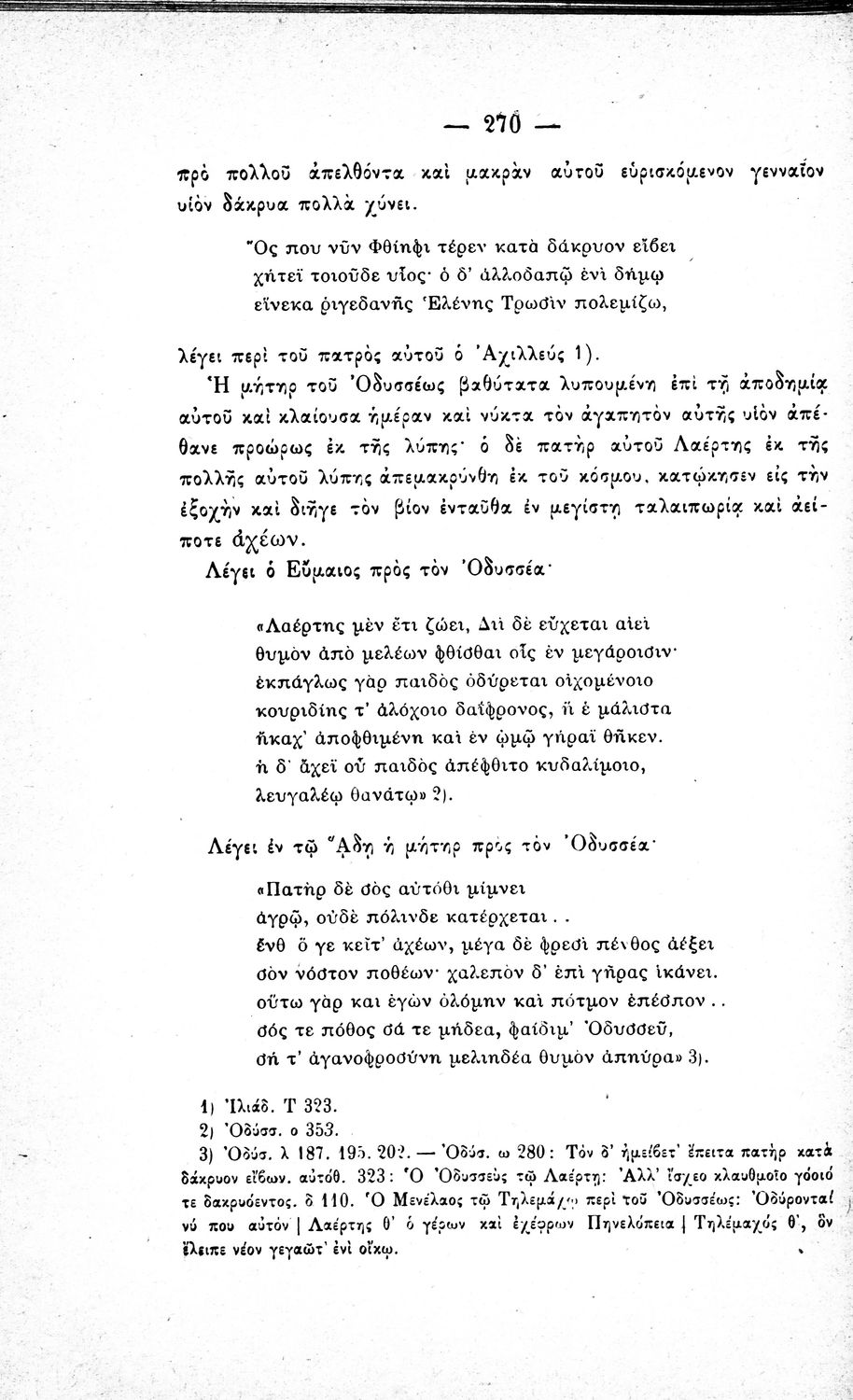 Μαθητικό βοήθημα του Ελληνικού Σχολείου, των Παρθεναγωγείων και του Γυμνασίου για το μάθημα των Αρχαίων Ελληνικών. Περιέχει τις ραψωδίες Ο, Π, Ρ, Σ, Τ, Χ, ψ, Ω από το πρωτότυπο με σχόλια και ερμηνευτικές ...