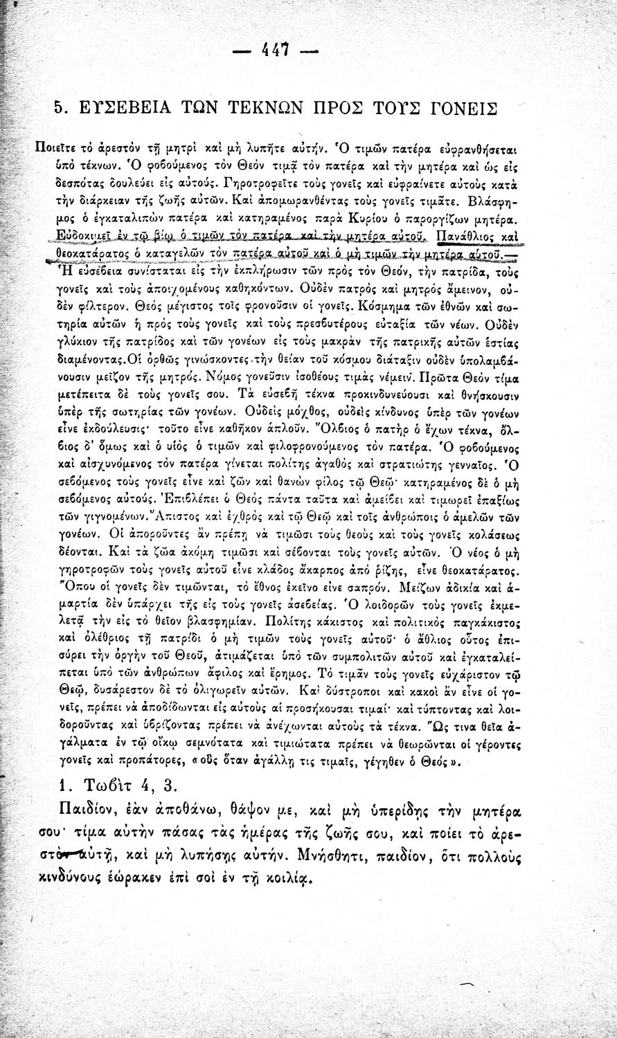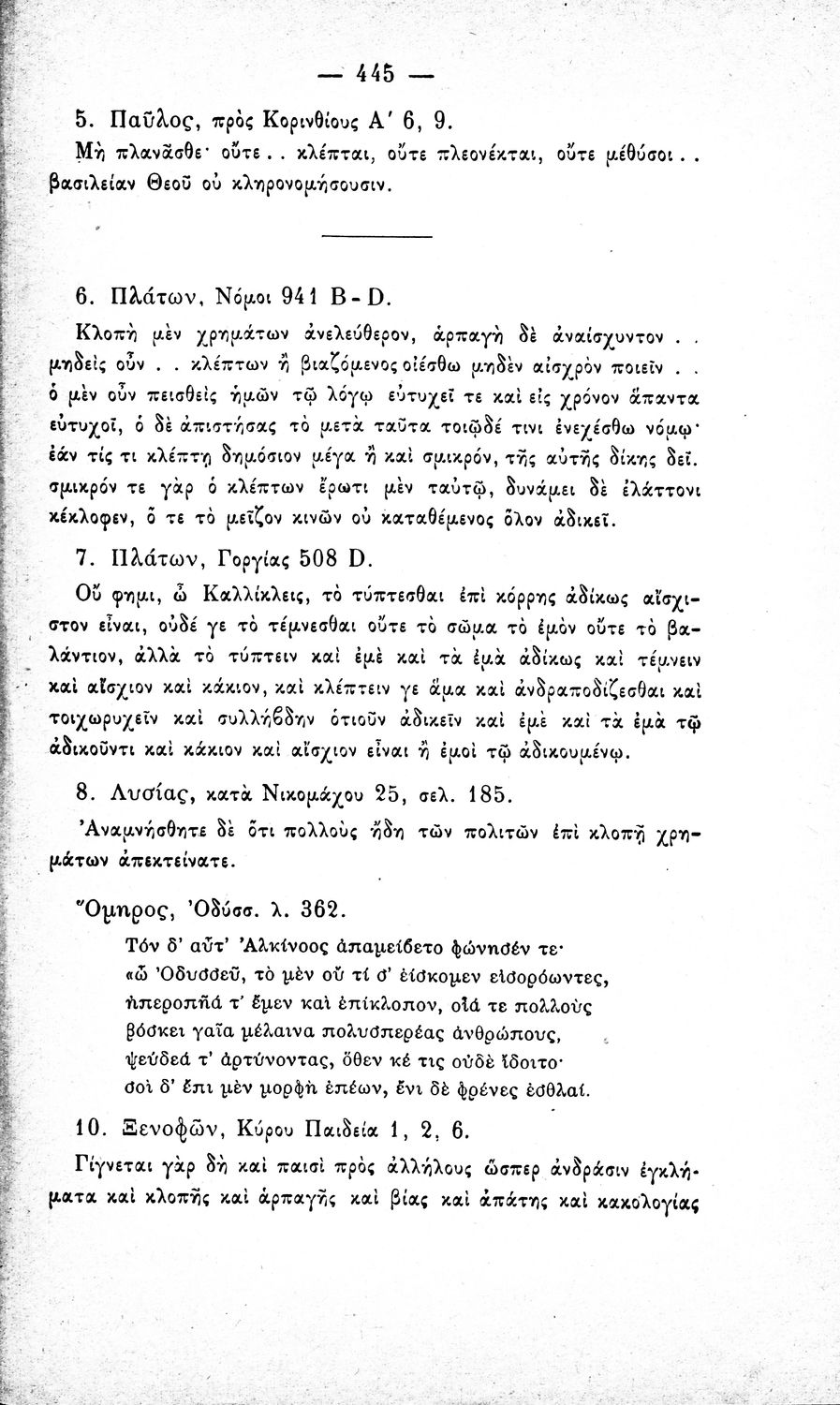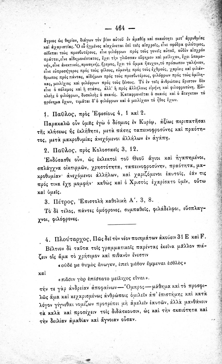 Σχολικό εγχειρίδιο Αρχαίων Ελληνικών για τα Ιερατικά Σχολεία. Ο τόμος περιέχει «..τεμάχια κατ’ εκλογήν εκ της Ξενοφώντος Κύρου Ανάβασεως και εκ των Γεωγραφικών και Εθνογραφικών Στράβωνος, Διοδώρου και άλλων, ...
