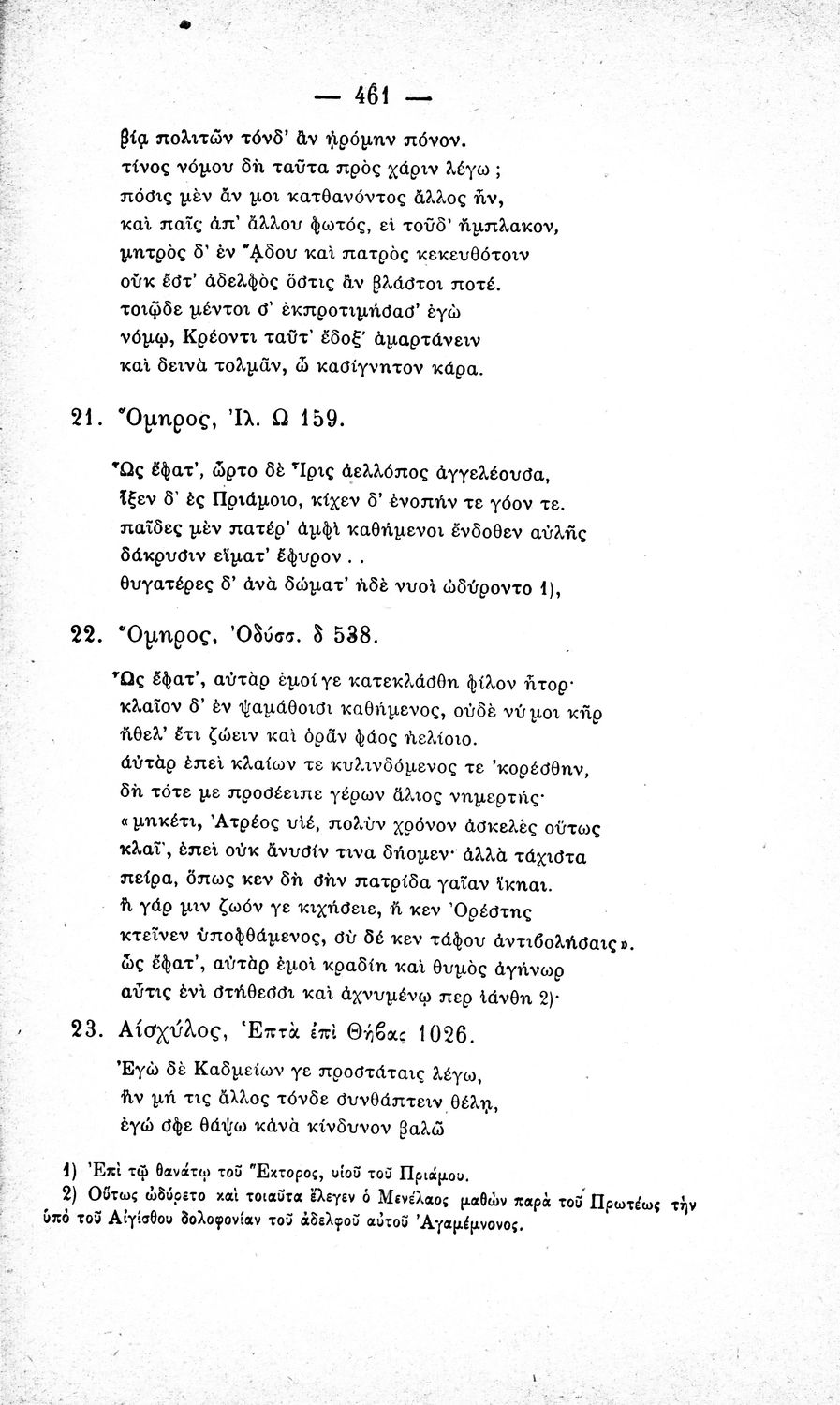 Μαθητικό βοήθημα του Ελληνικού Σχολείου, των Παρθεναγωγείων και του Γυμνασίου για το μάθημα των Αρχαίων Ελληνικών. Περιέχει τις ραψωδίες Ο, Π, Ρ, Σ, Τ, Χ, ψ, Ω από το πρωτότυπο με σχόλια και ερμηνευτικές ...