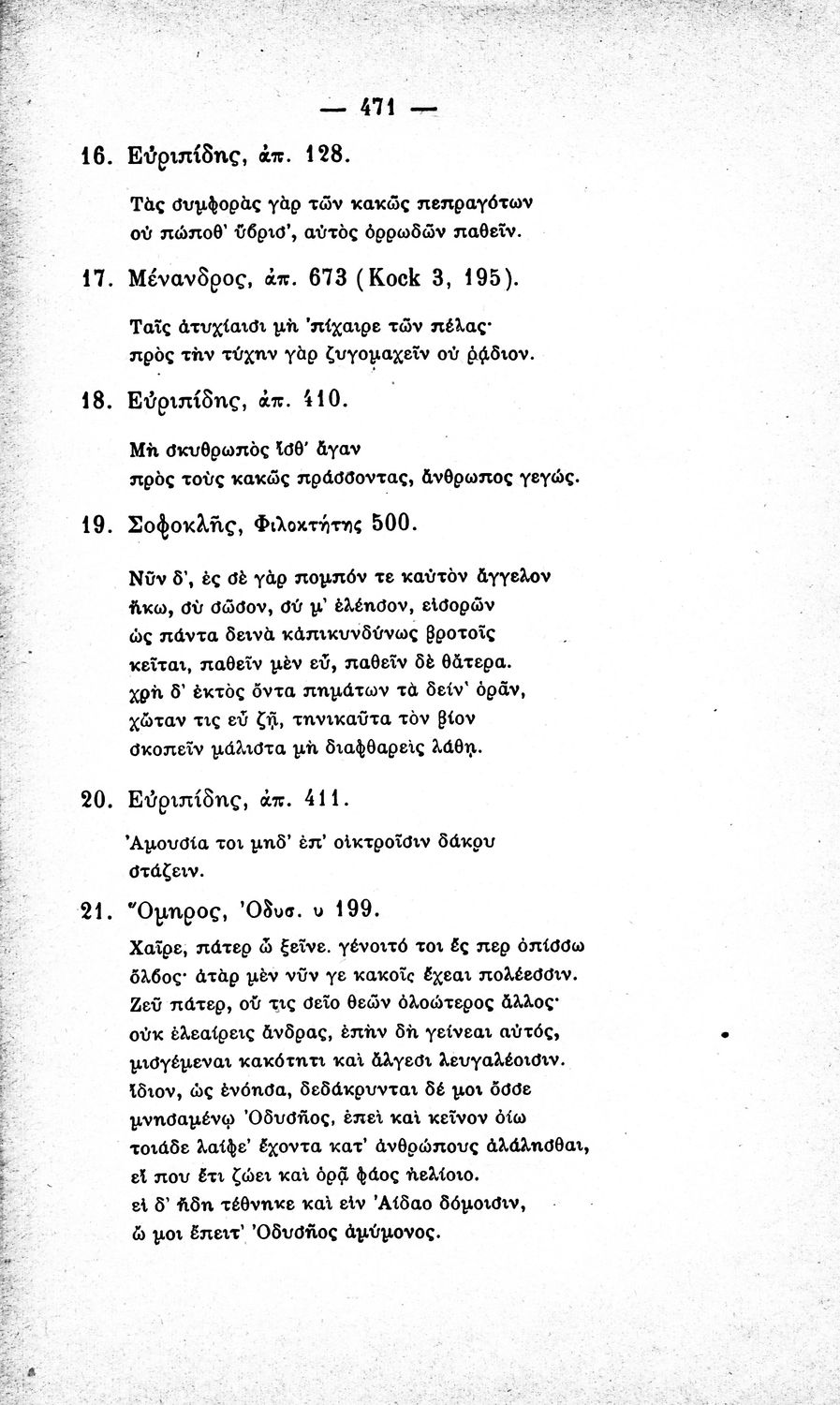 Μαθητικό βοήθημα του Ελληνικού Σχολείου, των Παρθεναγωγείων και του Γυμνασίου για το μάθημα των Αρχαίων Ελληνικών. Περιέχει τις ραψωδίες Ο, Π, Ρ, Σ, Τ, Χ, ψ, Ω από το πρωτότυπο με σχόλια και ερμηνευτικές ...
