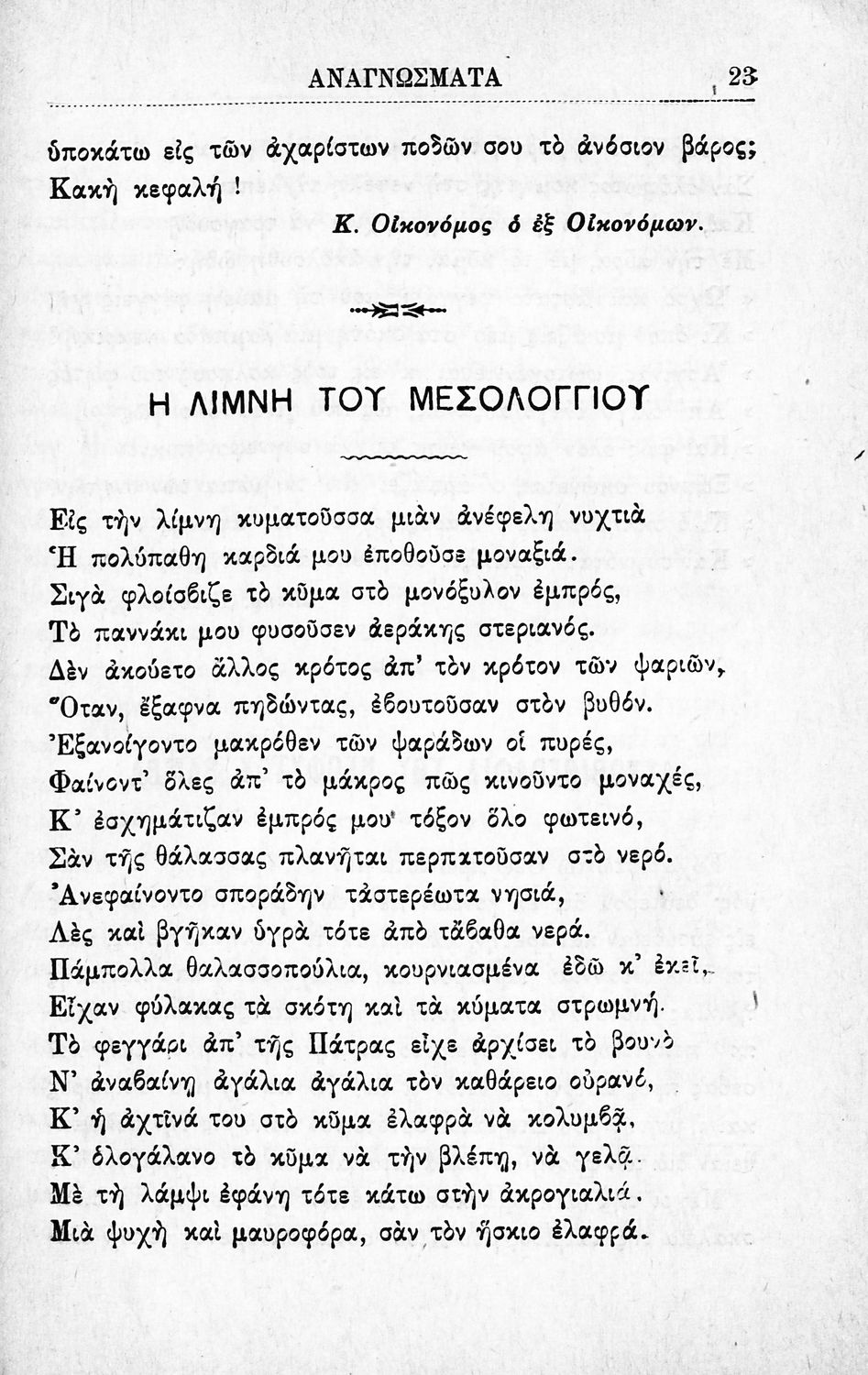 Σχετιζόμενοι όροι:  Πολέμης, Δροσίνης, Παλαμάς, Βικέλας