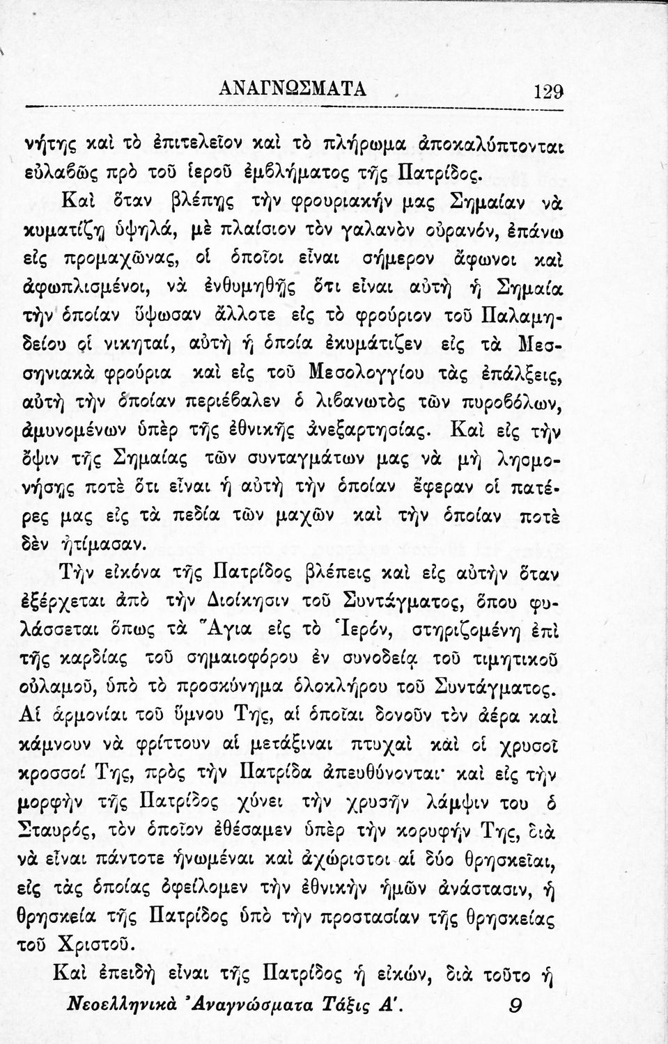 Νεοελληνικά αναγνώσματα διά τους μαθητάς της Α΄ τάξεως των Ελληνικών Σχολείων, Τόμος Α΄