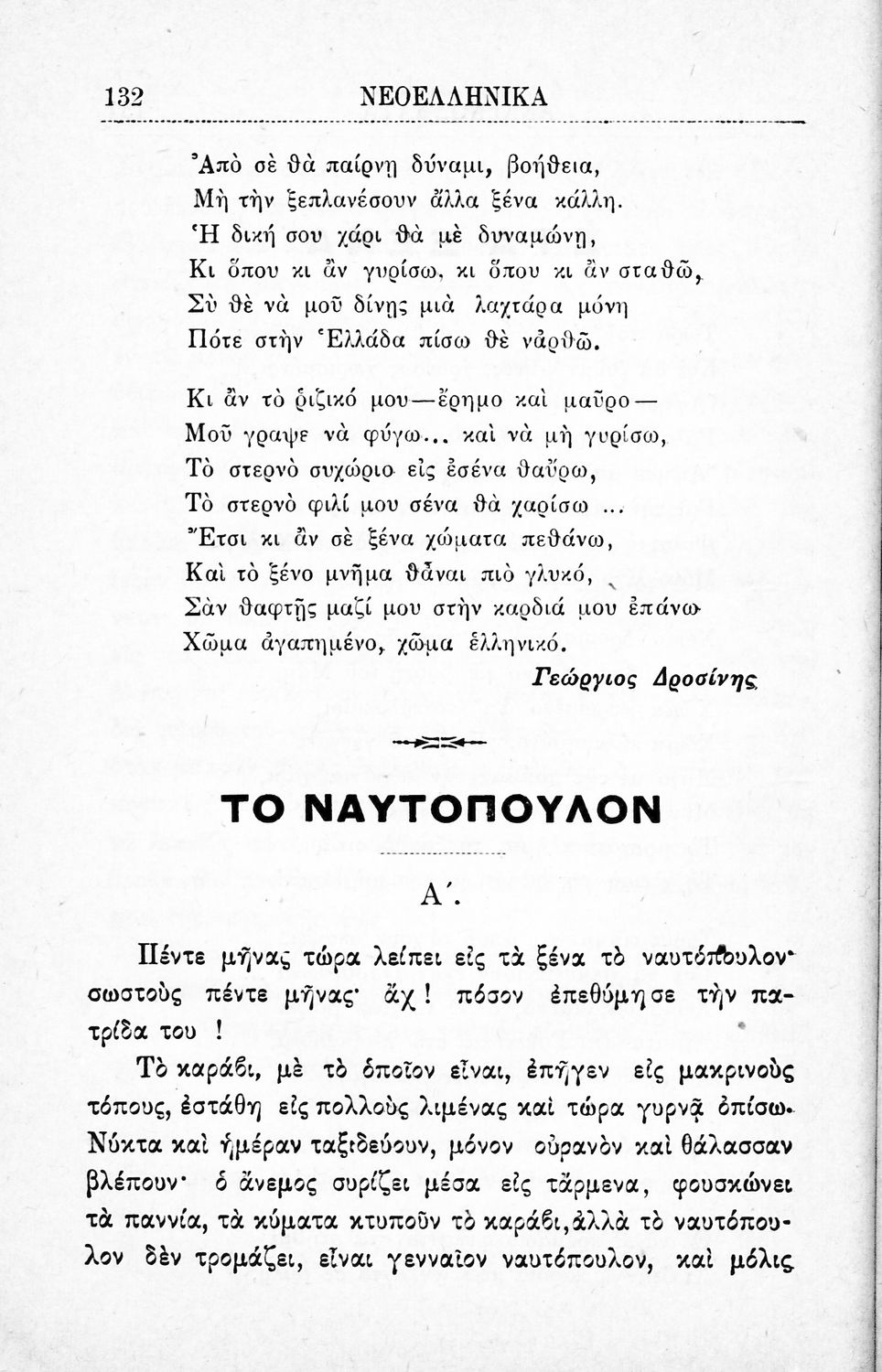 Σχετιζόμενοι όροι:  Δροσίνης, Παλαμάς, Σολωμός, Ζαμπέλιος