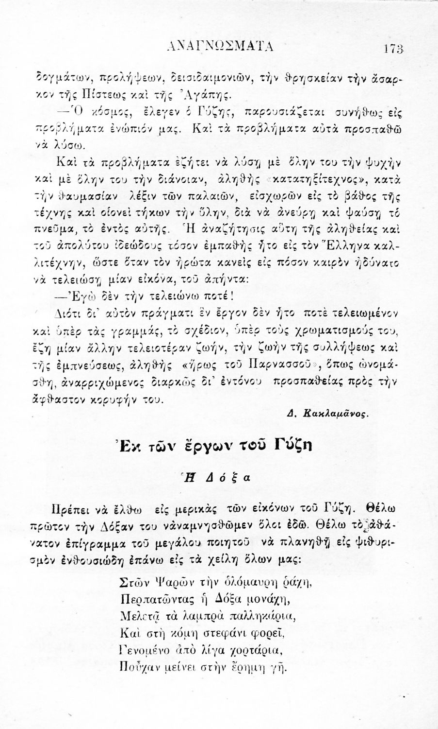 Σχετιζόμενοι όροι:  Παλαμάς, Δροσίνης, Σολωμός, Νιρβάνας