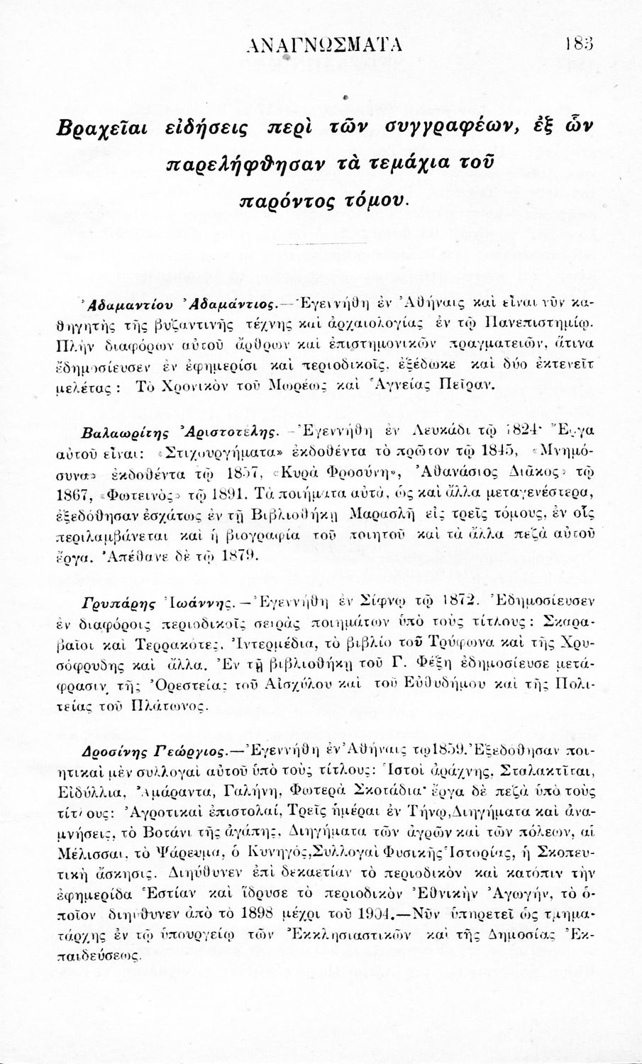 Εκδότης: Βιβλιοπωλείο της "Εστίας" Έτος έκδοσης: 1917 Τόπος έκδοσης: Αθήνα |