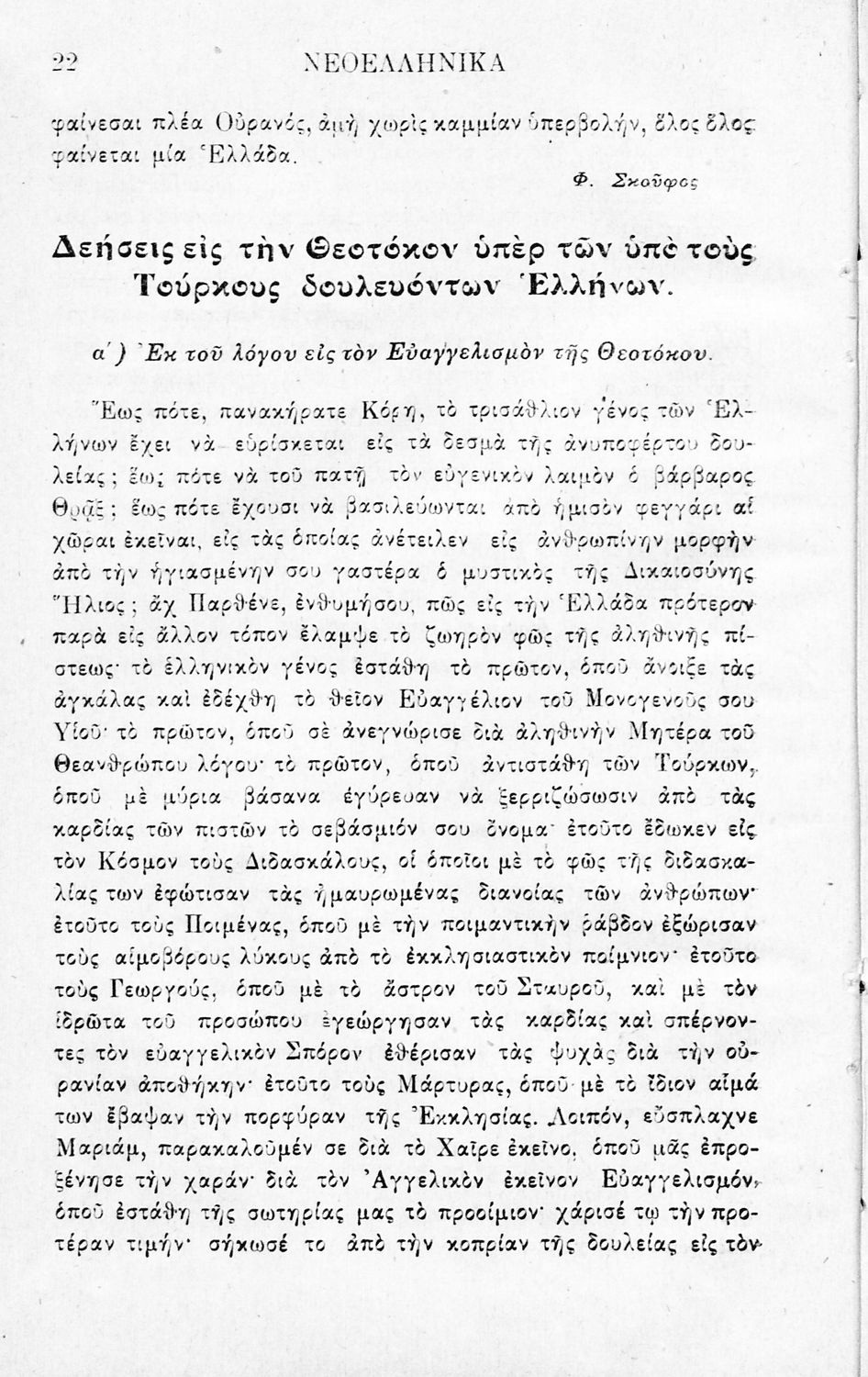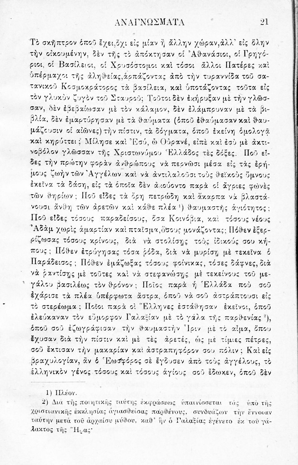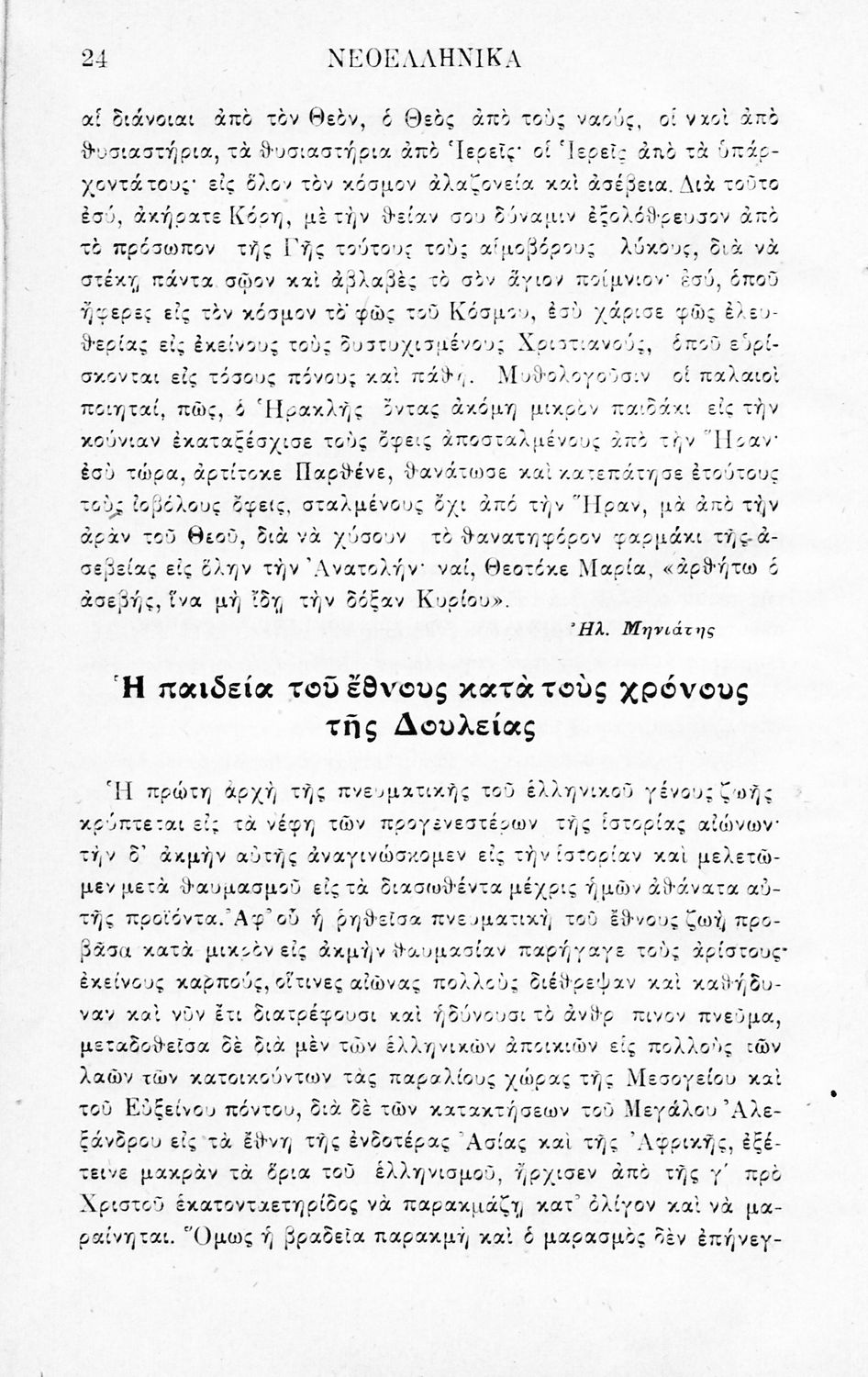 Σχολικό εγχειρίδιο Νέων Ελληνικών Γ΄ Γυμνασίου και Α' Αστικού Σχολείου που περιέχει πεζά και ποιήματα Ελλήνων συγγραφέων εμπνευσμένα από τη θρησκευτική και κοινωνική ζωή, την ελληνική μυθολογία, την αρχαία και