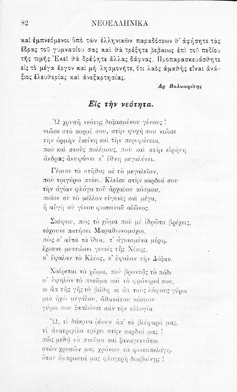 Σχολικό εγχειρίδιο Νέων Ελληνικών Β΄ Εξαταξίου Γυμνασίου που περιλαμβάνει που περιλαμβάνει ποιήματα και πεζά Ελλήνων συγγραφέων εμπνευσμένα από την αρχαία και σύγχρονη ελληνική ιστορία, την ελληνική φύση και ...