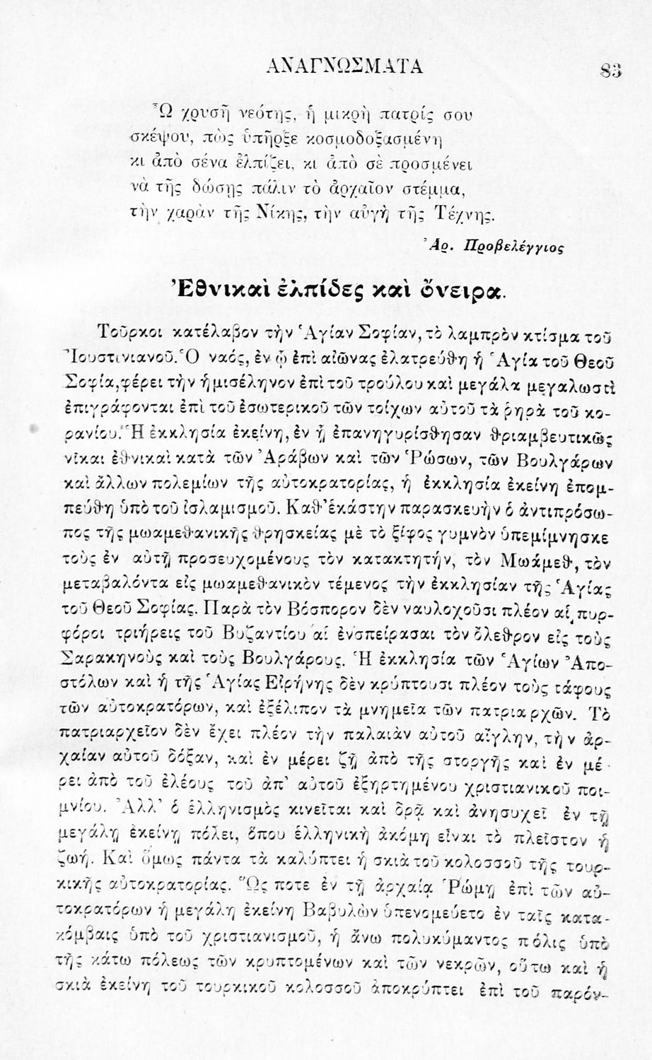 Σχολικό εγχειρίδιο Νέων Ελληνικών Γ΄ Γυμνασίου και Α' Αστικού Σχολείου που περιέχει πεζά και ποιήματα Ελλήνων συγγραφέων εμπνευσμένα από τη θρησκευτική και κοινωνική ζωή, την ελληνική μυθολογία, την αρχαία και