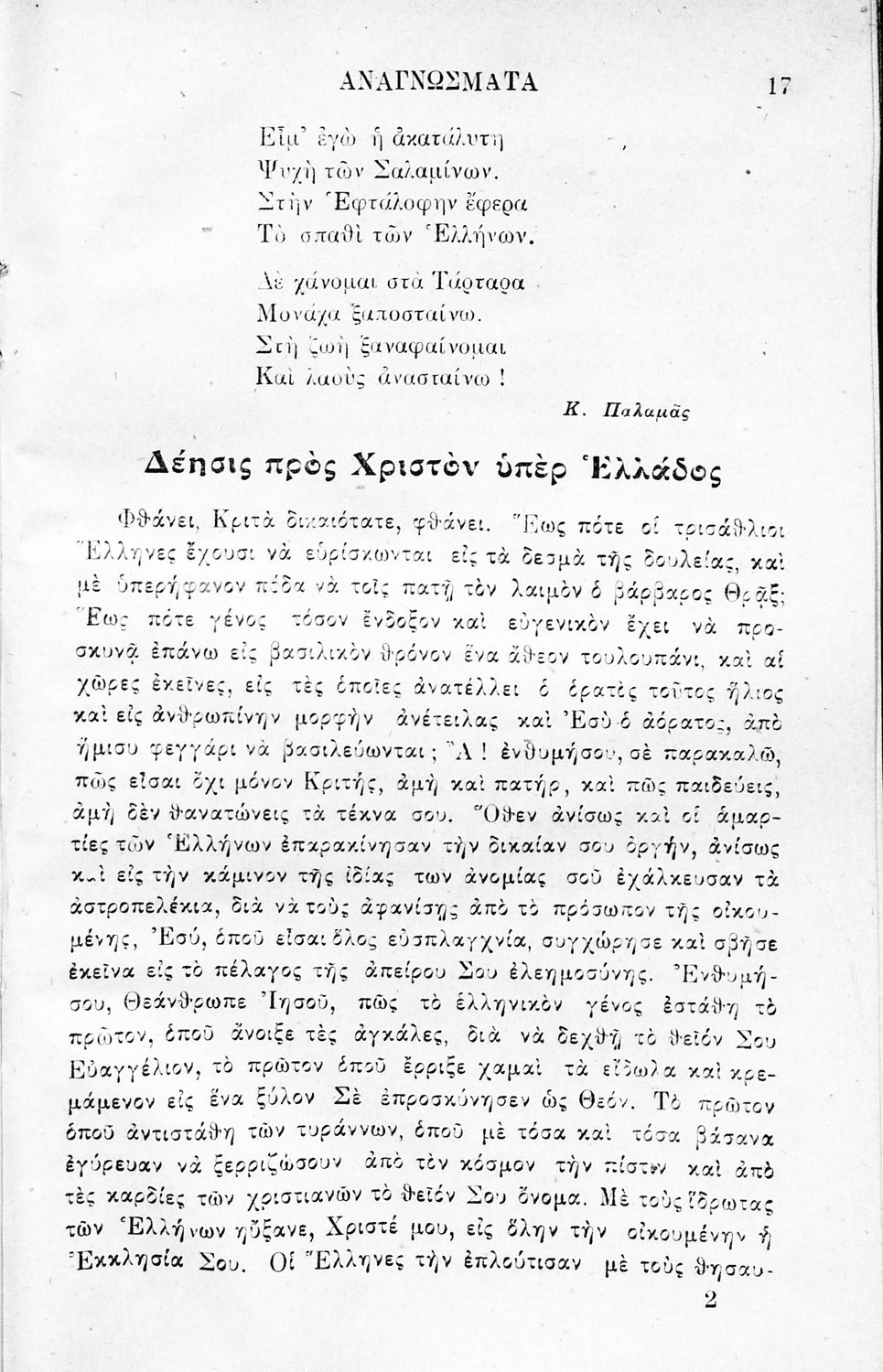 Σχετιζόμενοι όροι:  Παπαντωνίου, Πολέμης, Παλαμάς, Βηλαράς
