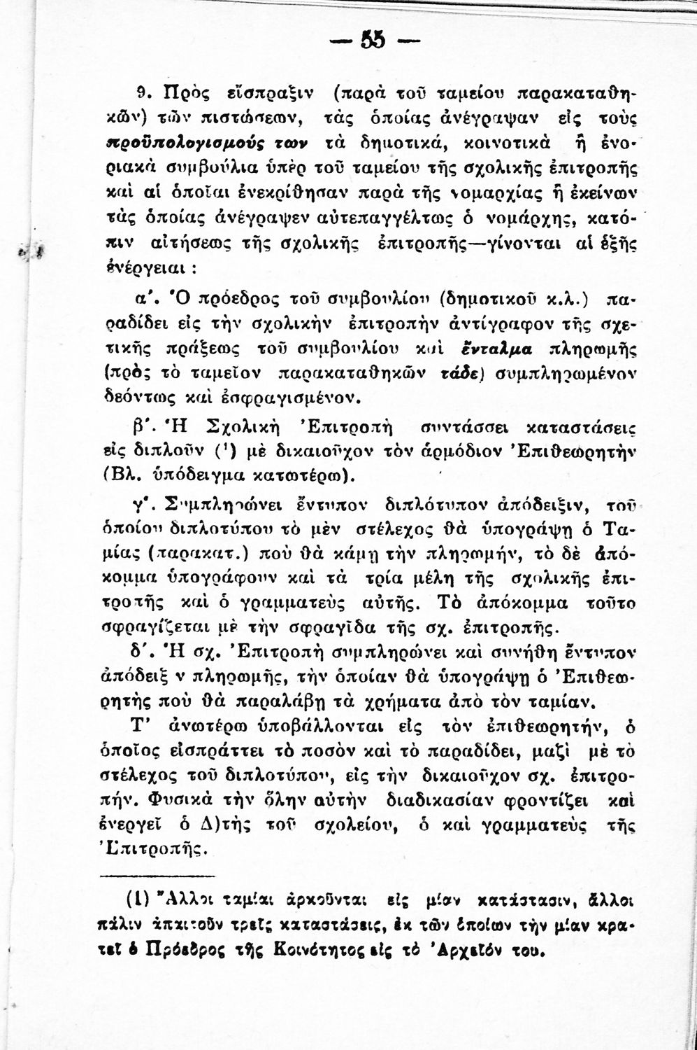 Το σύγγραμμα αποτελεί έναν Λογιστικό οδηγό. Ο οδηγός βασίστηκε στο νόμο υπ’ αριθμ' 452 «περί συστάσεως σχολικών επιτροπών». Ο πρώτος συγγραφέας είναι λογιστής ενώ ο δεύτερος δικηγόρος.
