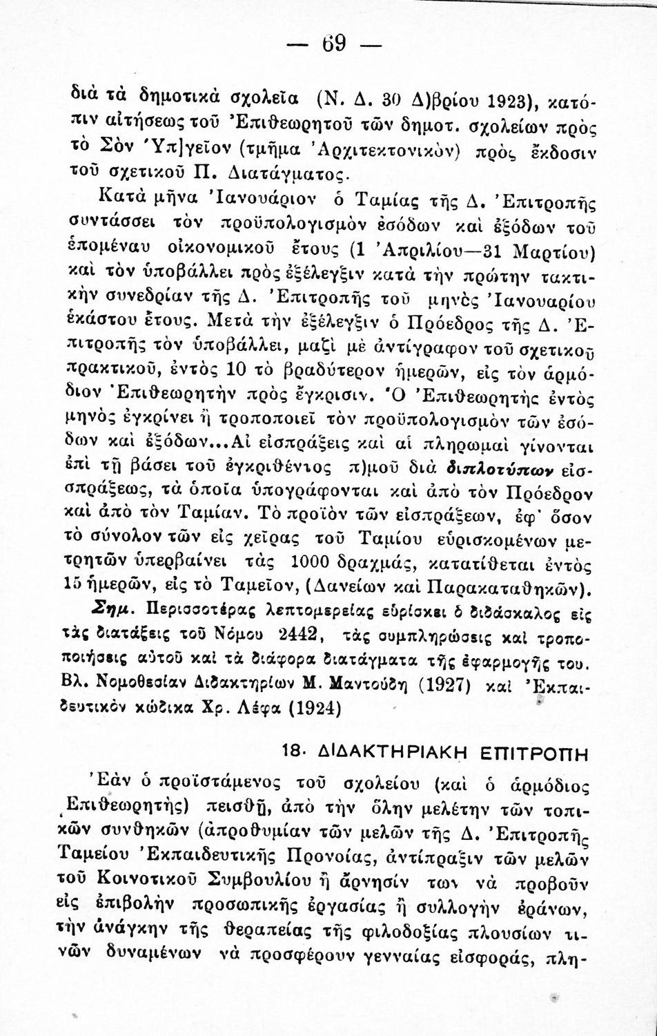 Το σύγγραμμα αποτελεί έναν Λογιστικό οδηγό. Ο οδηγός βασίστηκε στο νόμο υπ’ αριθμ' 452 «περί συστάσεως σχολικών επιτροπών». Ο πρώτος συγγραφέας είναι λογιστής ενώ ο δεύτερος δικηγόρος.