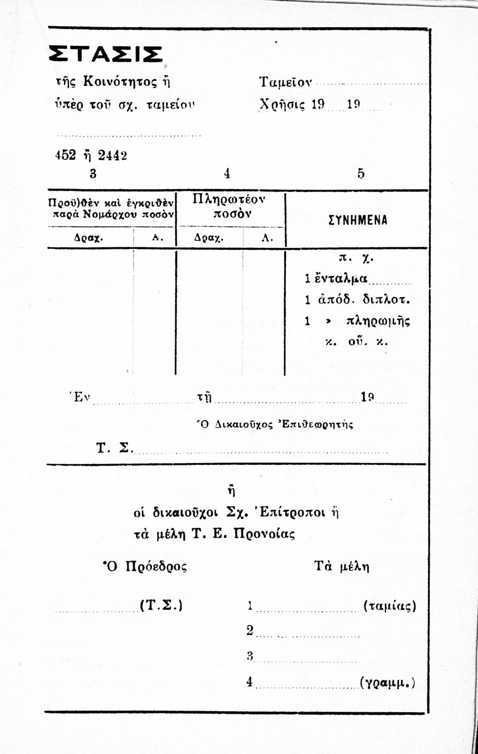 Το σύγγραμμα αποτελεί έναν Λογιστικό οδηγό. Ο οδηγός βασίστηκε στο νόμο υπ’ αριθμ' 452 «περί συστάσεως σχολικών επιτροπών». Ο πρώτος συγγραφέας είναι λογιστής ενώ ο δεύτερος δικηγόρος.