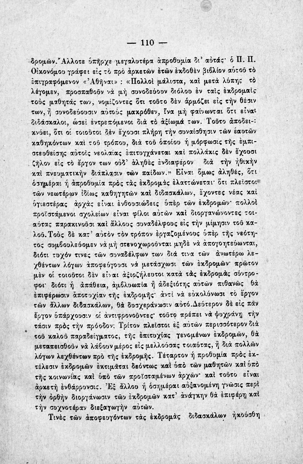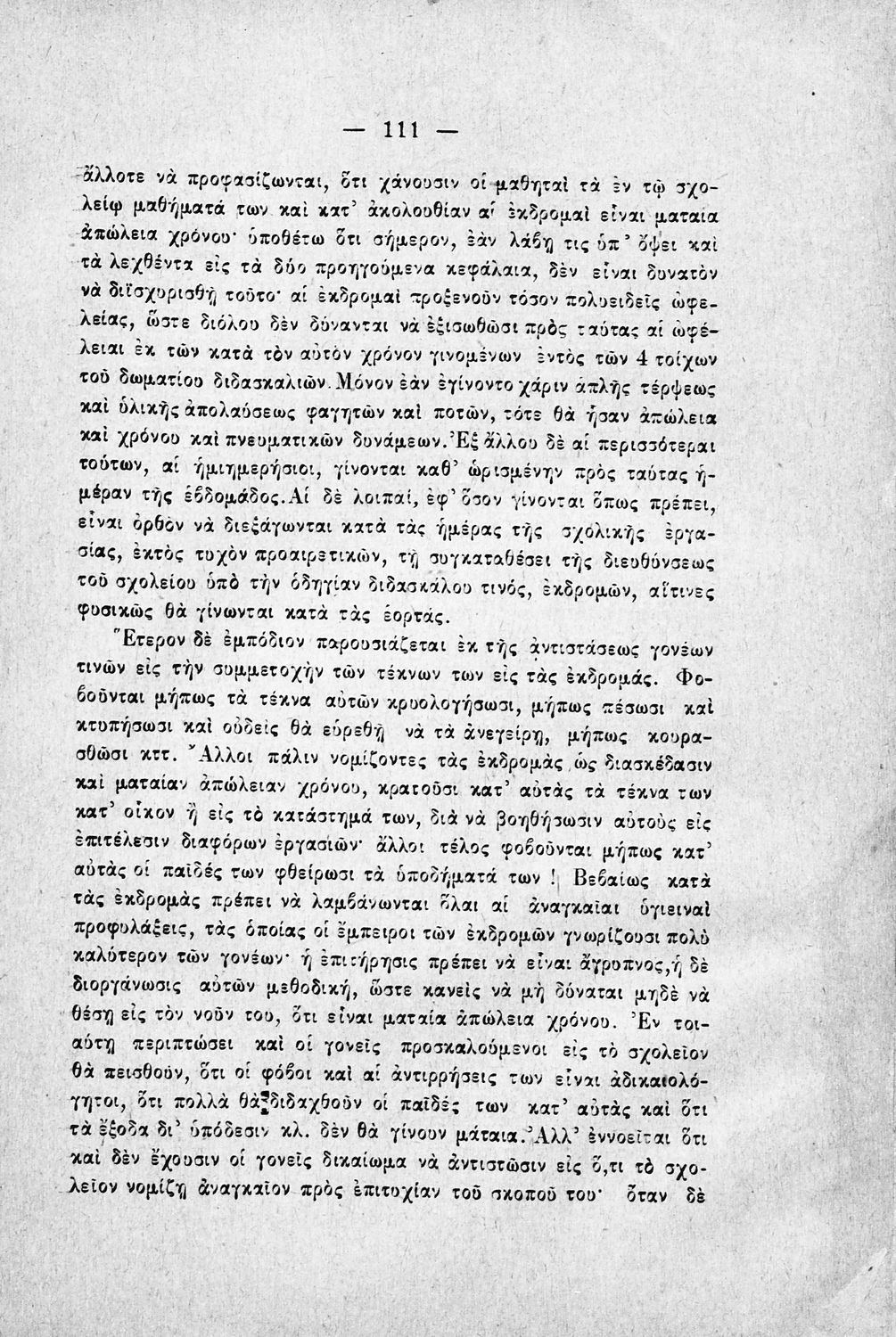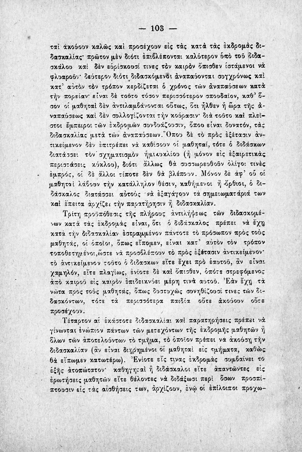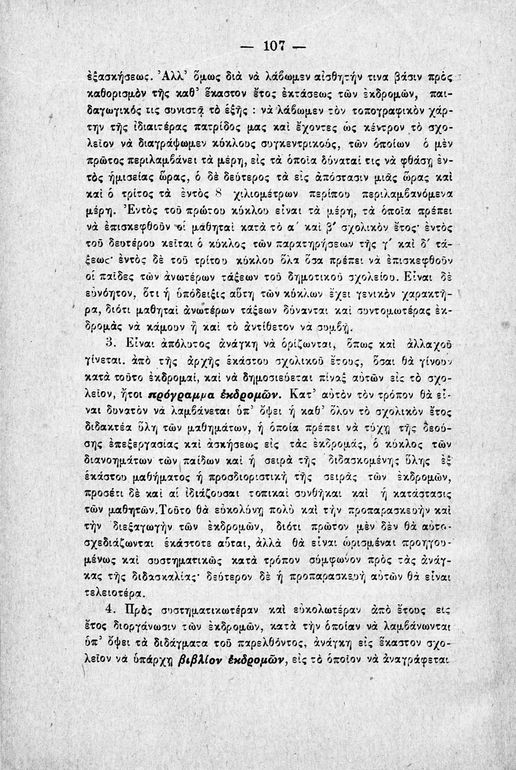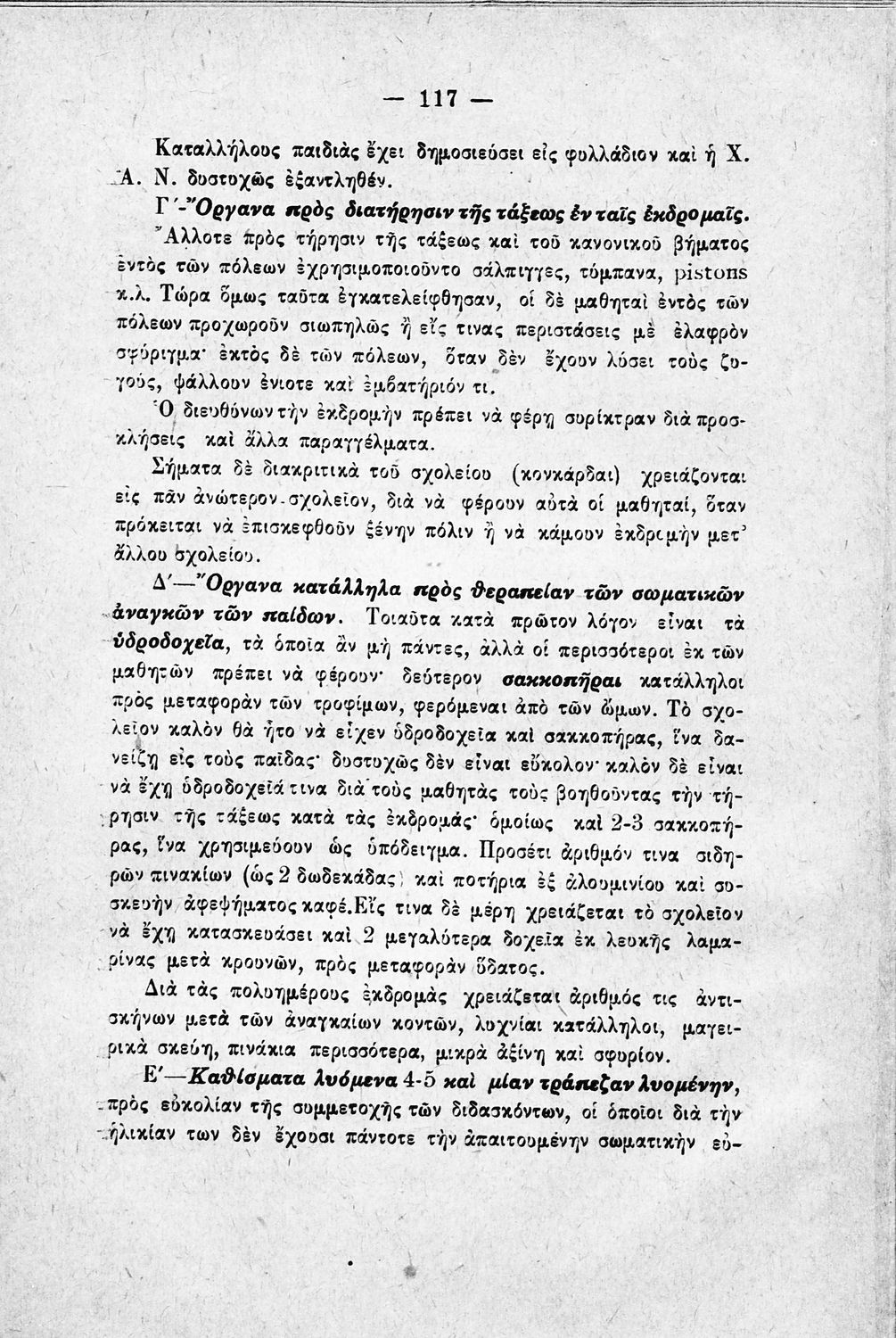 Παρουσίαση περιεχομένου: Παιδαγωγικό βοήθημα που αναφέρεται στην οργάνωση των σχολικών εκδρομών όλων των Δημοτικών, Γυμνασίων, Παρθεναγωγείων και εμπορικών σχολών. Η πρώτη έκδοση έγινε το 1917. Ο συγγραφέας ήταν Διδάκτορας Φιλολογίας και Γυμνασιάρχης στην Αθήνα.