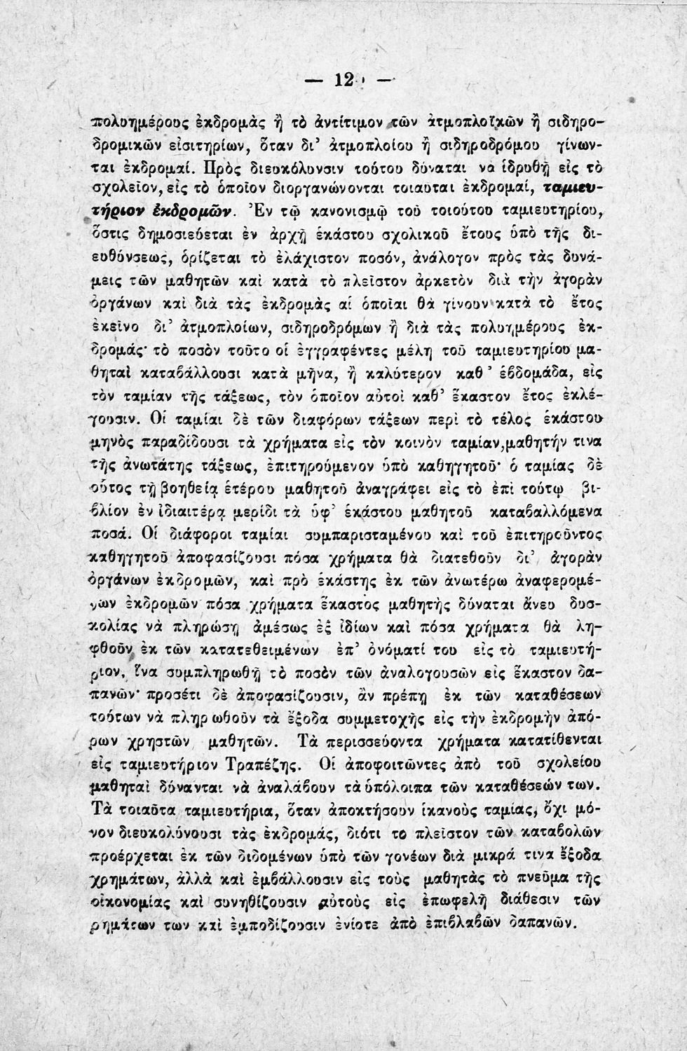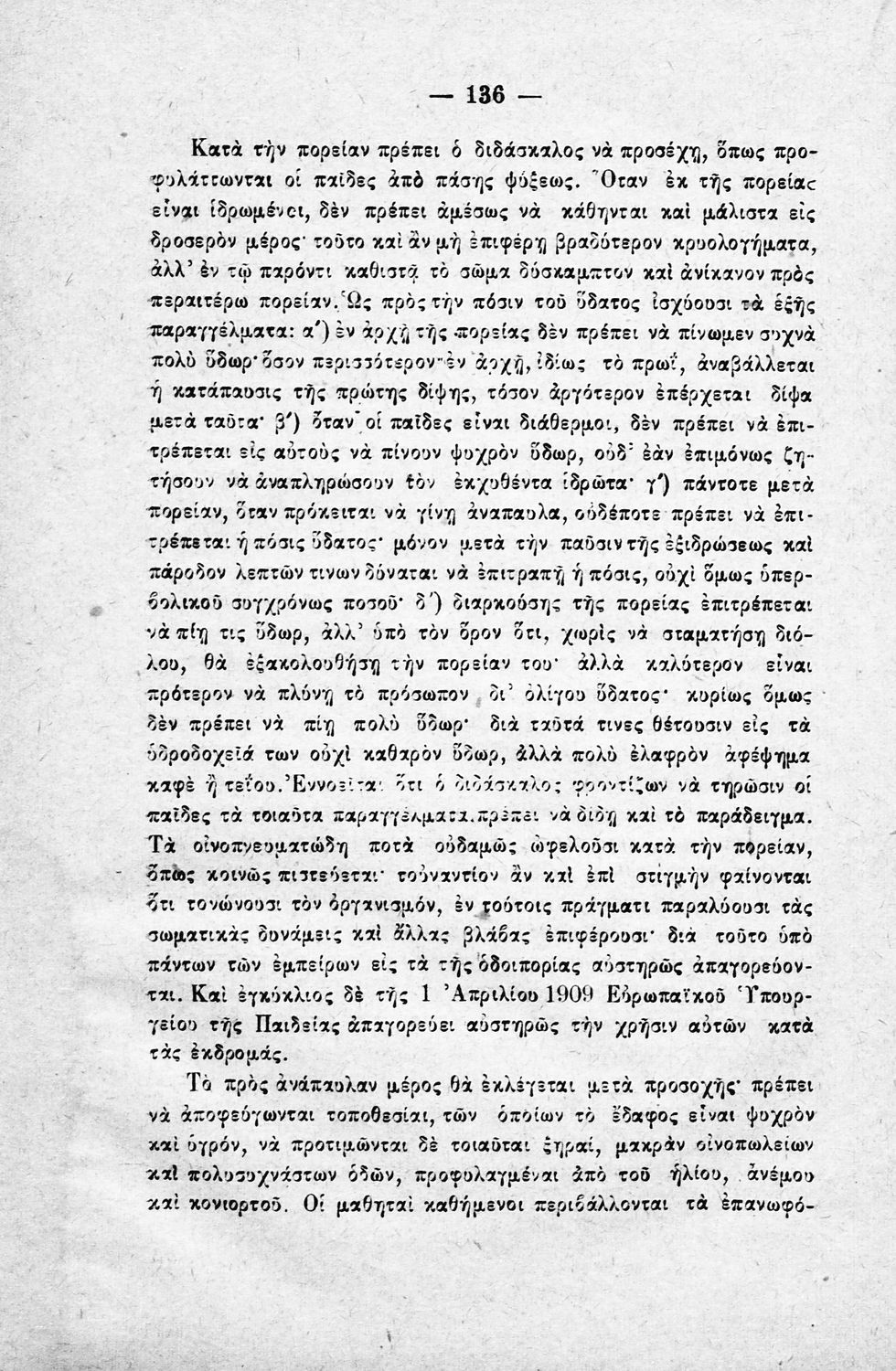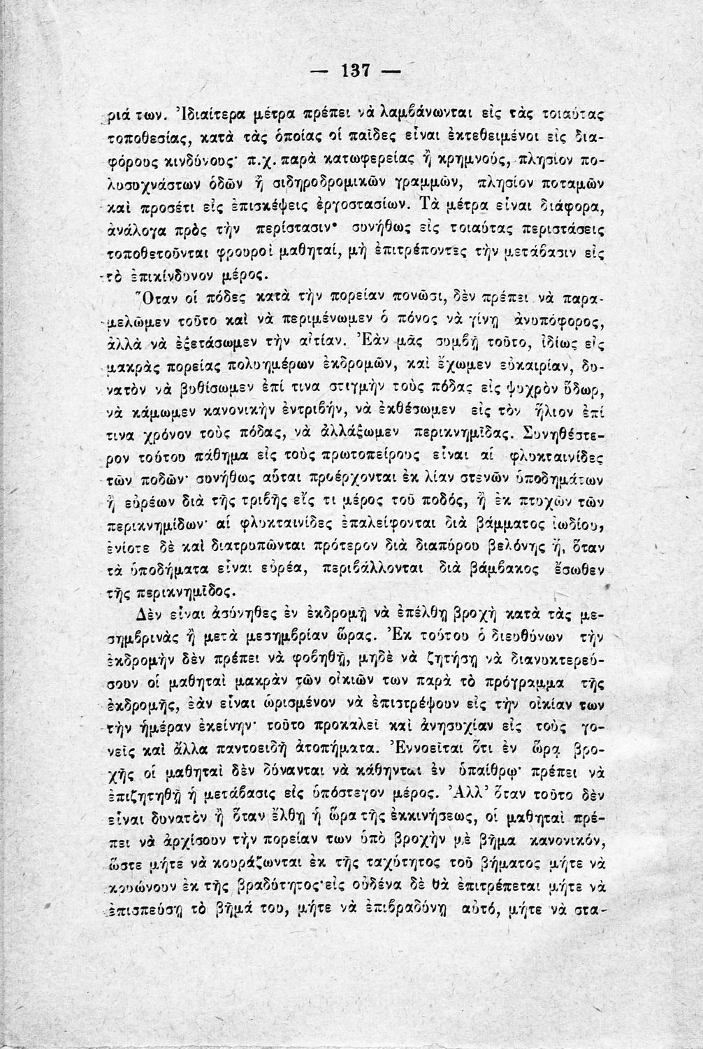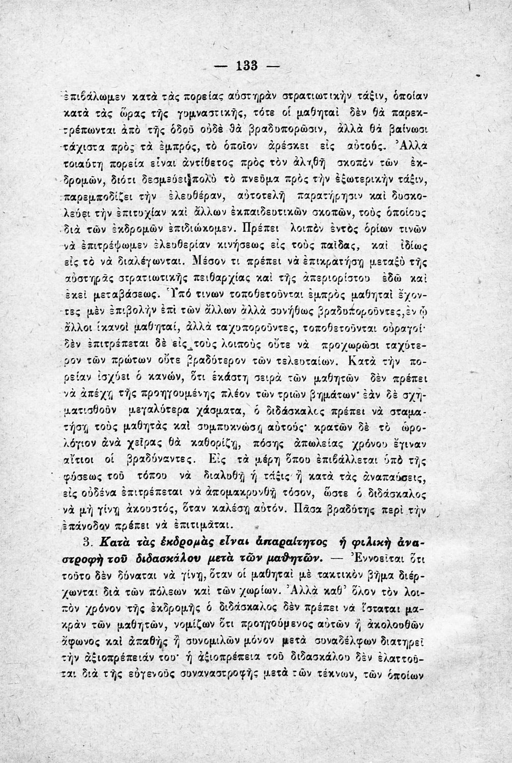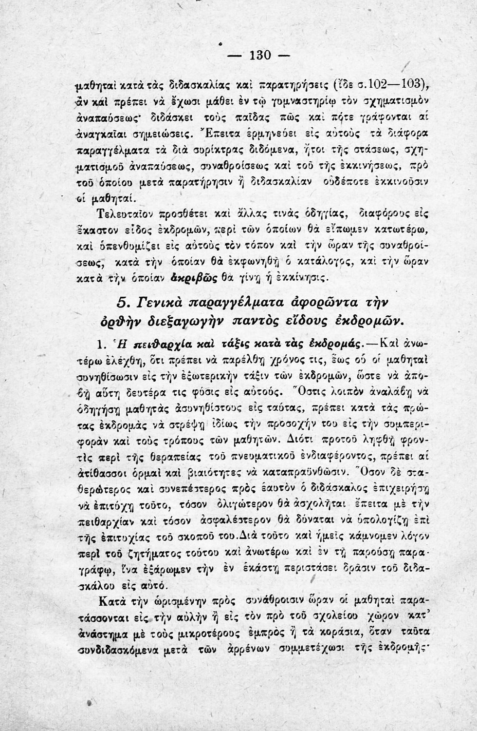 Παρουσίαση περιεχομένου: Παιδαγωγικό βοήθημα που αναφέρεται στην οργάνωση των σχολικών εκδρομών όλων των Δημοτικών, Γυμνασίων, Παρθεναγωγείων και εμπορικών σχολών. Η πρώτη έκδοση έγινε το 1917. Ο συγγραφέας ήταν Διδάκτορας Φιλολογίας και Γυμνασιάρχης στην Αθήνα.