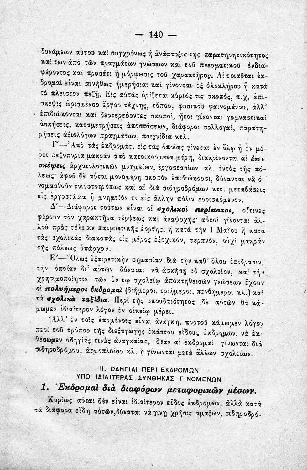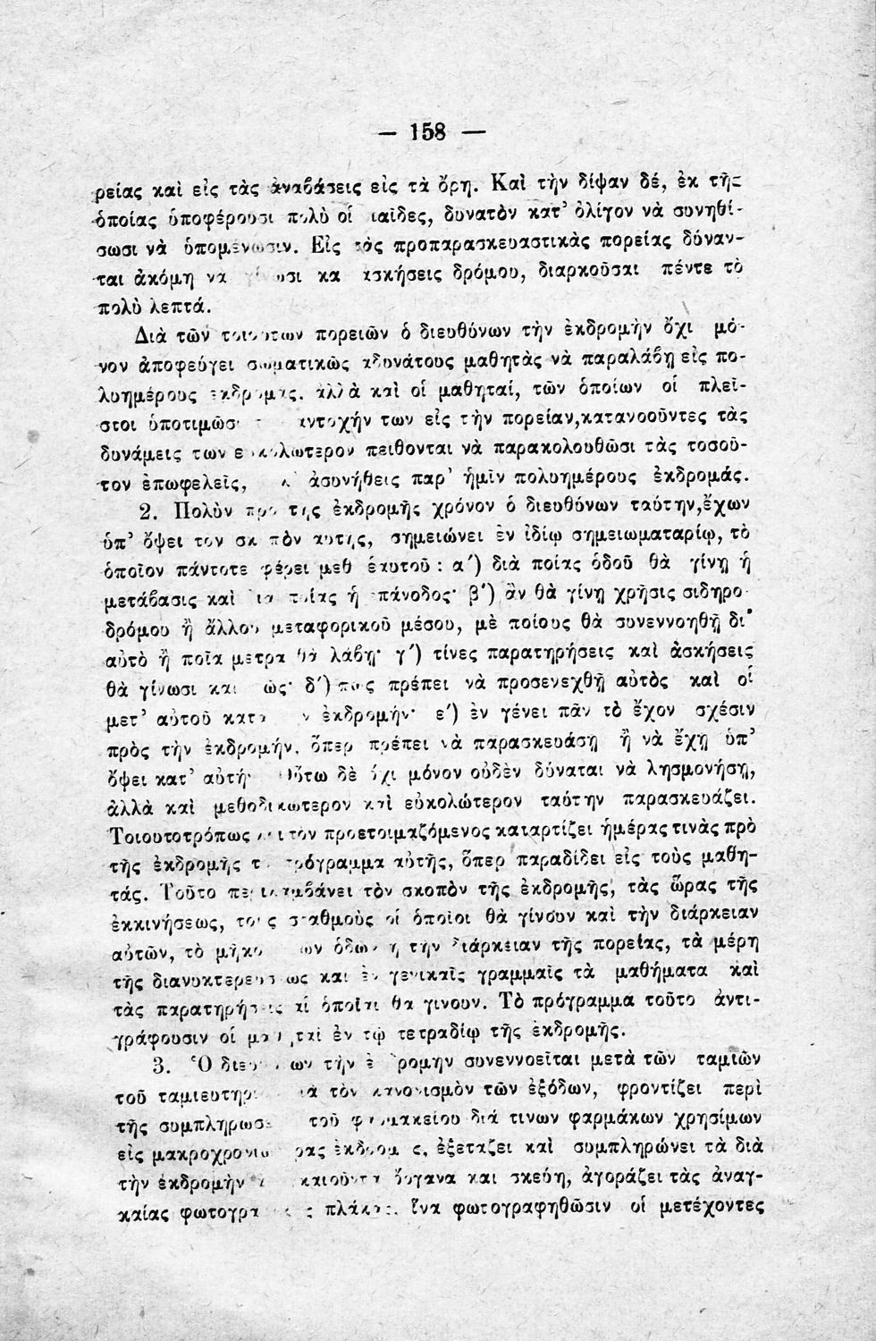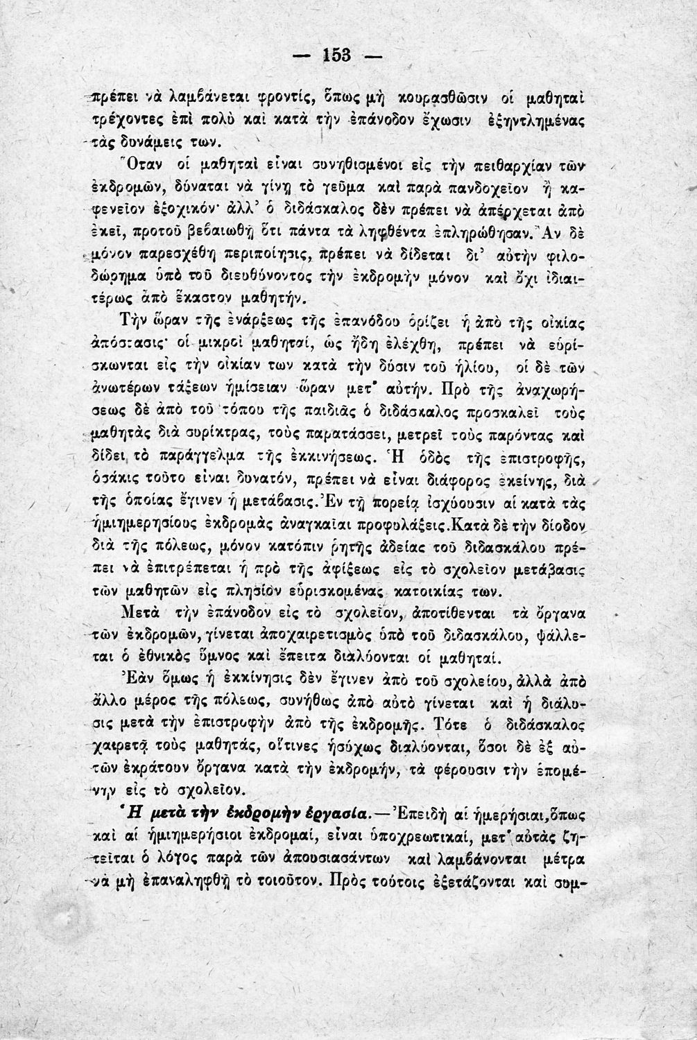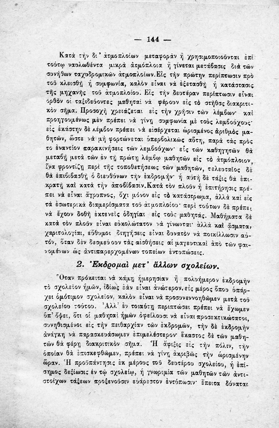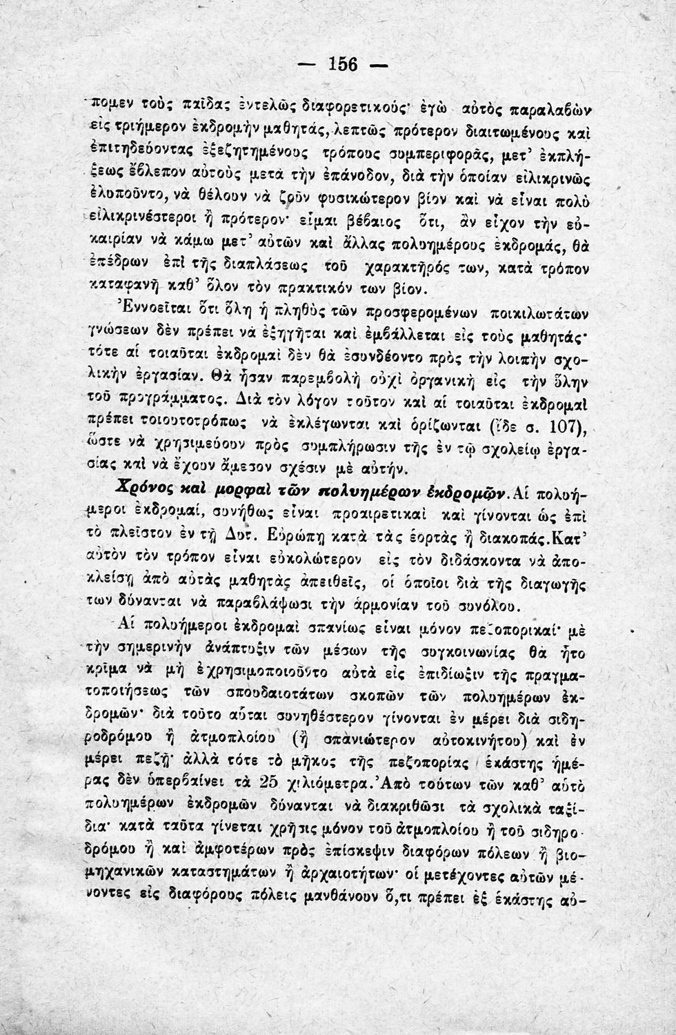 Παρουσίαση περιεχομένου: Παιδαγωγικό βοήθημα που αναφέρεται στην οργάνωση των σχολικών εκδρομών όλων των Δημοτικών, Γυμνασίων, Παρθεναγωγείων και εμπορικών σχολών. Η πρώτη έκδοση έγινε το 1917. Ο συγγραφέας ήταν Διδάκτορας Φιλολογίας και Γυμνασιάρχης στην Αθήνα.
