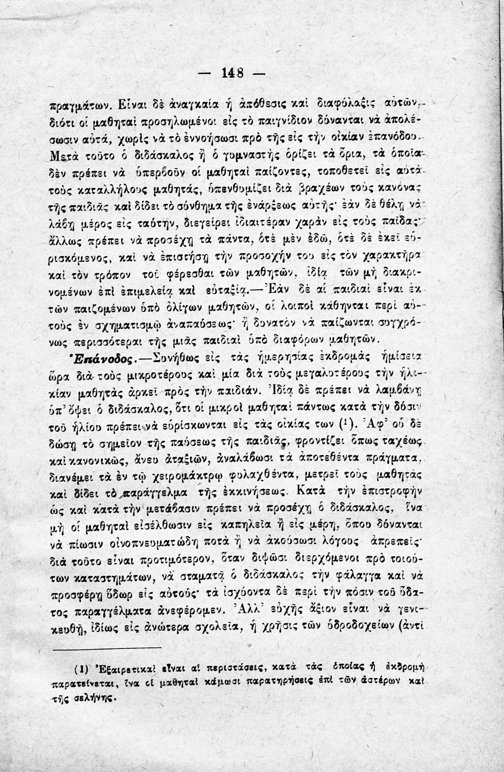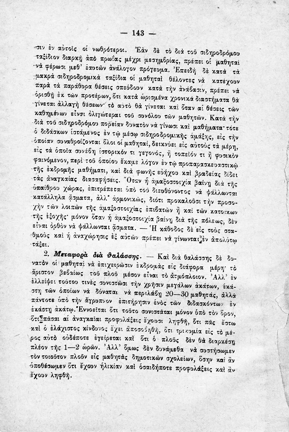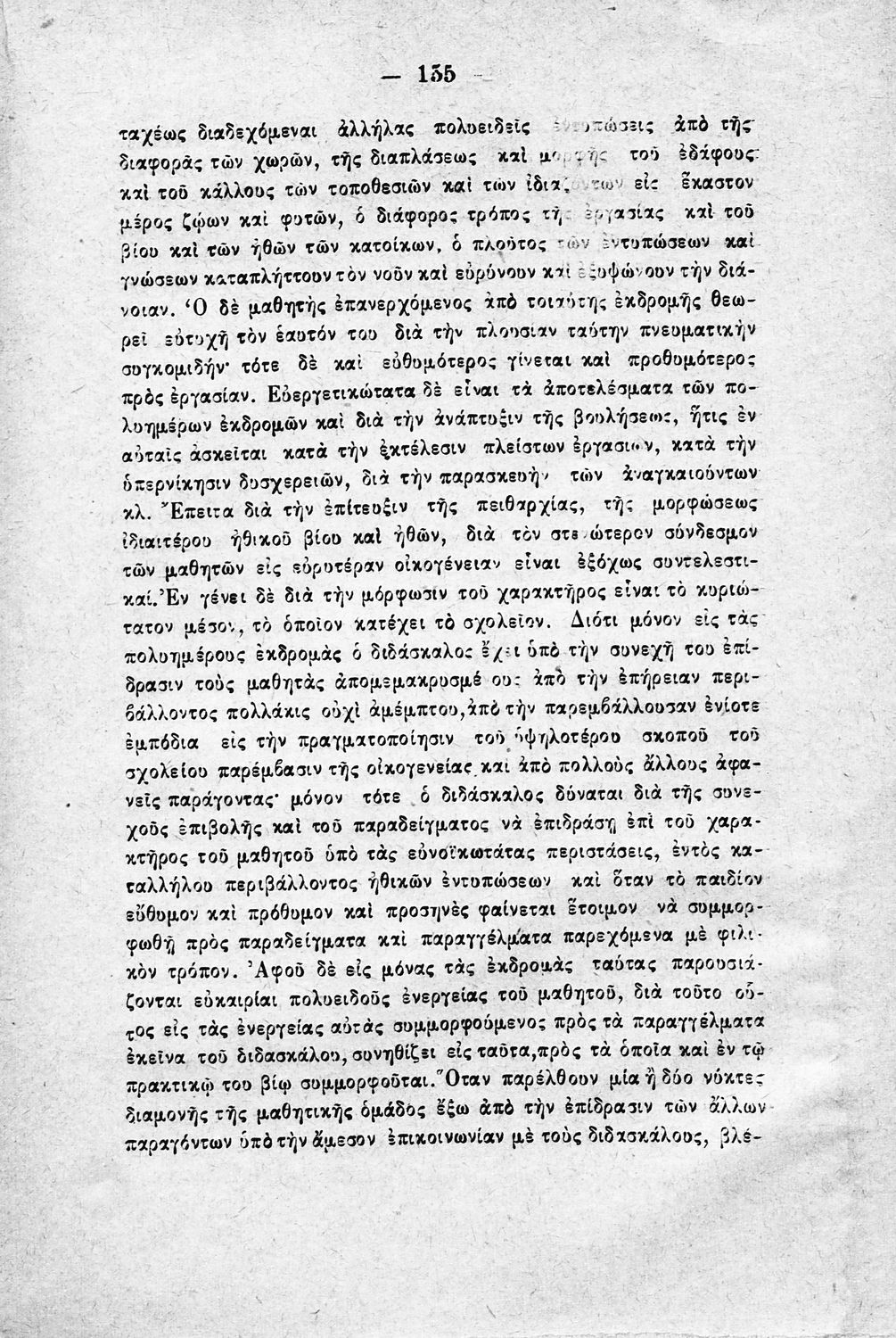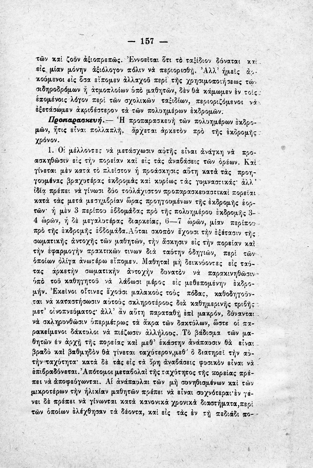 Παρουσίαση περιεχομένου: Παιδαγωγικό βοήθημα που αναφέρεται στην οργάνωση των σχολικών εκδρομών όλων των Δημοτικών, Γυμνασίων, Παρθεναγωγείων και εμπορικών σχολών. Η πρώτη έκδοση έγινε το 1917. Ο συγγραφέας ήταν Διδάκτορας Φιλολογίας και Γυμνασιάρχης στην Αθήνα.