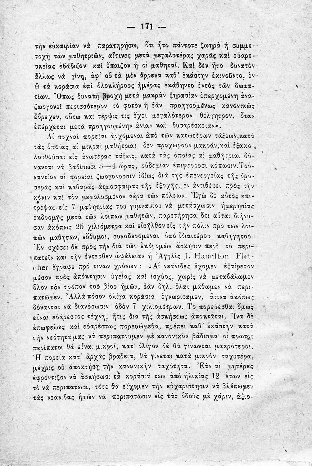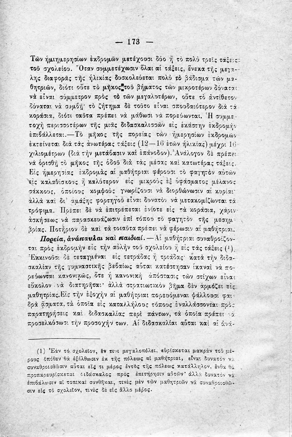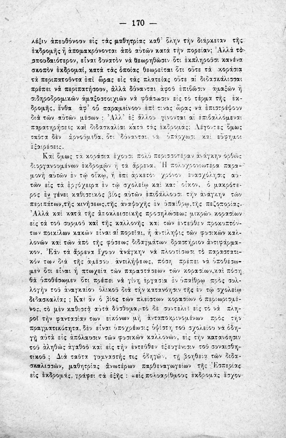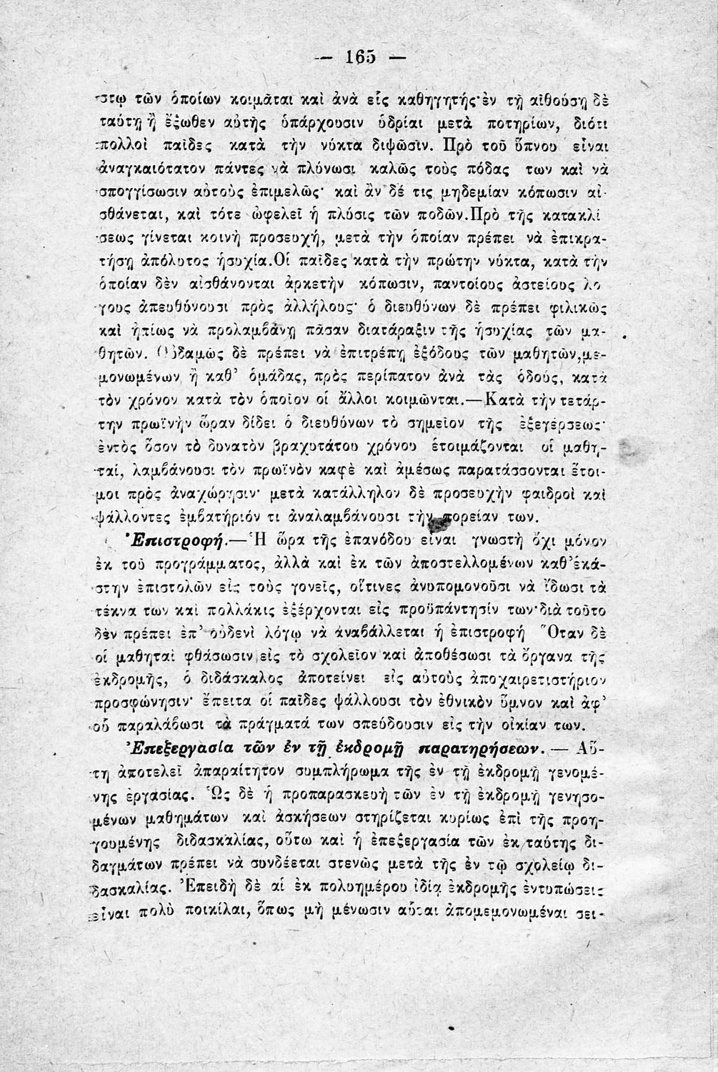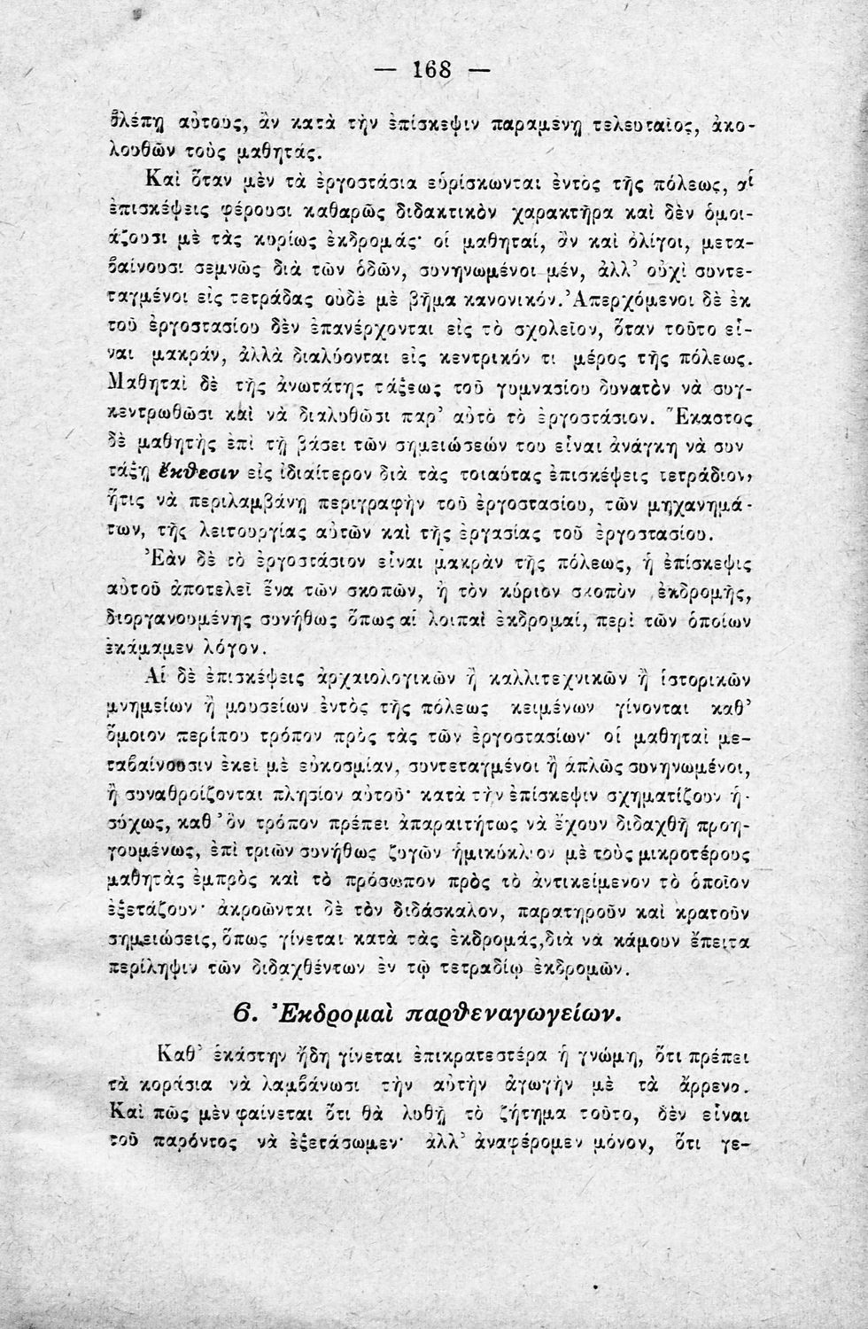 Παρουσίαση περιεχομένου: Παιδαγωγικό βοήθημα που αναφέρεται στην οργάνωση των σχολικών εκδρομών όλων των Δημοτικών, Γυμνασίων, Παρθεναγωγείων και εμπορικών σχολών. Η πρώτη έκδοση έγινε το 1917. Ο συγγραφέας ήταν Διδάκτορας Φιλολογίας και Γυμνασιάρχης στην Αθήνα.