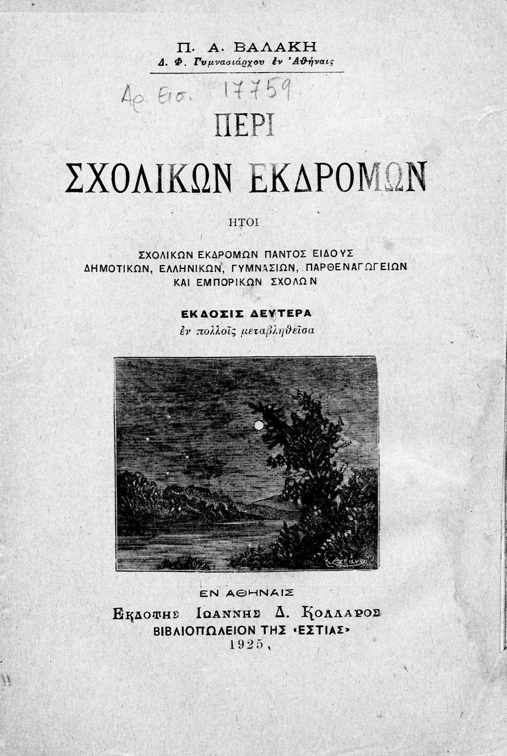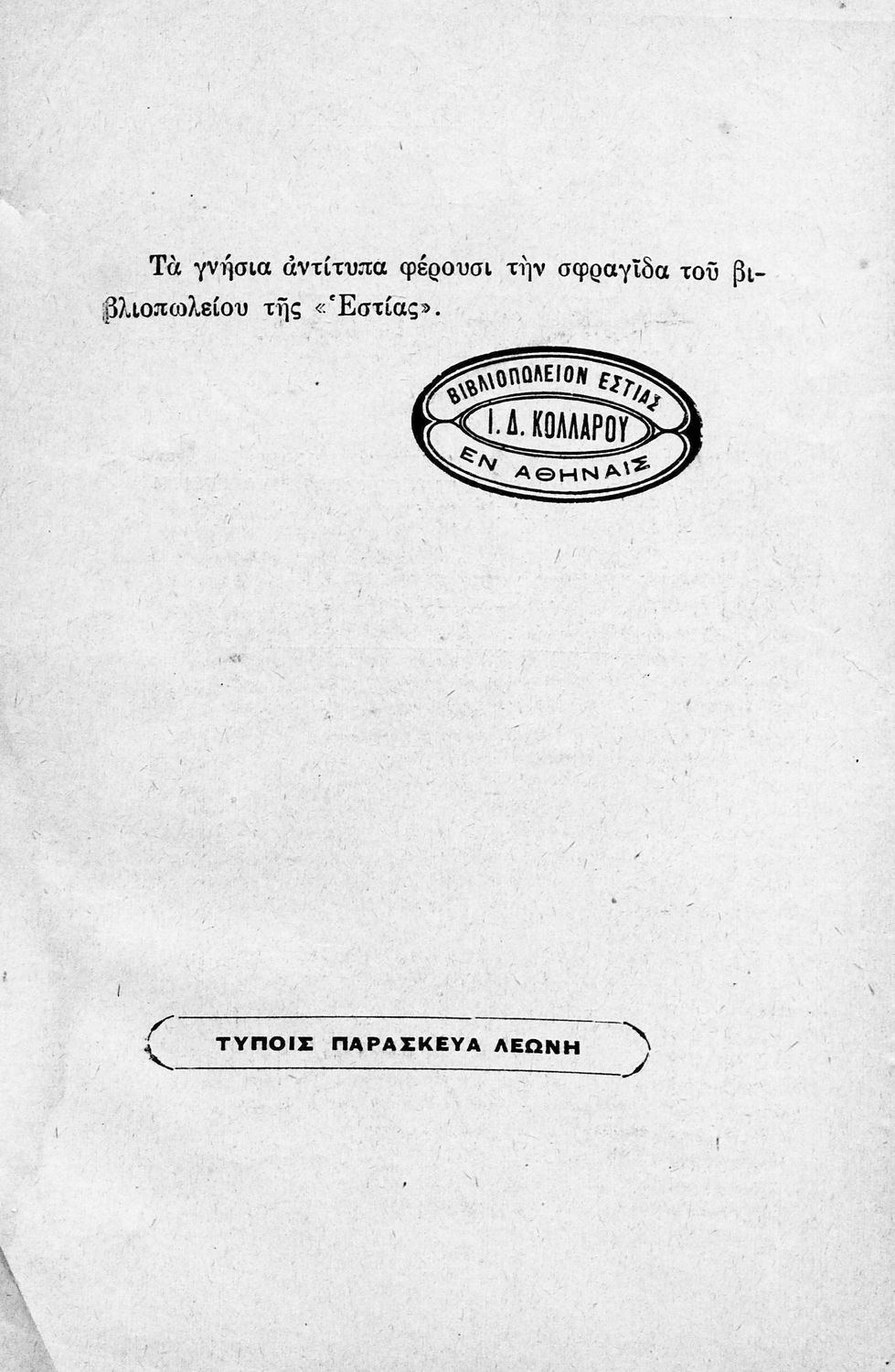 Εκδότης: Ιωάννης Δ. Κολλάρος, Βιβλιοπωλείο της "Εστίας" Έτος έκδοσης: 1925 Τόπος έκδοσης: Αθήνα Έκδοση: 2η |