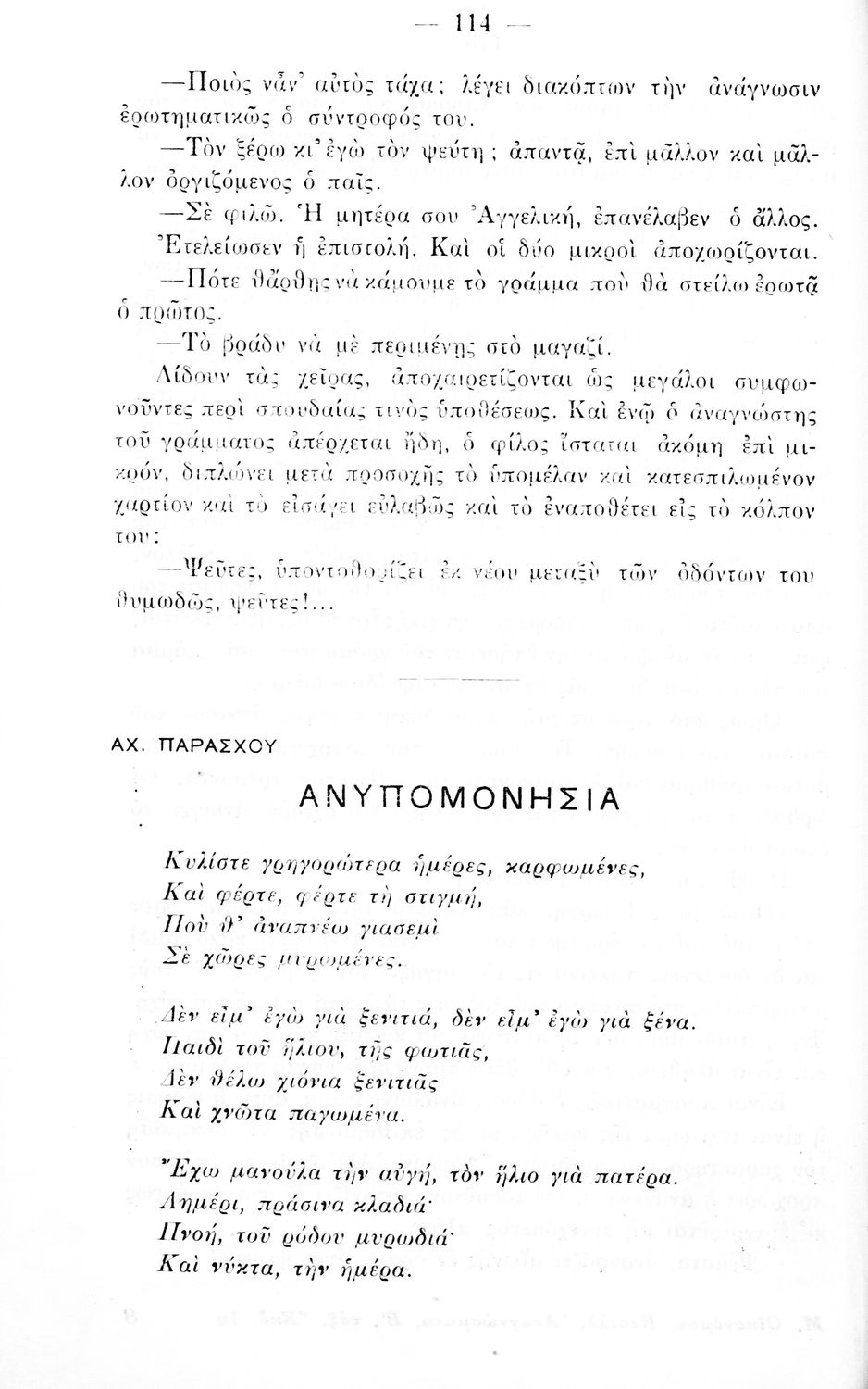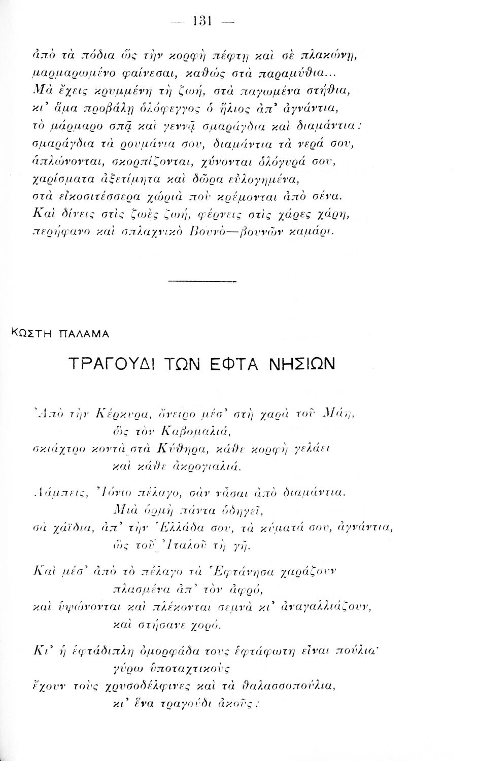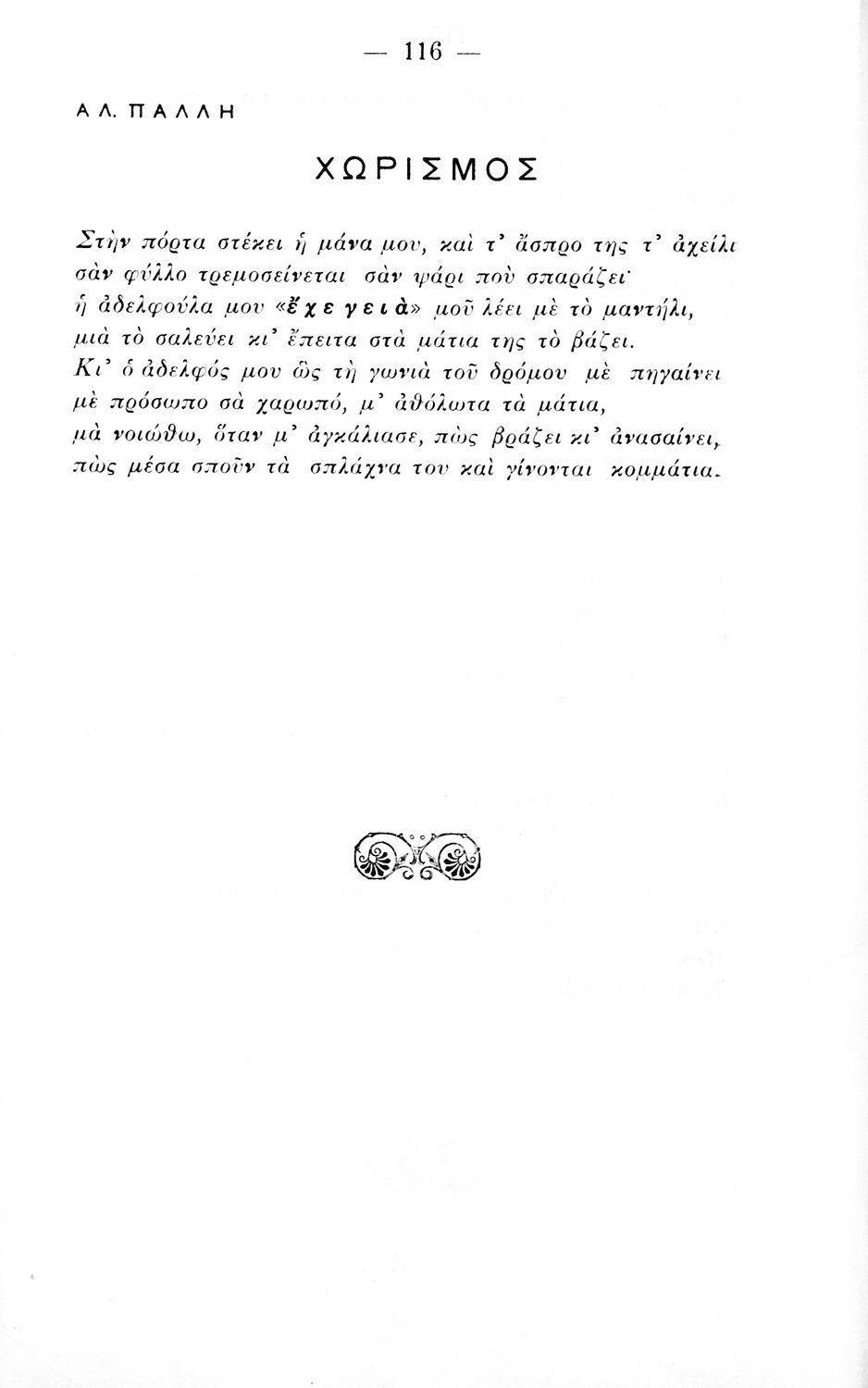 Σχετιζόμενοι όροι:  Παπαντωνίου, Πολέμης, Παλαμάς, Βηλαράς
