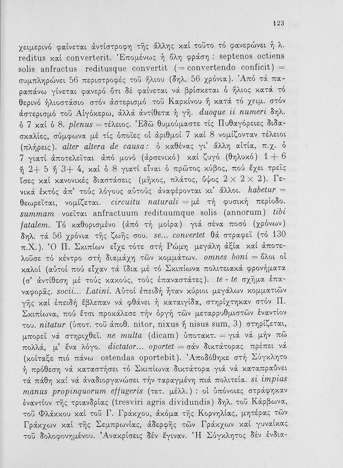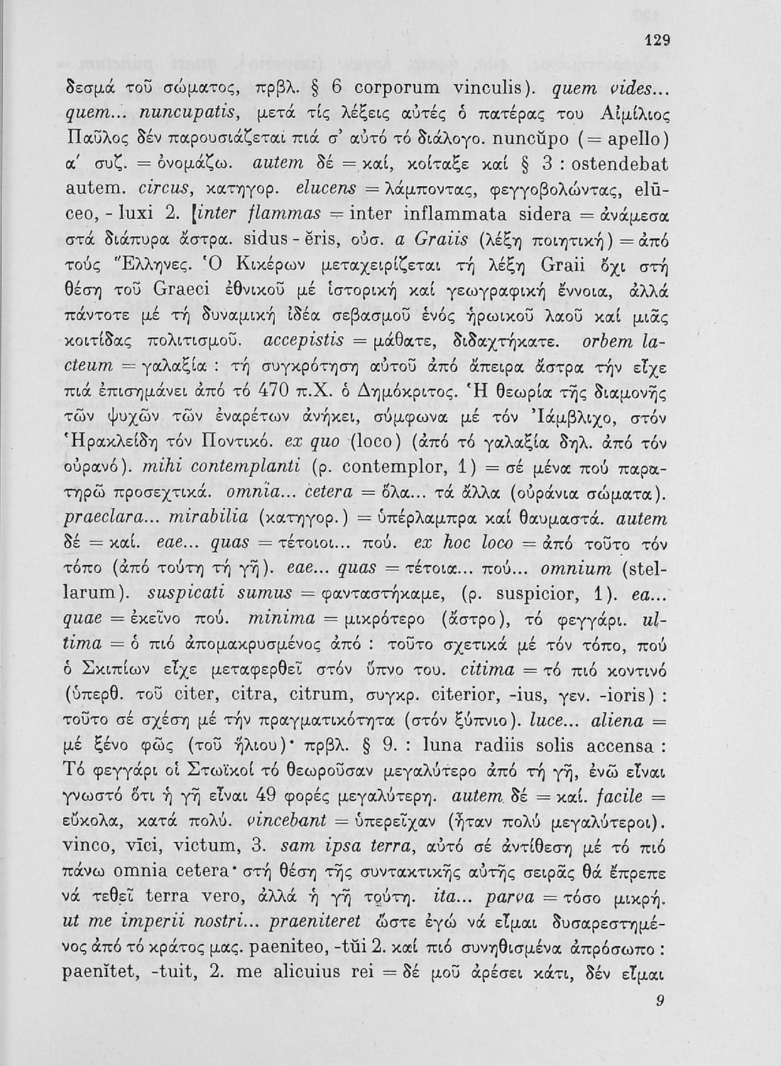 Πόπλιος Βιργίλιος Μάρων (P. Vergilius Maro), Μάρκος Τύλλιος Κικέρωνας (Marcus Tullius Ciceco), Κουίντος Οράτιος Φλάκκος (Q. Horati Flacci), Φωκίωνας Β. Βουσβούνης, Ερρίκος Σκάσσης, Ζαφείριος Ν. Φραγκίσκος (σχόλια)