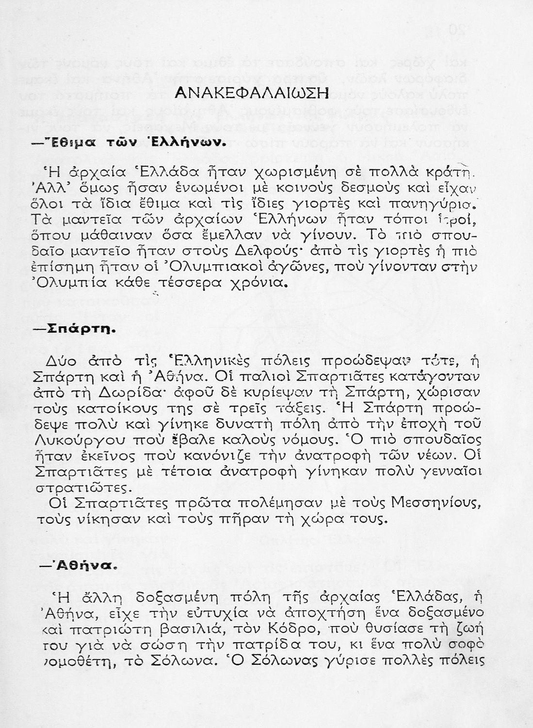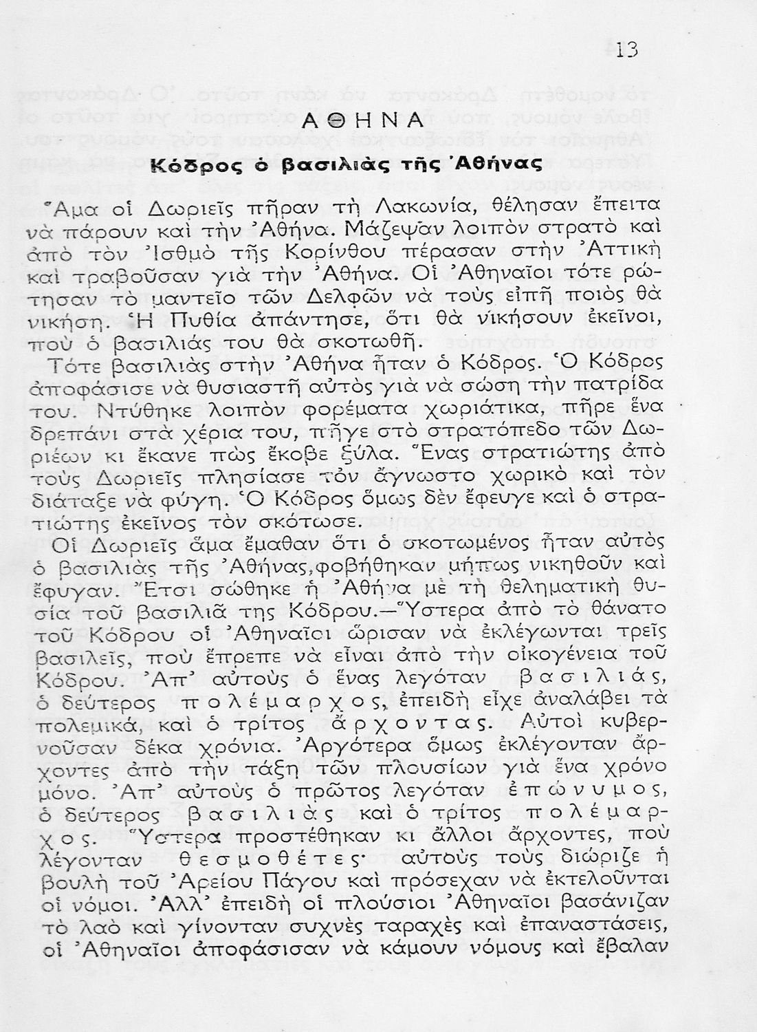 Κωδικός αναγνώρισης: 01-17768 Τίτλος: Ιστορία της αρχαίας Ελλάδας. Για την Δ΄ Τάξη των Δημοτικών Σχολείων Συγγραφέας: Φωκίων Φωτόπουλος Μέγεθος και υπόστρωμα: Μαθητικό βοήθημα, σκληρό εξώφυλλο, 63 σελίδες. Σκίτσα και χάρτες (ασπρόμαυρα). |