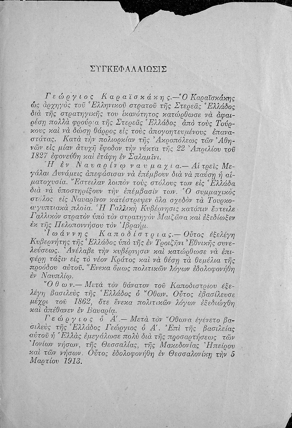Κωδικός αναγνώρισης: 01-17770 Τίτλος: Ιστορία της Νεωτέρας Ελλάδος Περιέχουσα την ύλην του προγράμματος της ΣΤ΄ τάξεως των Δημοτικών Σχολείων Συγγραφέας: Φωκίων Φωτόπουλος Μέγεθος και υπόστρωμα: Μαθητικό βοήθημα, μαλακό εξώφυλλο, 72 σελίδες. Σκίτσα και εικόνες (ασπρόμαυρα). |
