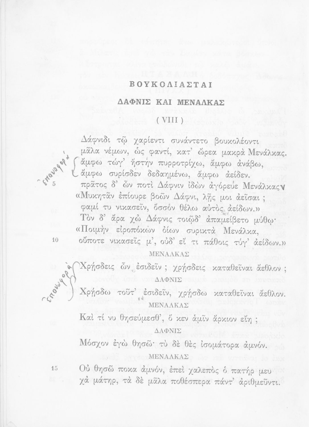 Σχολικό εγχειρίδιο Αρχαίων Ελληνικών τα Ειδύλλια του Θεόκριτου, μετάφραση, ερμηνευτικά και πραγματολογικά σχόλια και λεξιλογικές παρατηρήσεις.