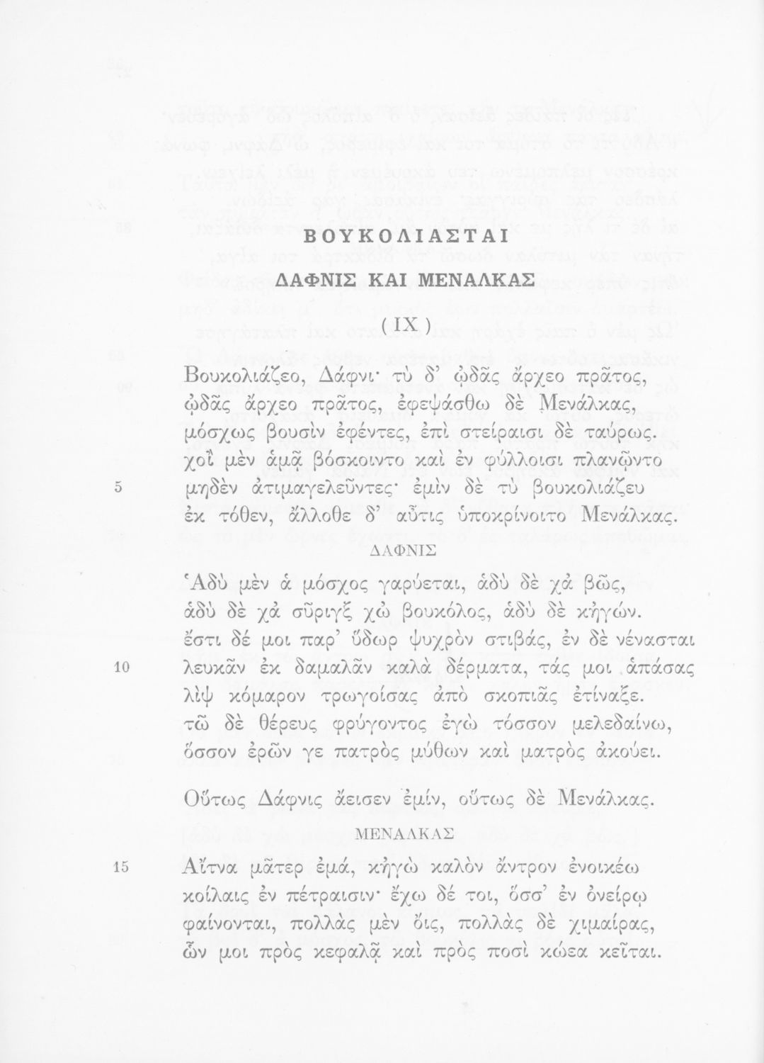 Σχολικό εγχειρίδιο Αρχαίων Ελληνικών Δ΄ Γυμνασίου που περιλαμβάνει τα Ειδύλλλια του Θεοκρίτου, και πραγματολογικές και λεξιλογικές παρατηρήσεις. Ο συγγραφέας ήταν διδάκτωρ Φιλολογίας.