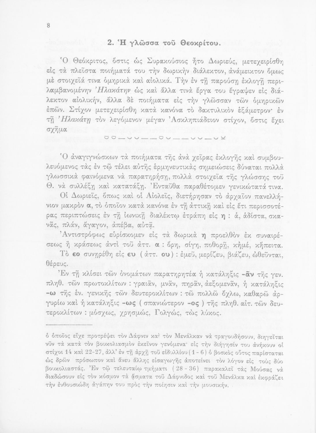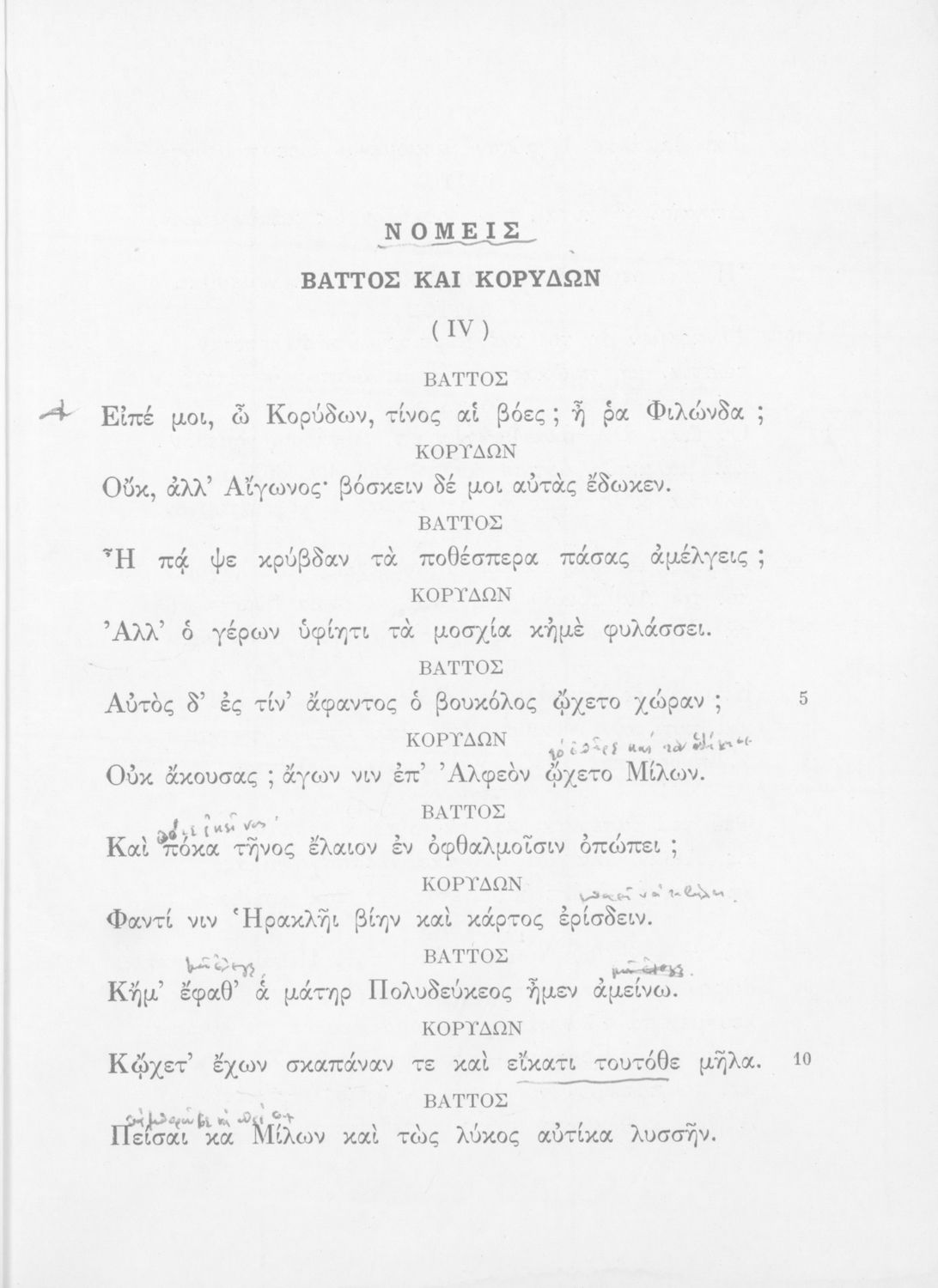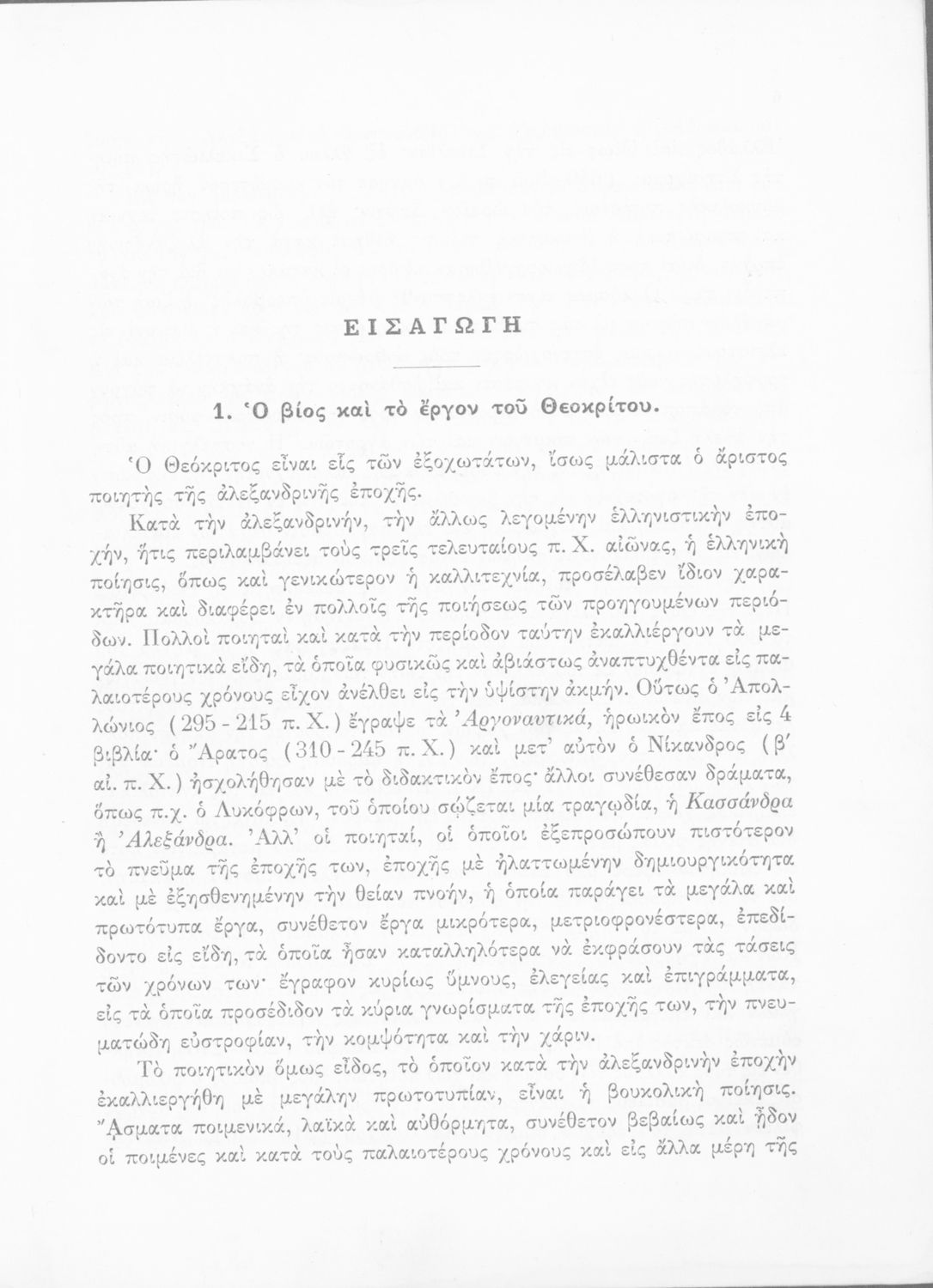 Σχολικό εγχειρίδιο Αρχαίων Ελληνικών Δ΄ Γυμνασίου που περιλαμβάνει τα Ειδύλλλια του Θεοκρίτου, και πραγματολογικές και λεξιλογικές παρατηρήσεις. Ο συγγραφέας ήταν διδάκτωρ Φιλολογίας.
