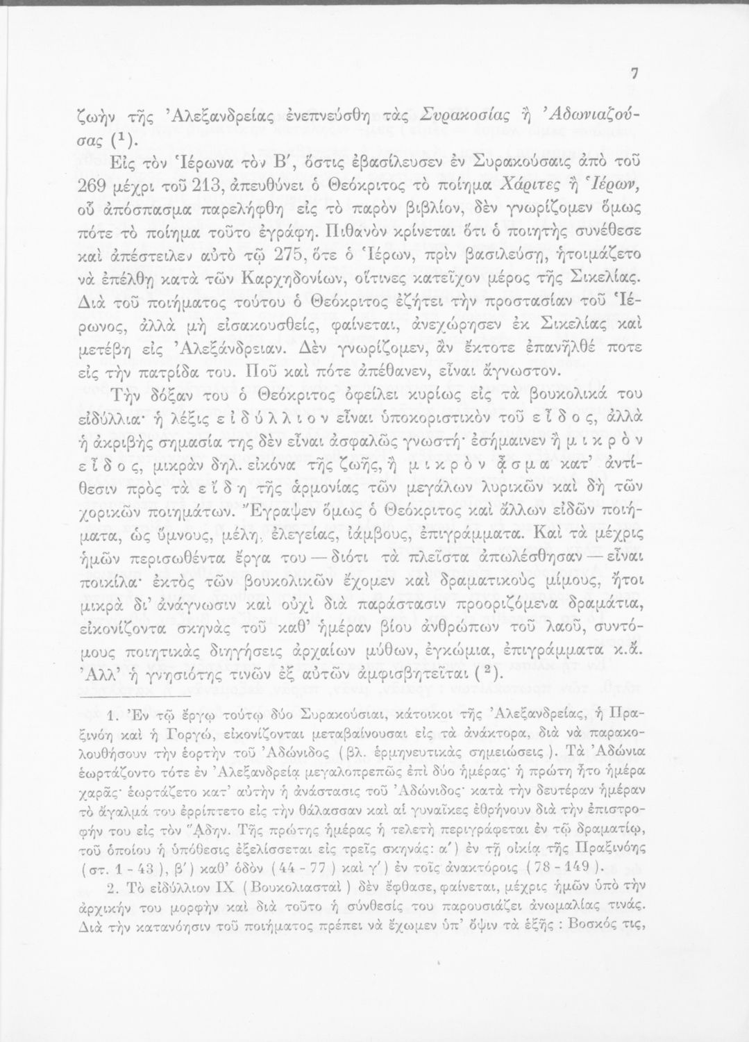 Θεόκριτος, Χρ. Β. Λώλος (σχόλια)