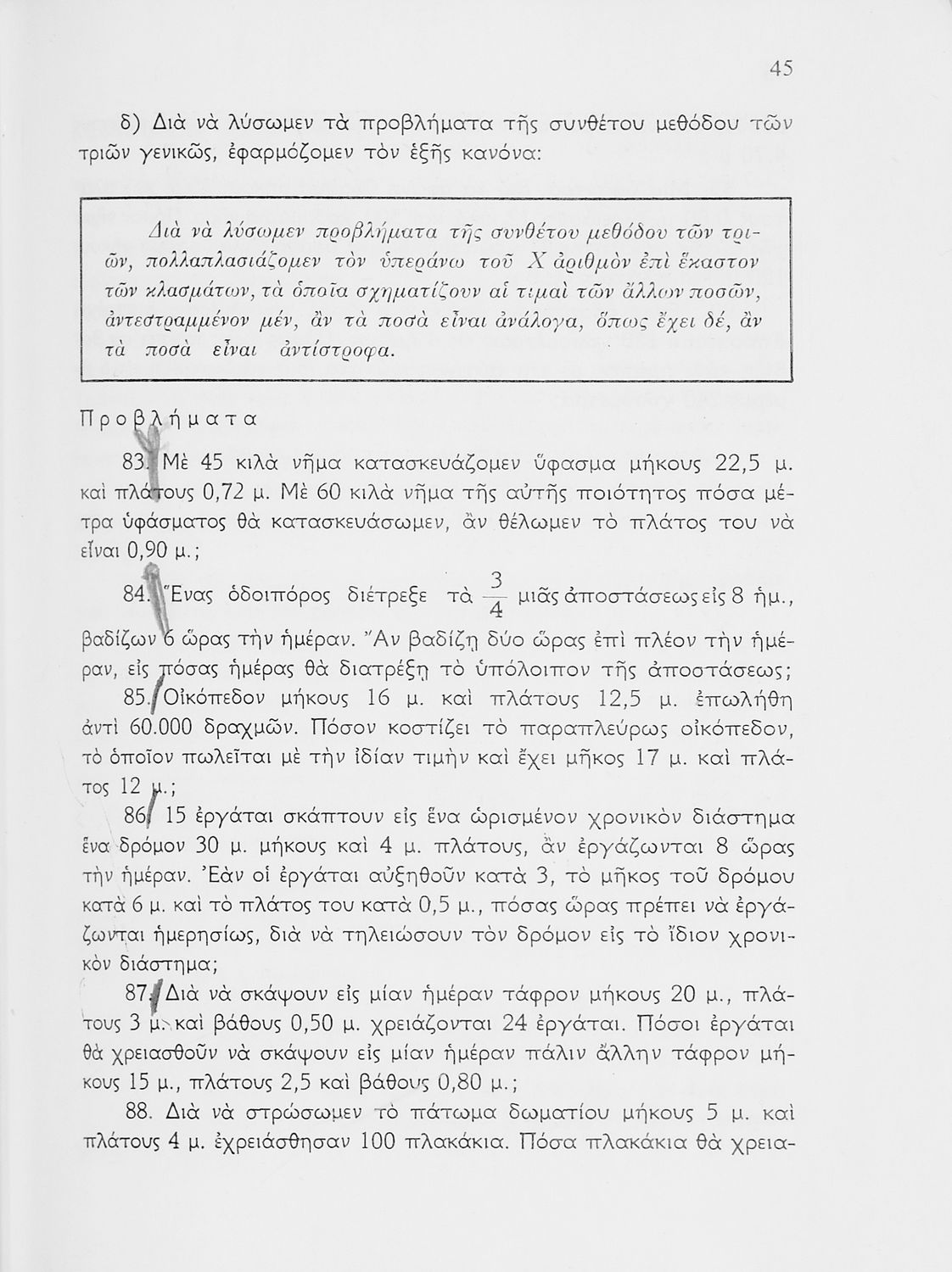 Σχολικό εγχειρίδιο Μαθηματικών ΣΤ΄ Δημοτικού που περιλαμβάνει ασκήσεις λογιστικού χαρακτήρα και ασκήσεις μέτρησης γεωμετρικών σχημάτων. Φέρει το σύμβολο της δικτατορίας.