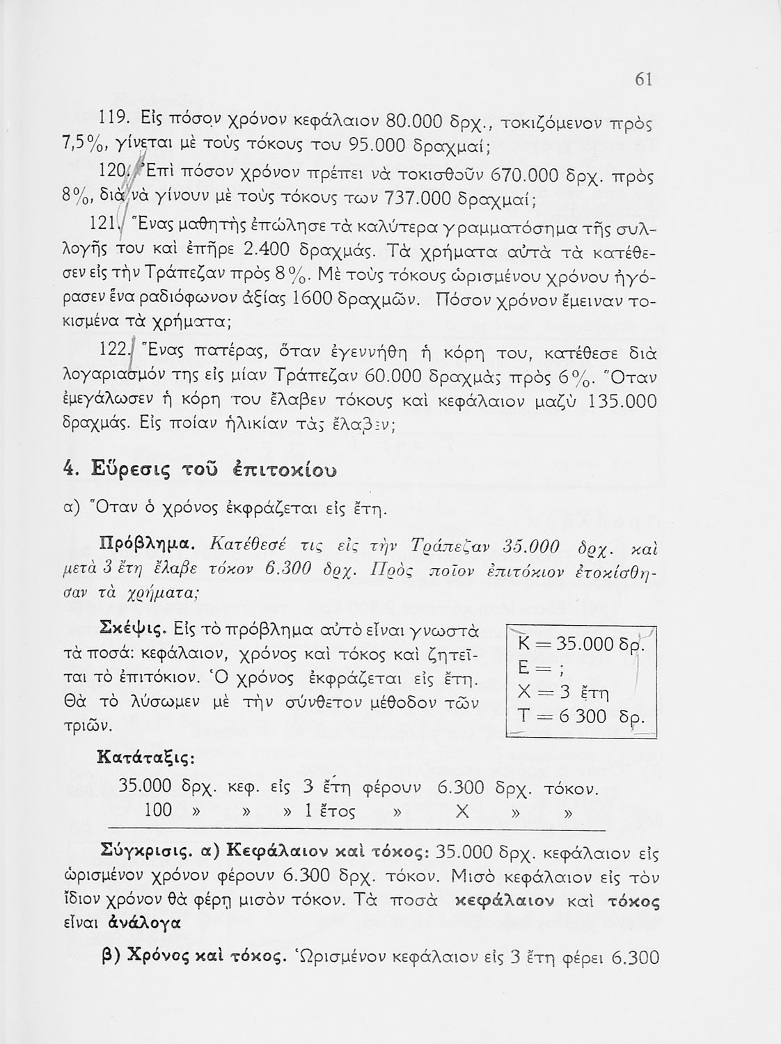 Βαθμίδα εκπαίδευσης: Δευτεροβάθμια Τάξη: ΣΤ' Δημοτικού Μάθημα: Μαθηματικά Γλώσσα: Απλή καθαρεύουσα Παρουσίαση περιεχομένου: Σχολικό εγχειρίδιο Μαθηματικών ΣΤ΄ Δημοτικού που περιλαμβάνει ασκήσεις λογιστικού χαρακτήρα και ασκήσεις μέτρησης γεωμετρικών σχημάτων. Φέρει το σύμβολο της δικτατορίας. |