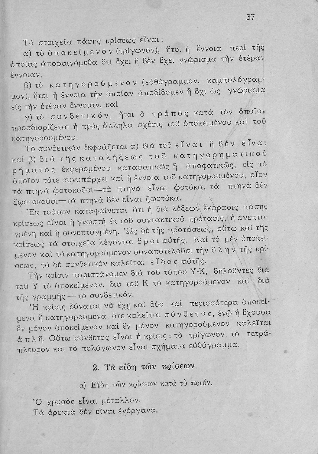 Τίτλος: Στοιχειώδης λογική μετά στοιχείων γνωσιολογίας προς χρήσιν των μαθητών της ΣΤ΄ τάξεως των Εξαταξίων Γυμνασίων παλαιού τύπου